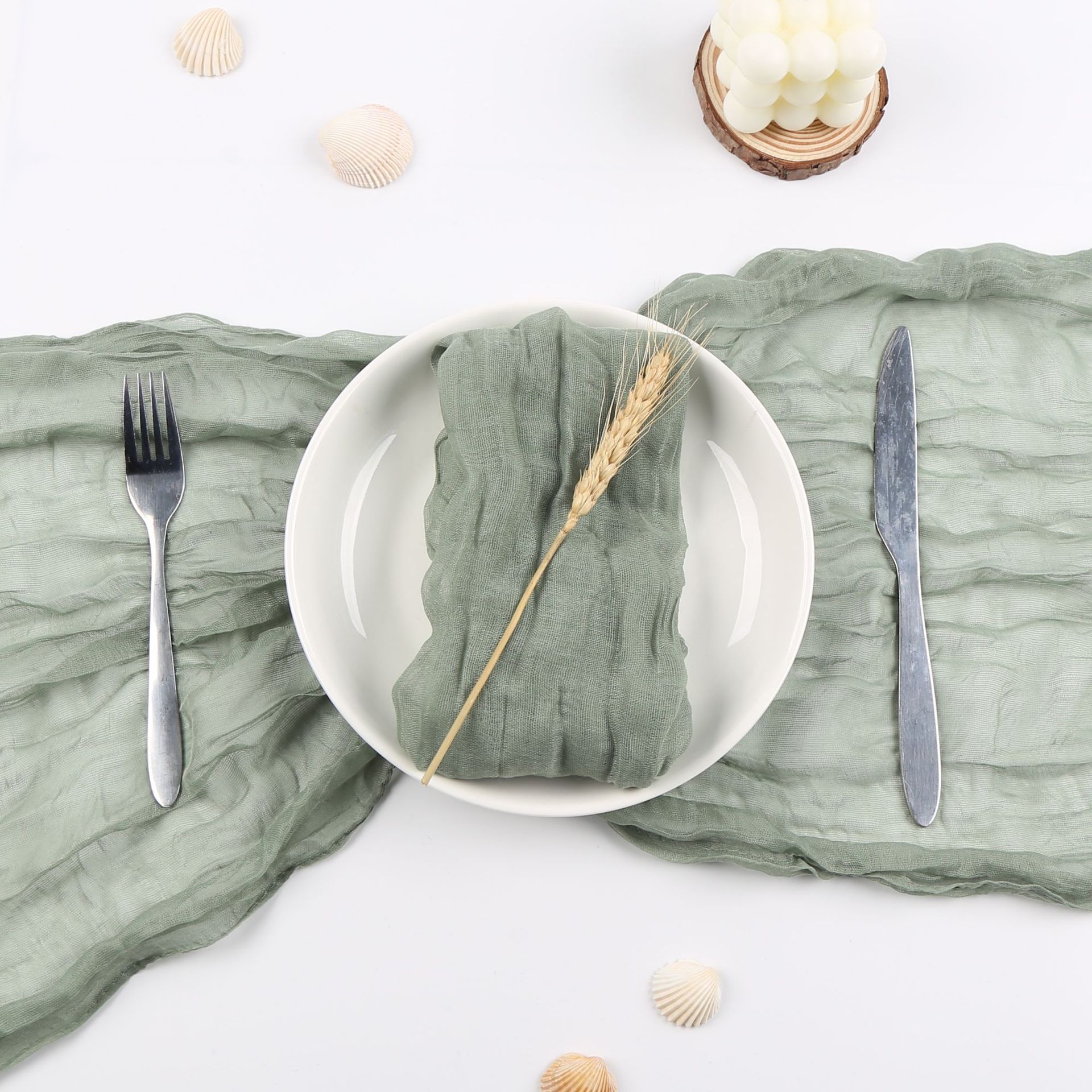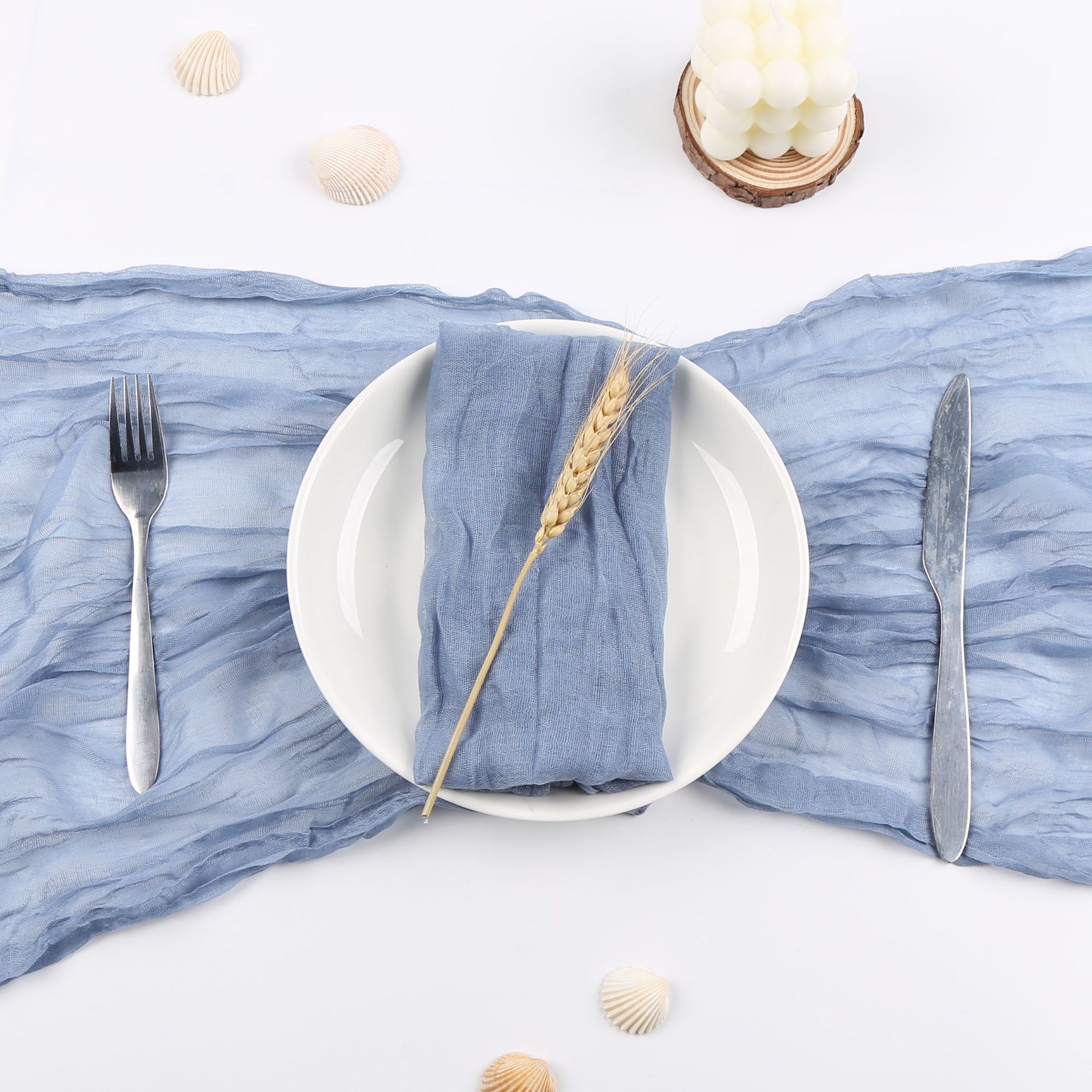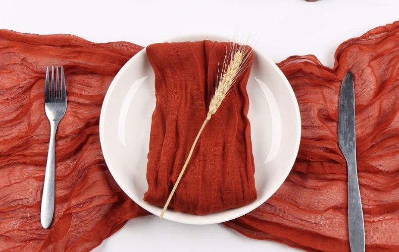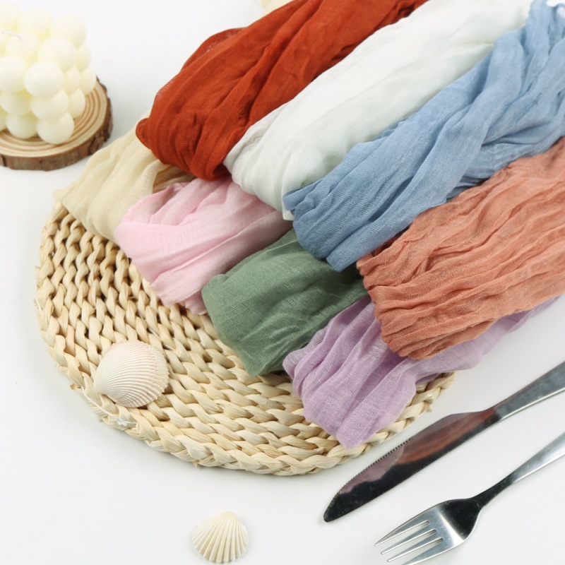 外贸麻花餐巾餐垫户外婚礼亚马逊热卖巴厘纱糖果色压皱百搭褶皱
