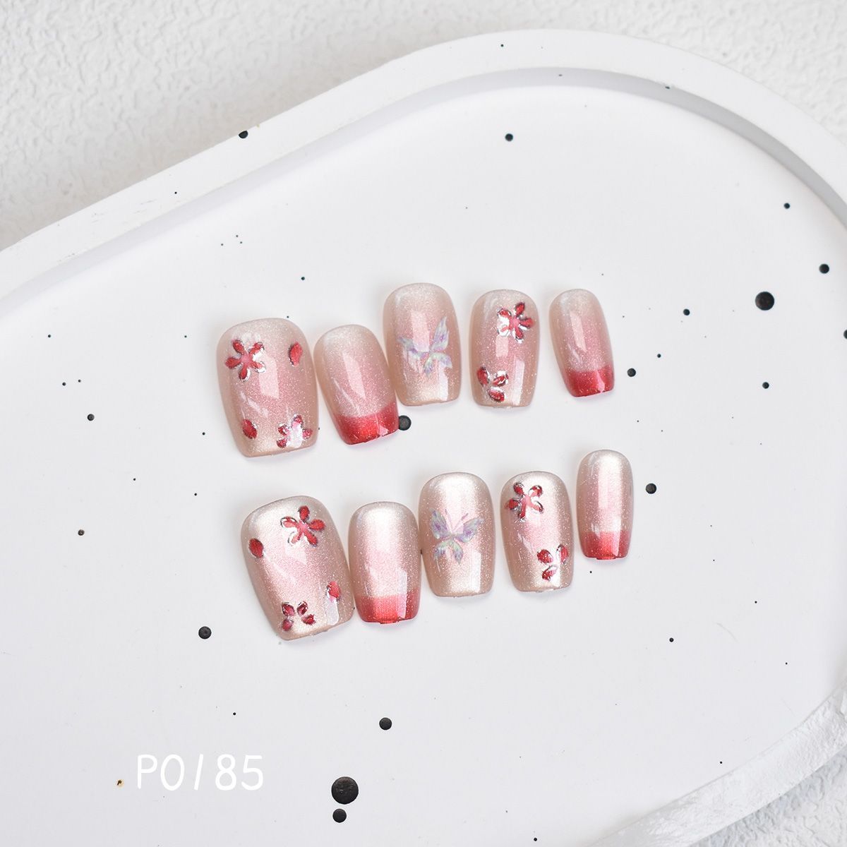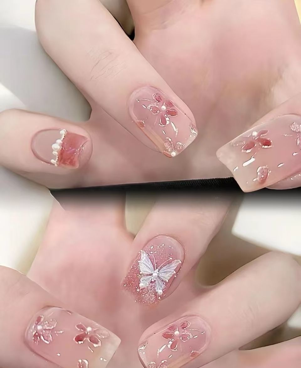 【富家千金】鎏金小红花草莓晶氛围感蜜桃小姐姐美甲穿戴甲