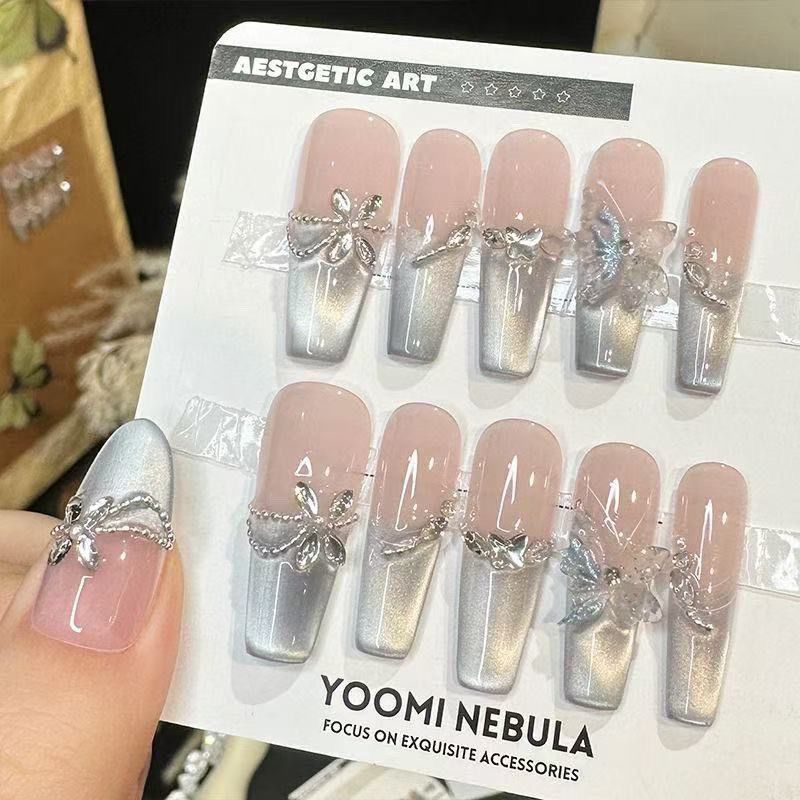 纯手工蝴蝶猫眼光疗可拆卸水波纹穿戴贴片纯欲风法式显白高级美甲