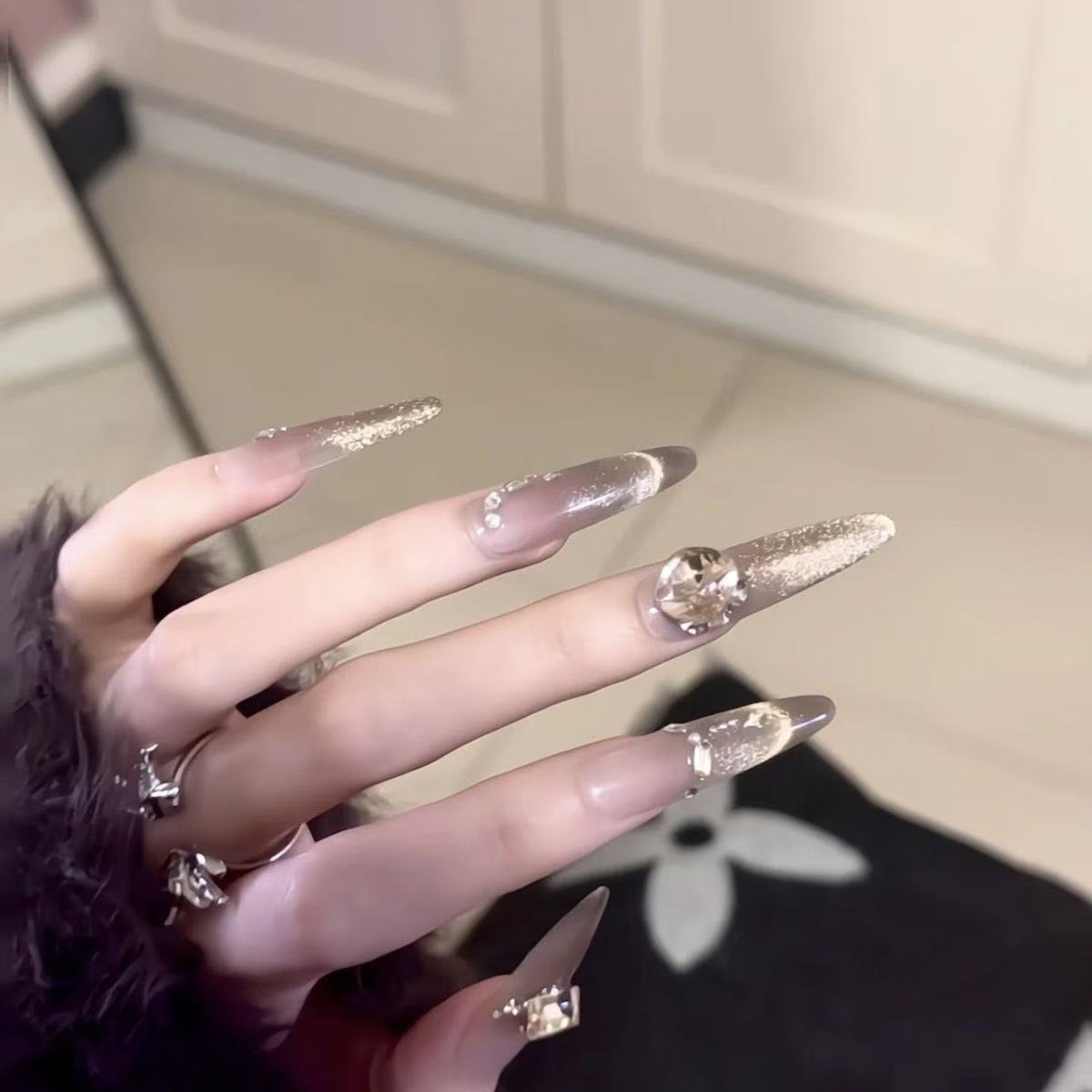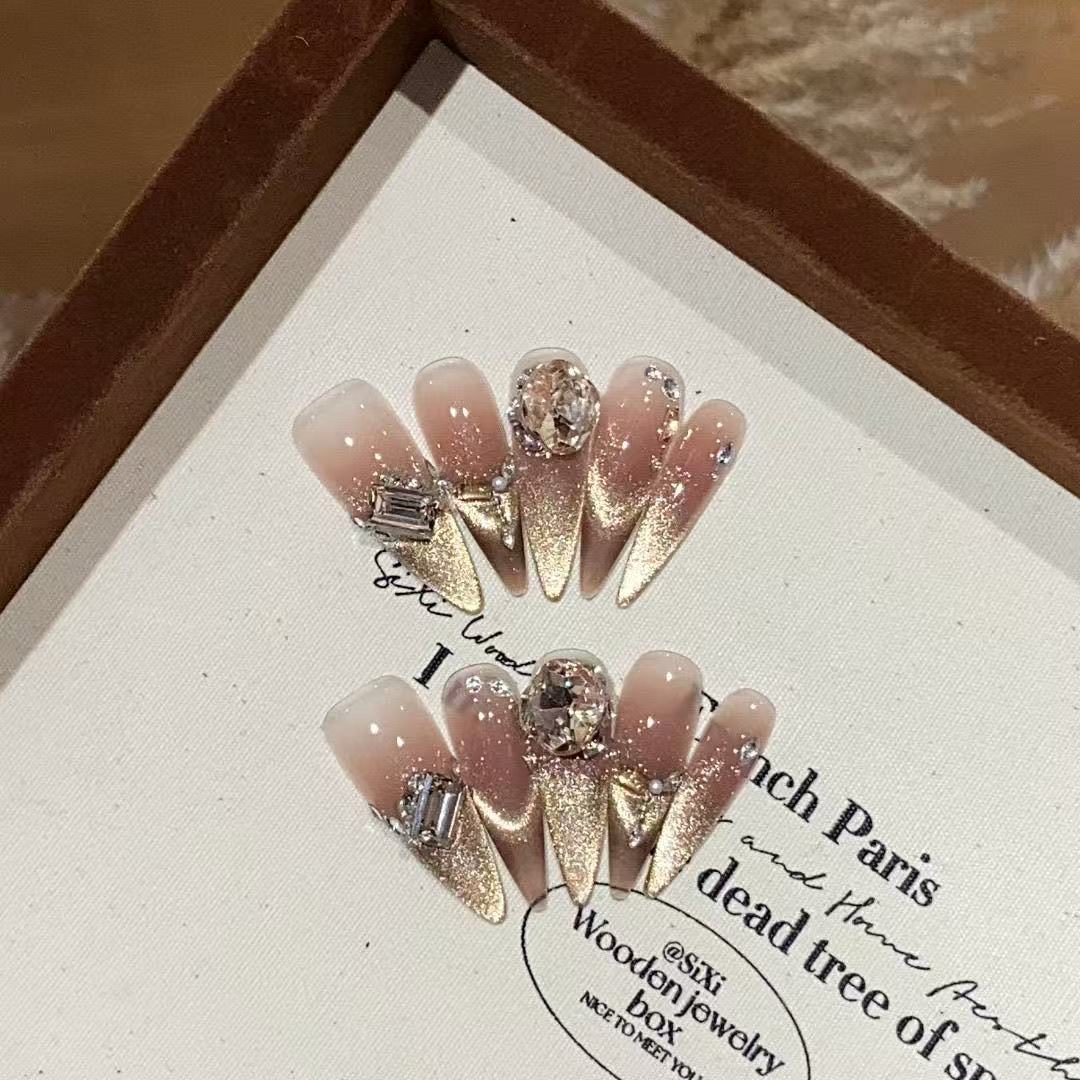 【黄昏】纯手工穿戴甲法式猫眼显白气质新款气质法式春夏黄昏