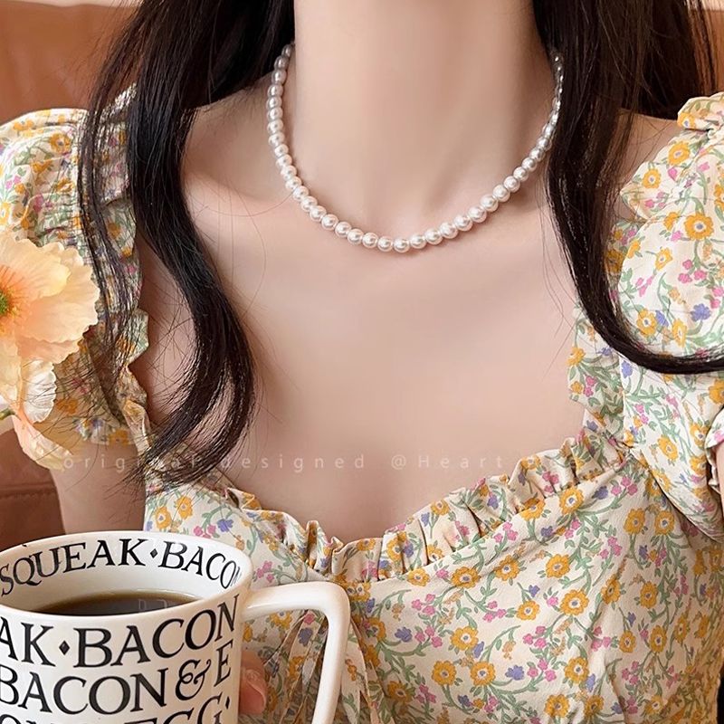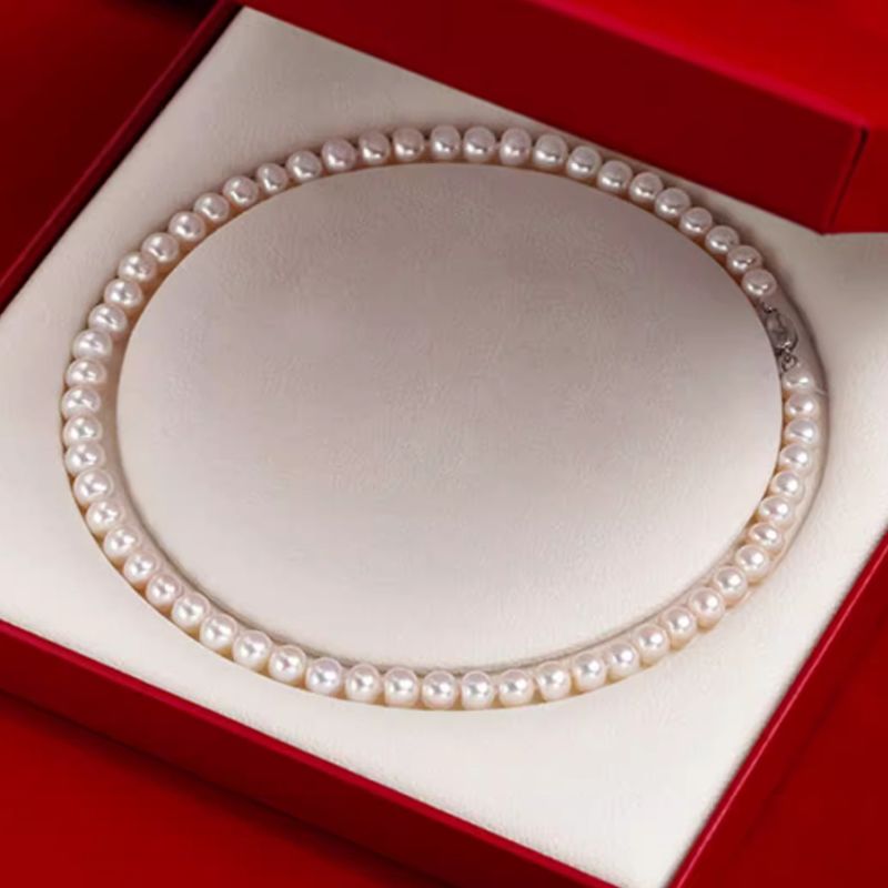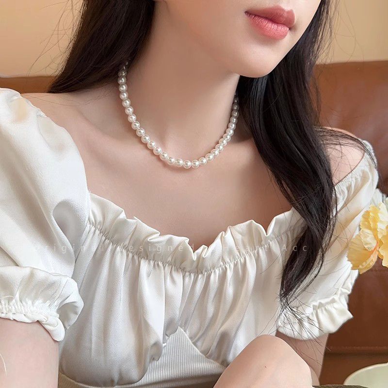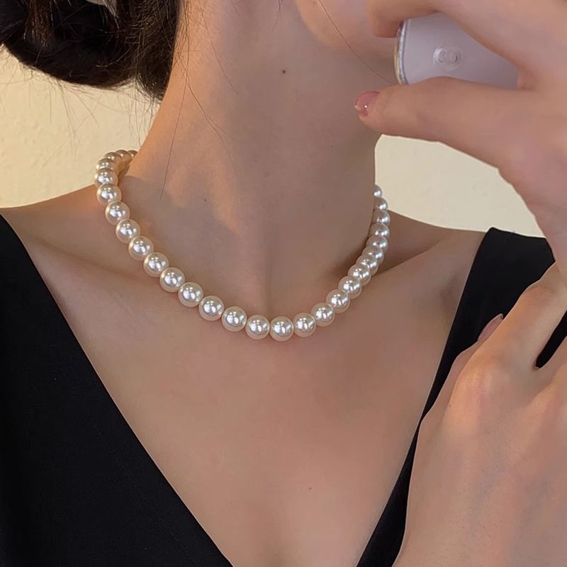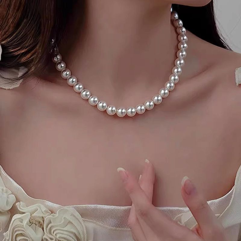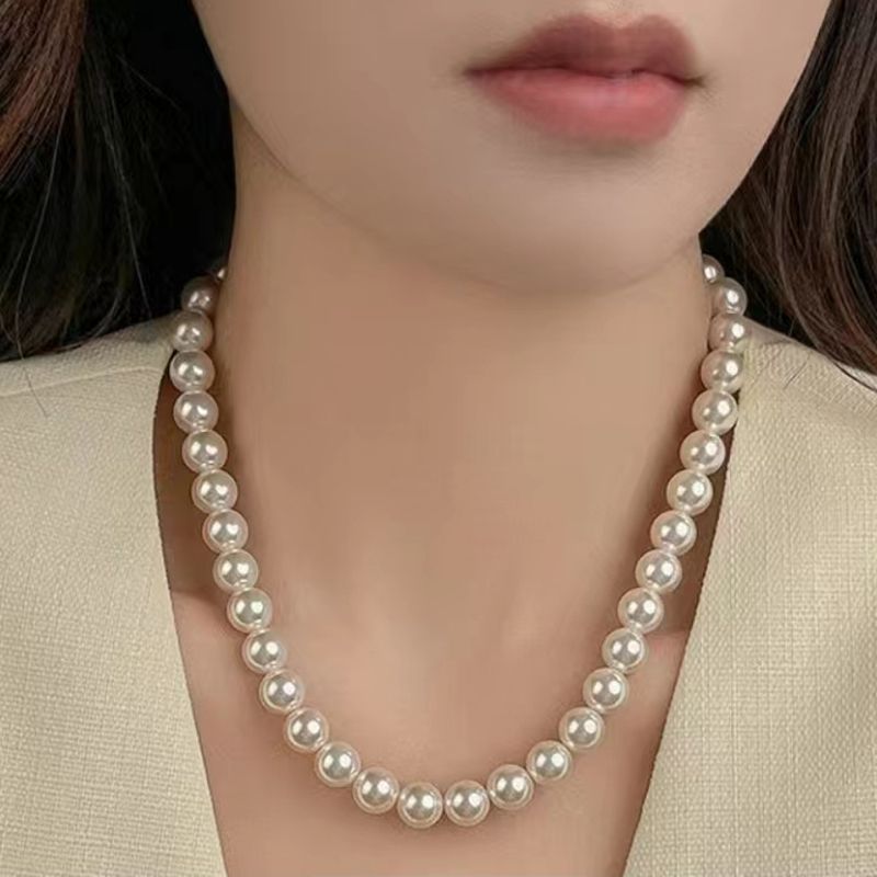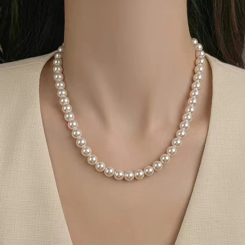 天然母贝珍珠项链2025新款时尚气质锁骨链正圆百搭毛衣链送妈妈