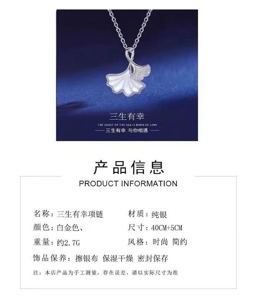 三生有杏项链纯银925银杏叶轻奢小众夏天高级感送女友闺蜜礼物
