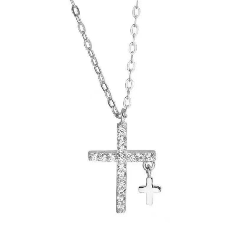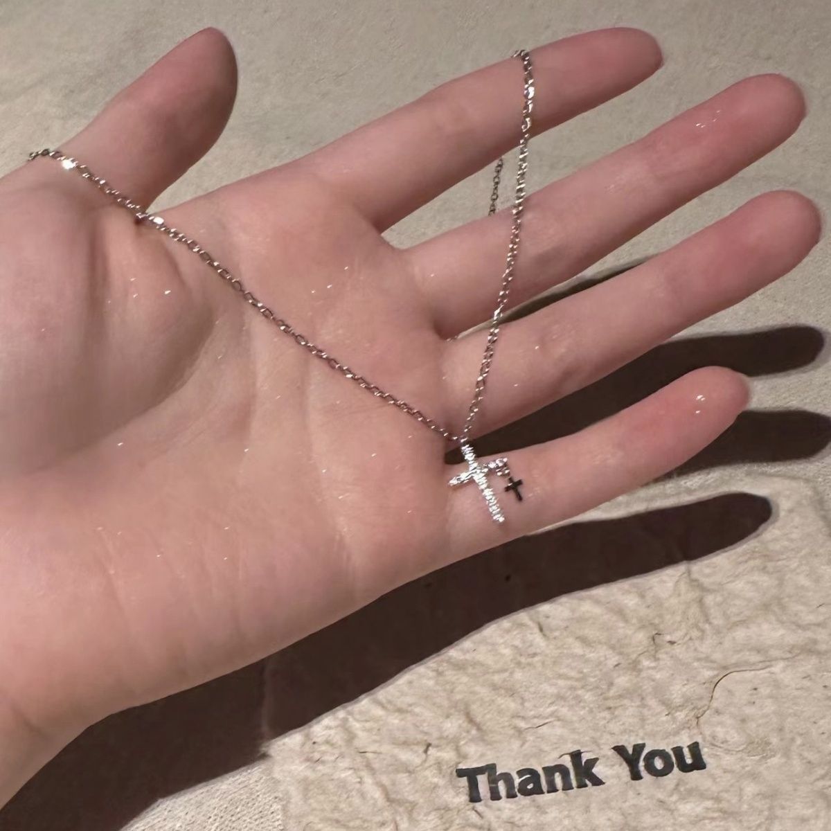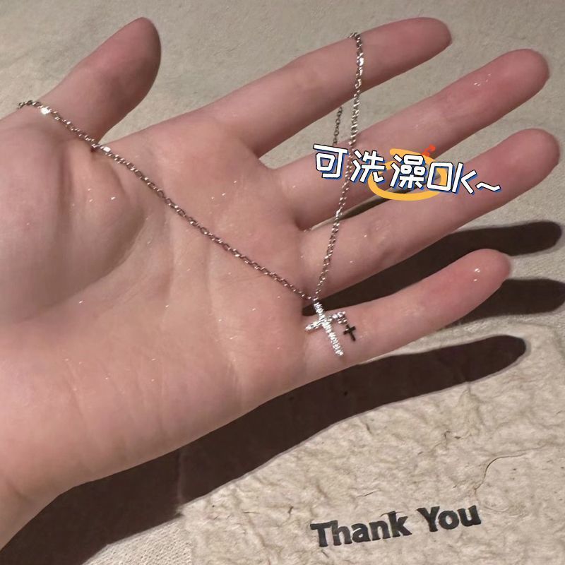 「钛钢不掉色」皓石十字架项链女小众ins轻奢感冬天毛衣链锁骨链