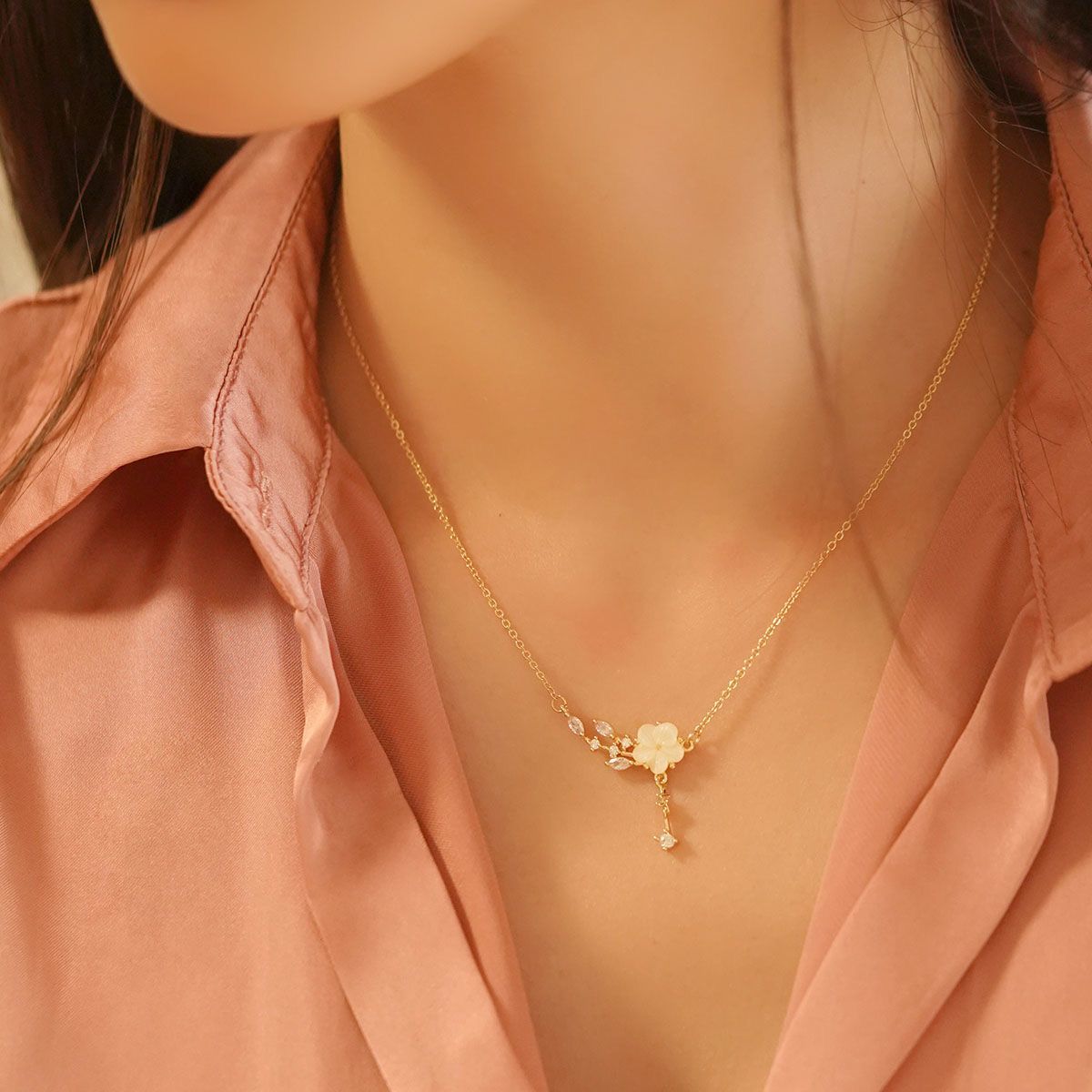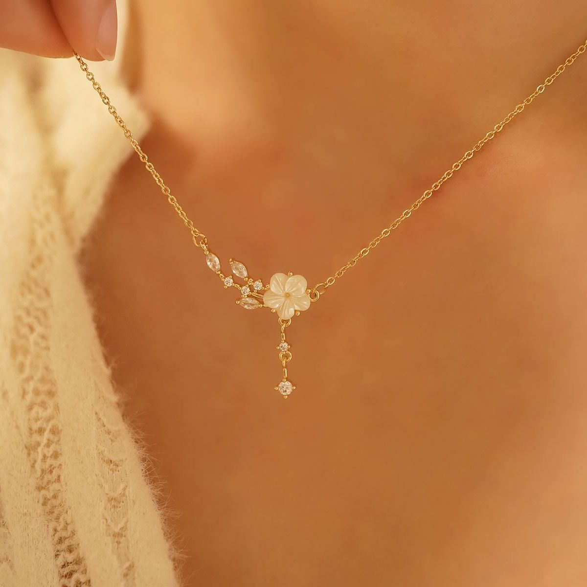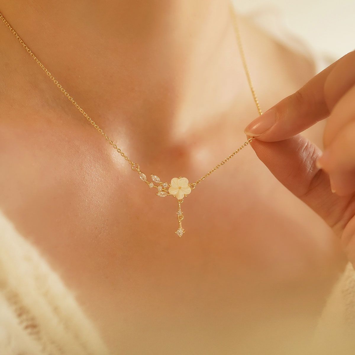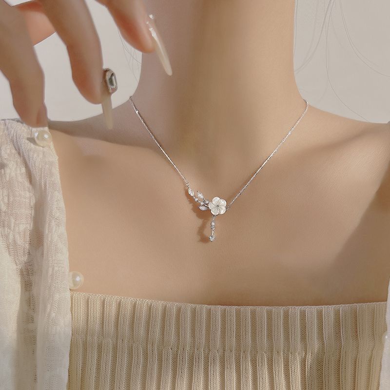 山茶花项链女925银女轻奢气质名媛精致复古高级送妈妈礼物锁骨链