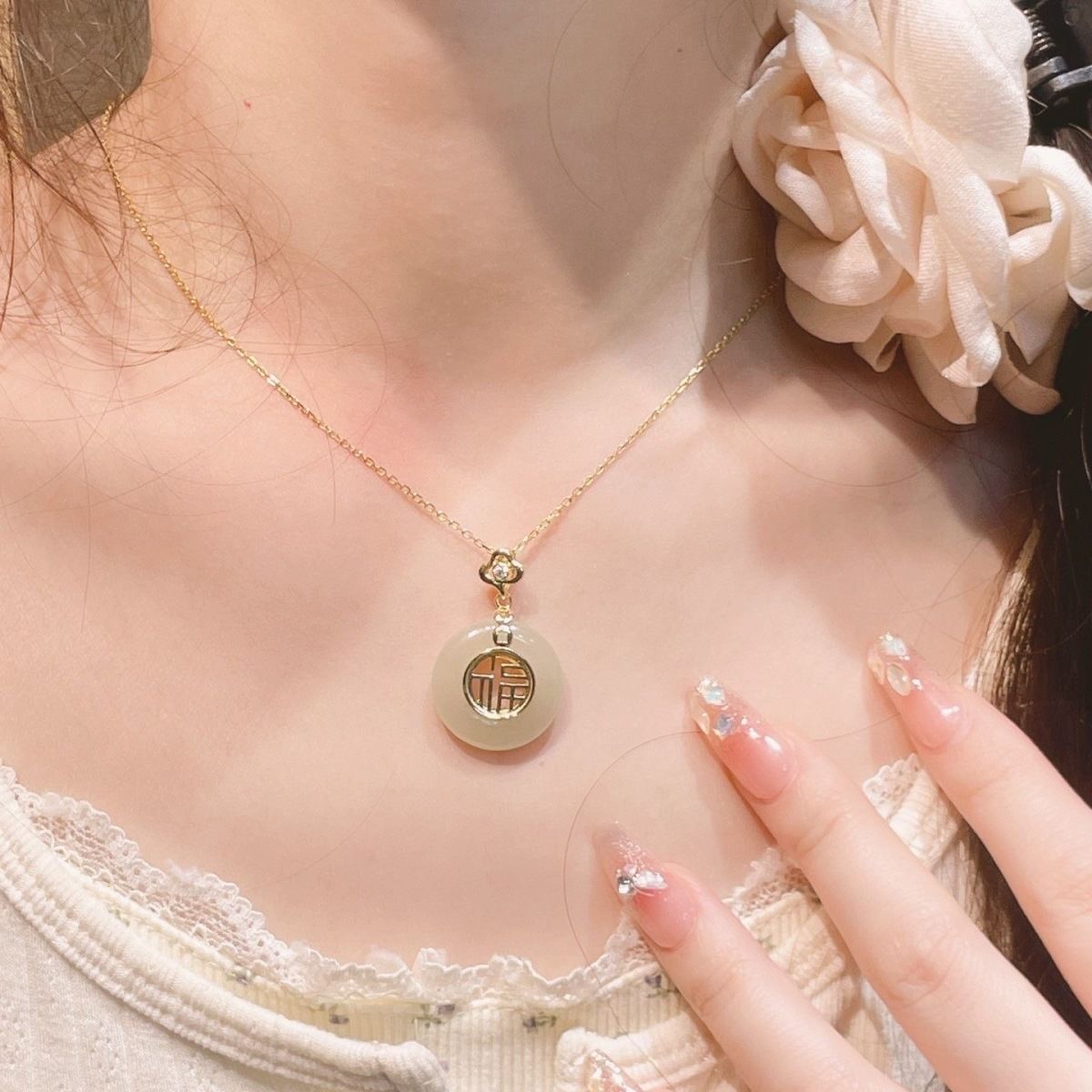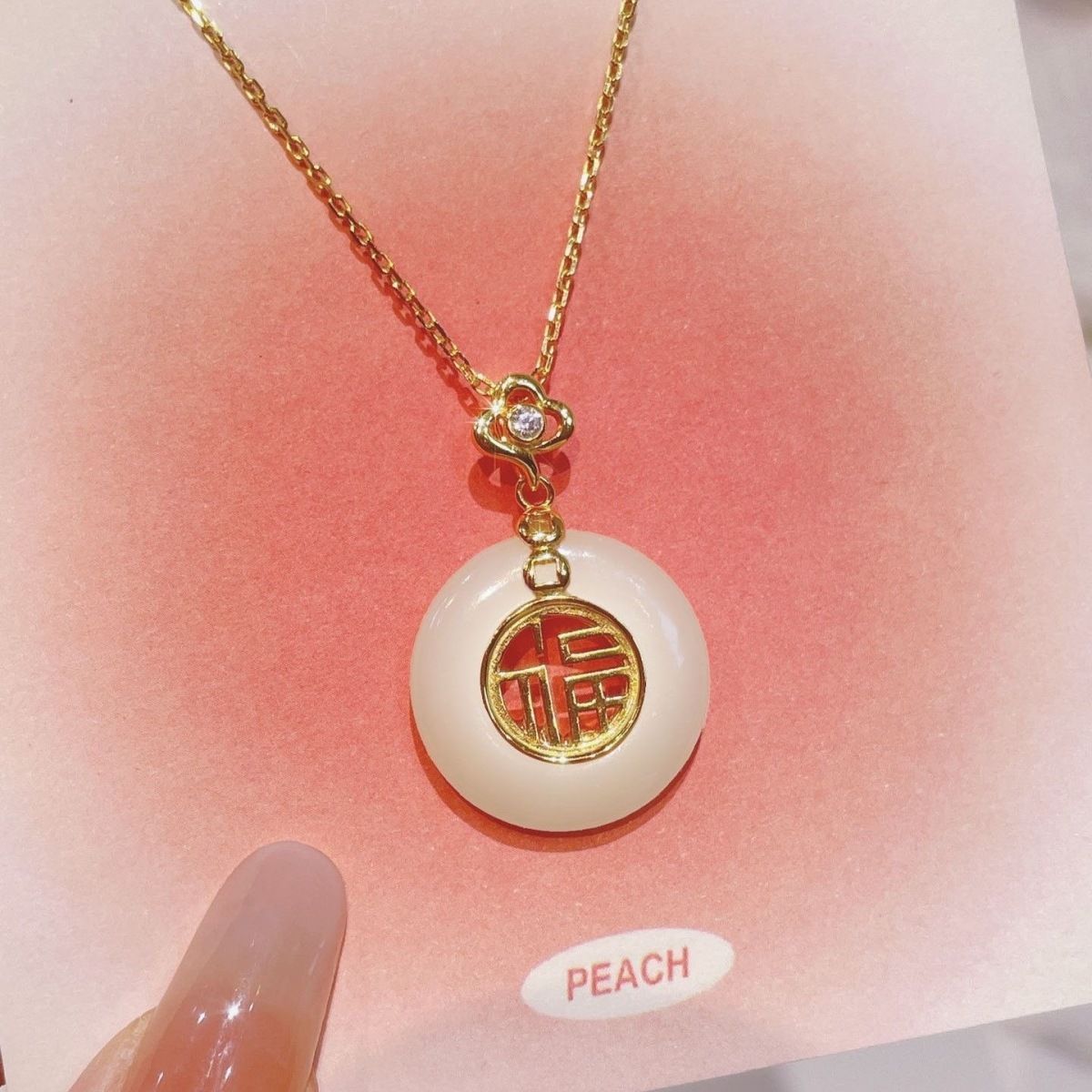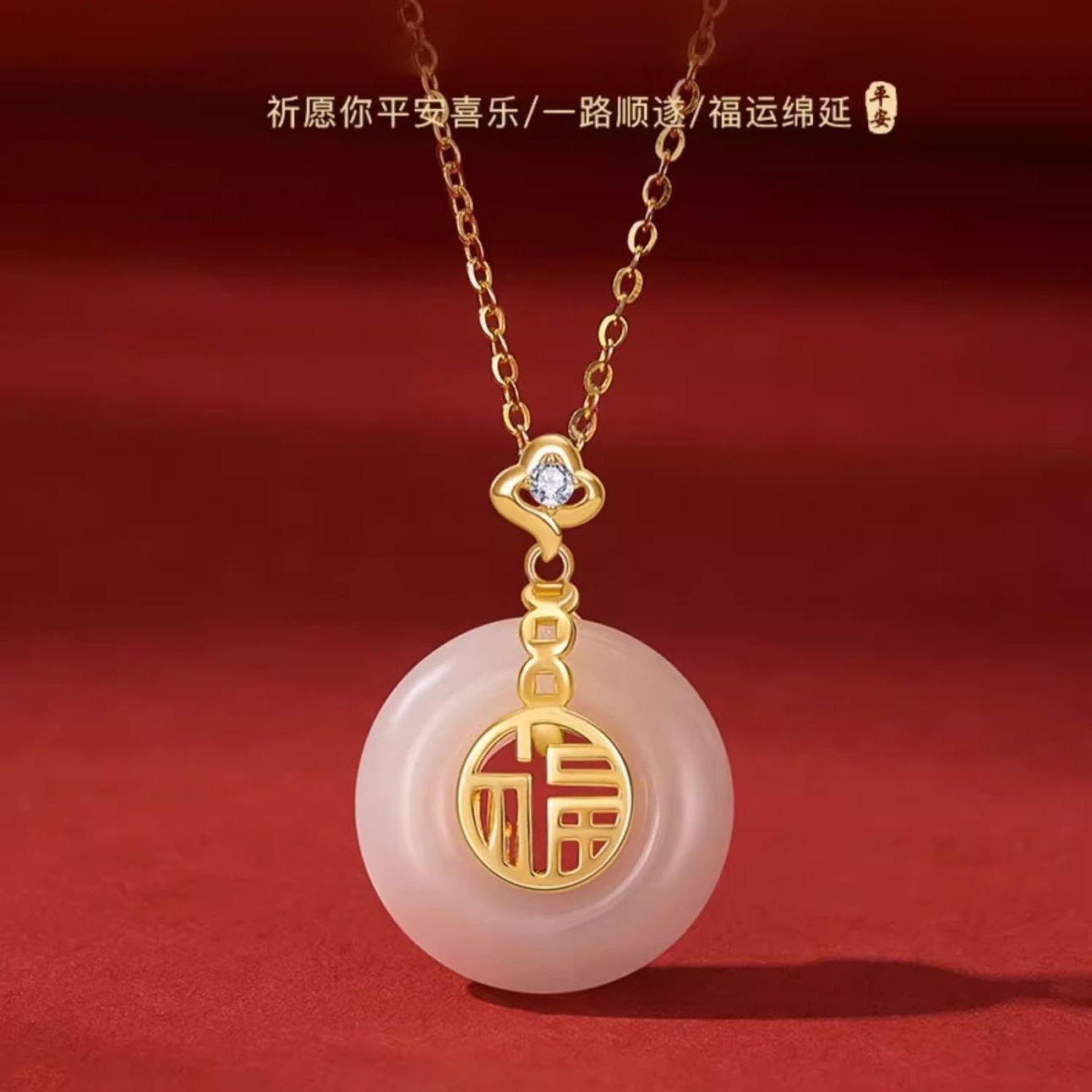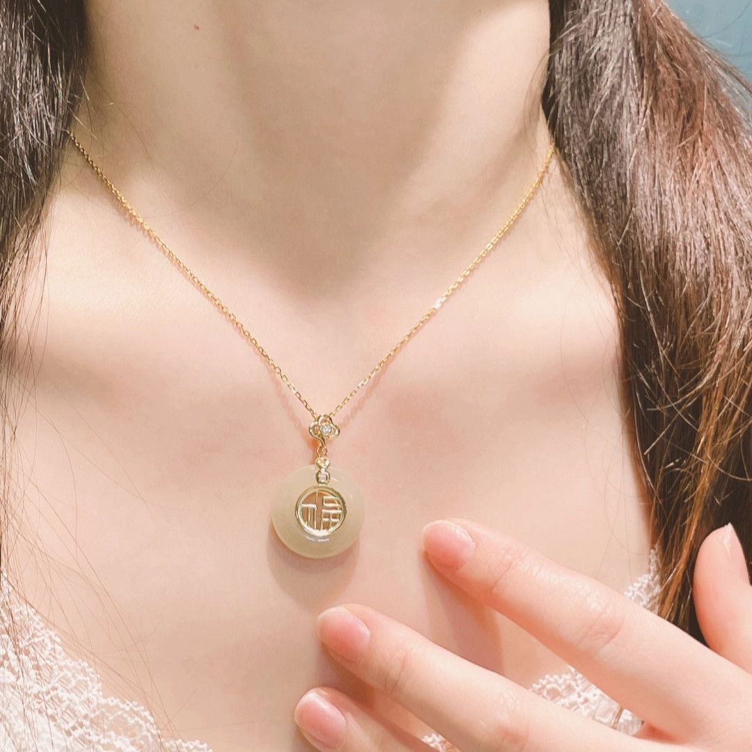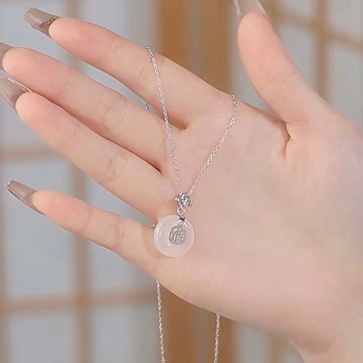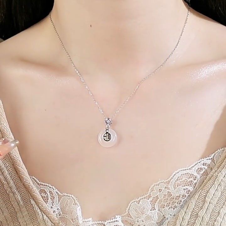 S925纯银福气平安扣项链女轻奢小众新中式玉髓锁骨链高级生日礼物