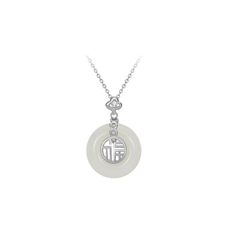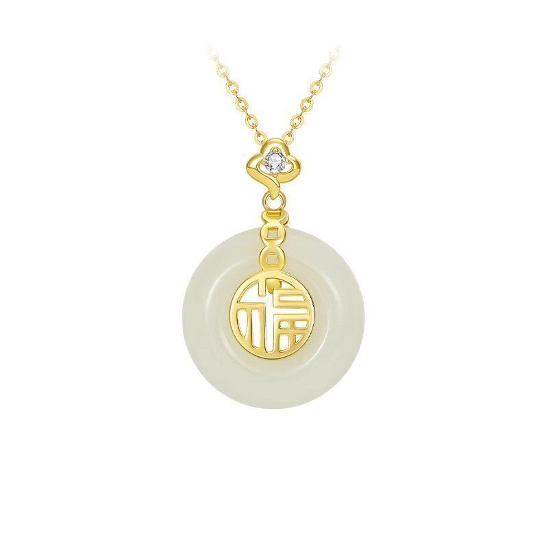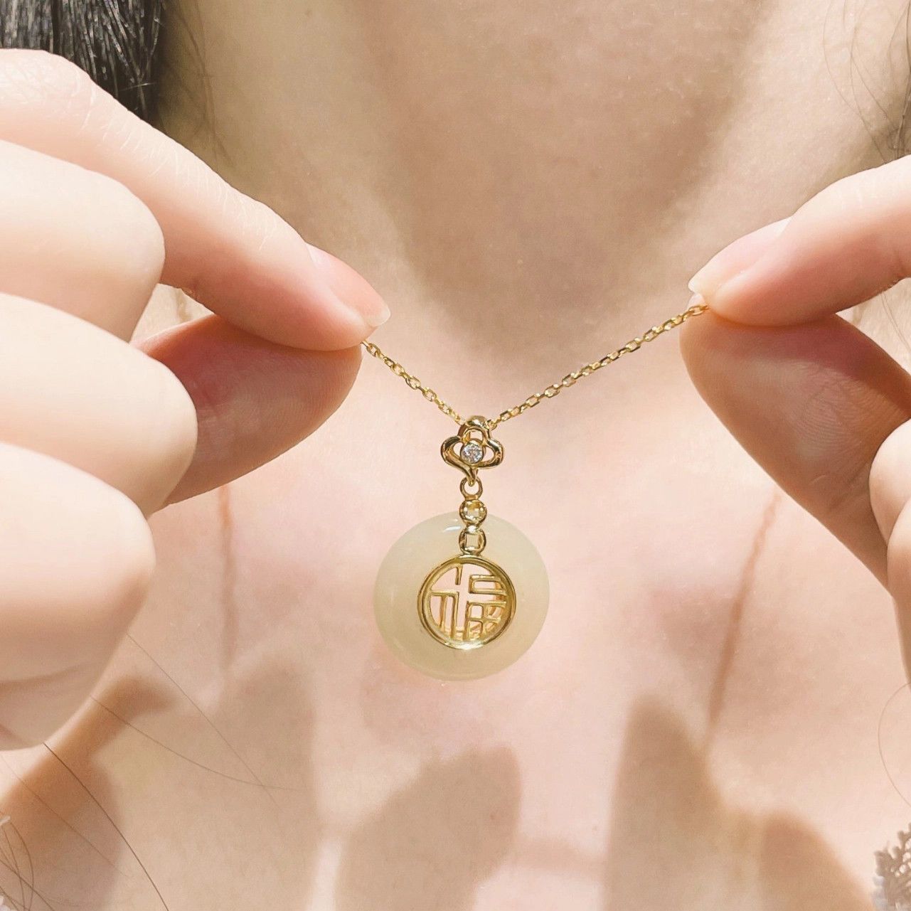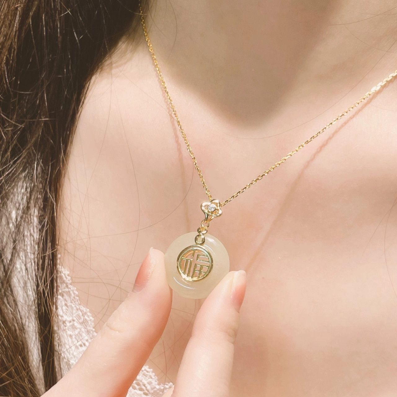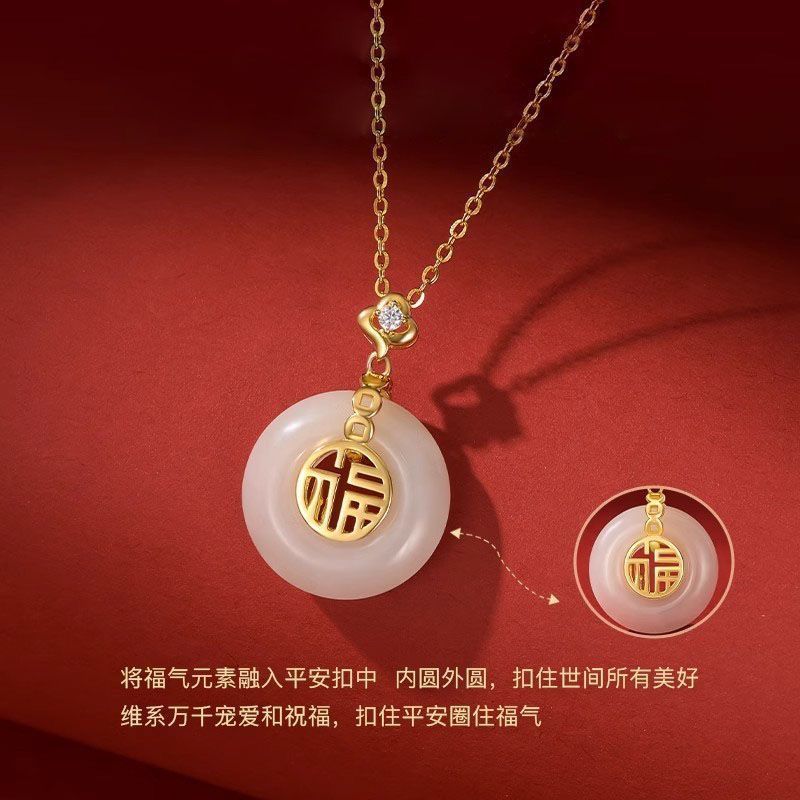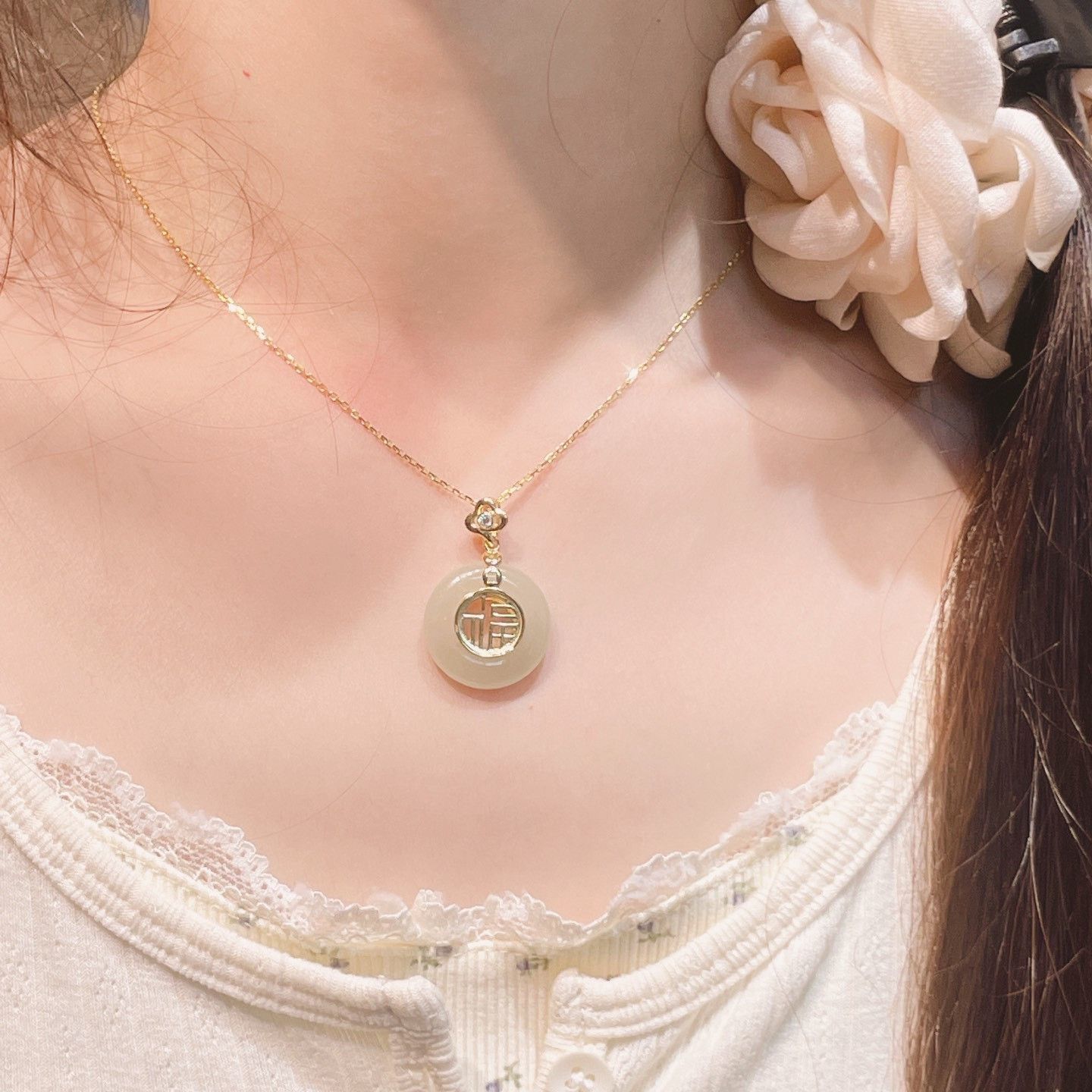 S925纯银福气平安扣项链女轻奢小众新中式玉髓锁骨链高级生日礼物