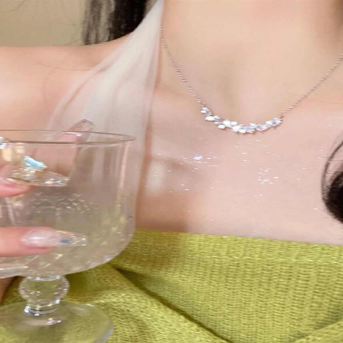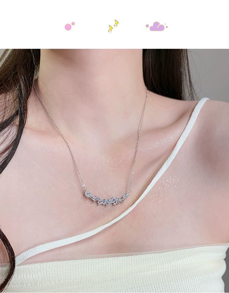 925银微笑项链女【紫藤花系列】ins小众高级轻奢镶钻锁骨链送女友