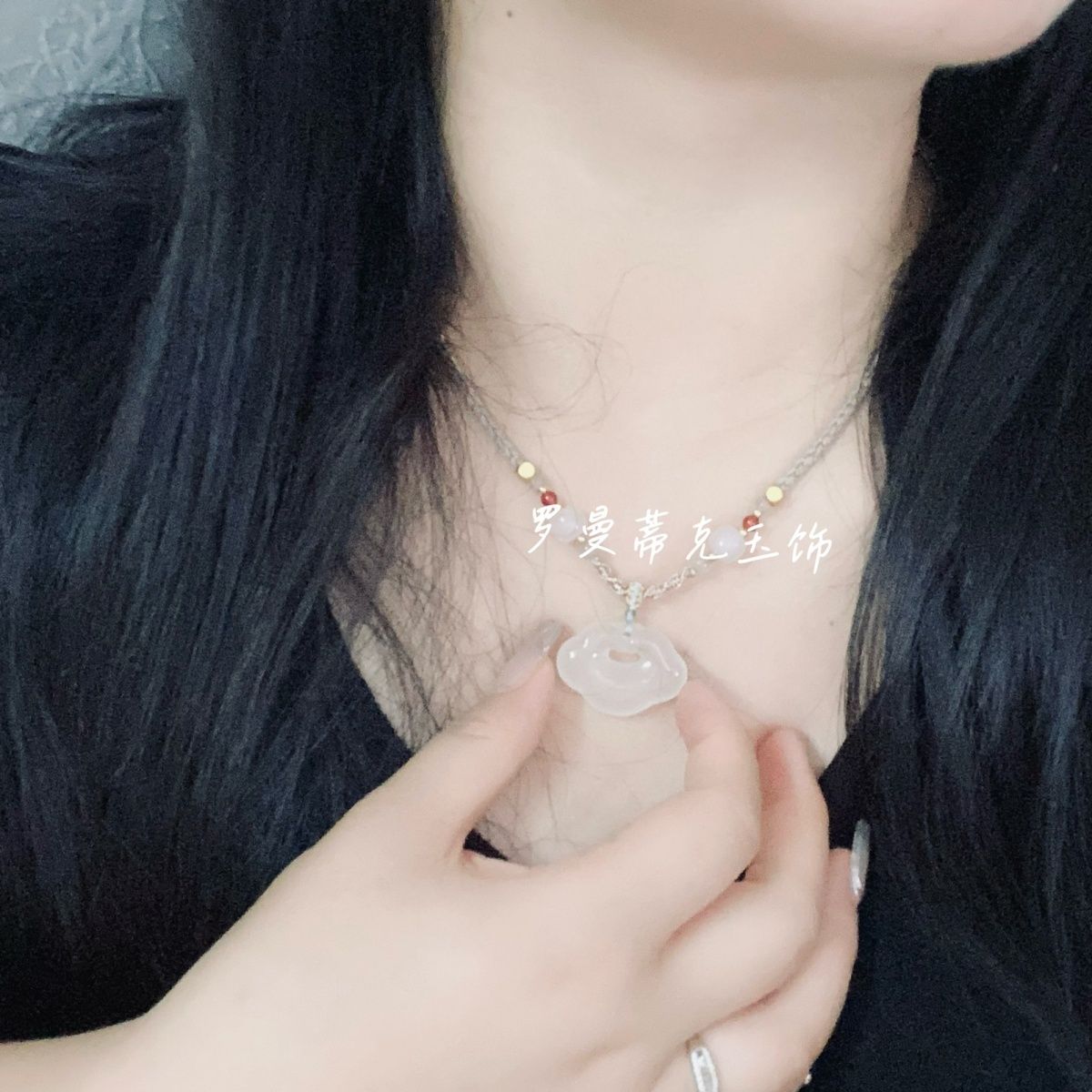 天然冰种玛瑙玉髓祥云如意平安玉石项链锁骨吊坠中式礼物高级爆款