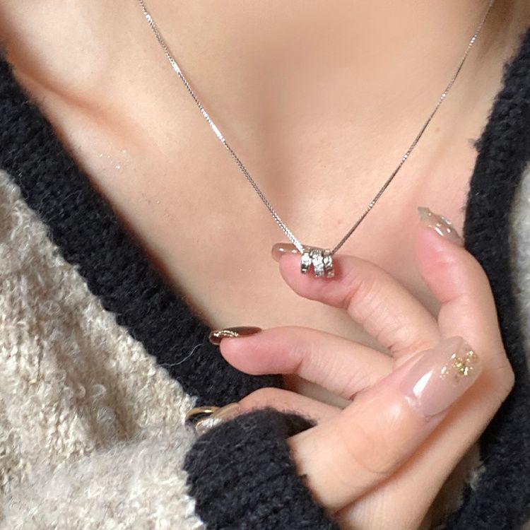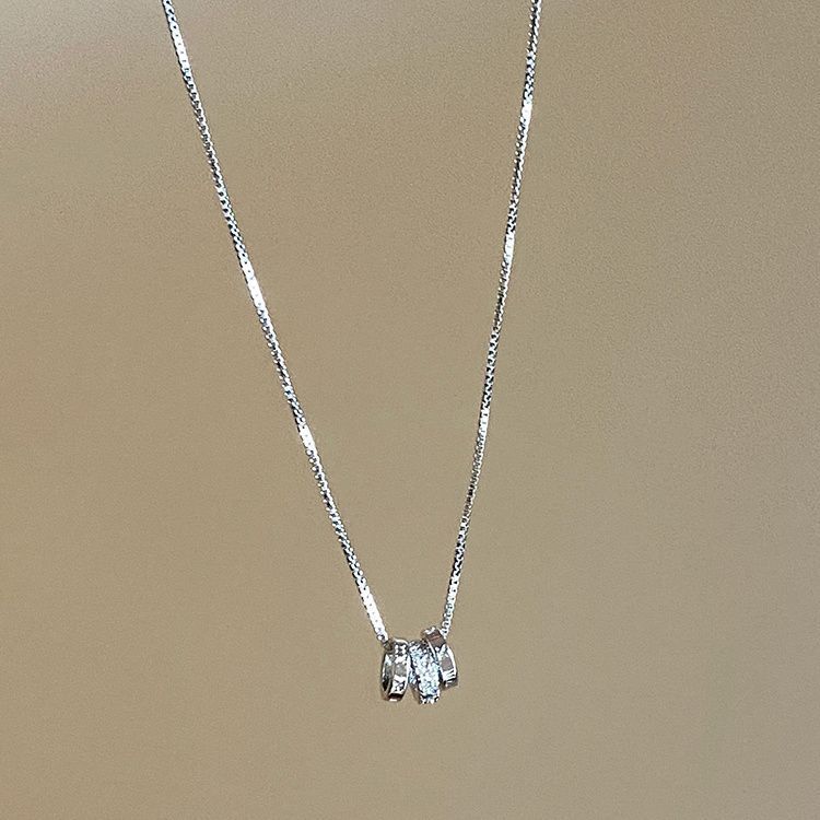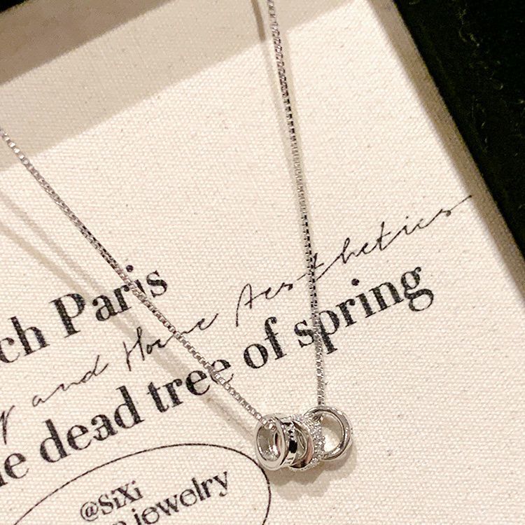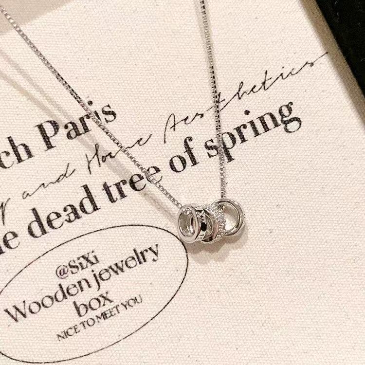 S925纯银小蛮腰三环圆圈项链女轻奢小众精致百搭罗马数字锁骨链