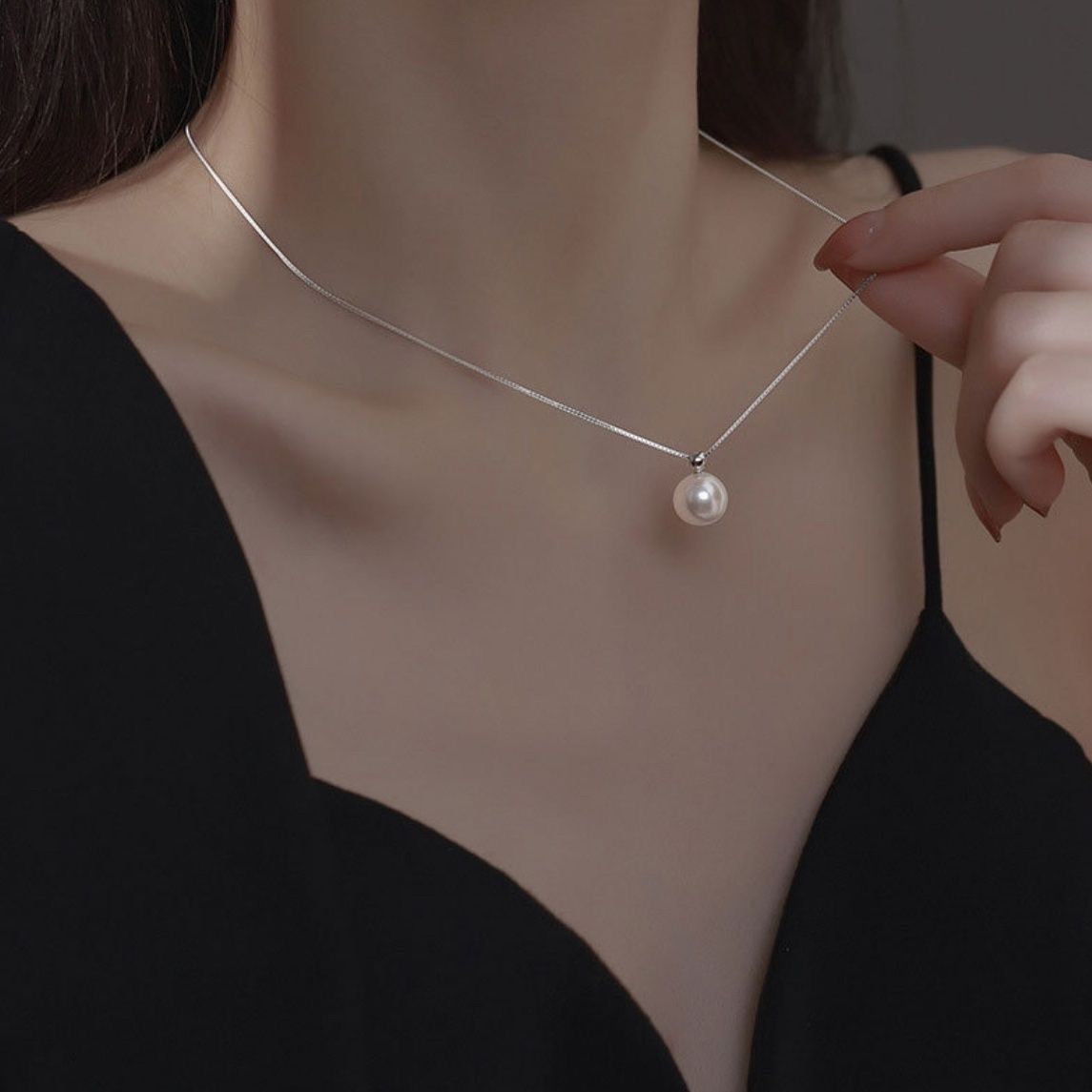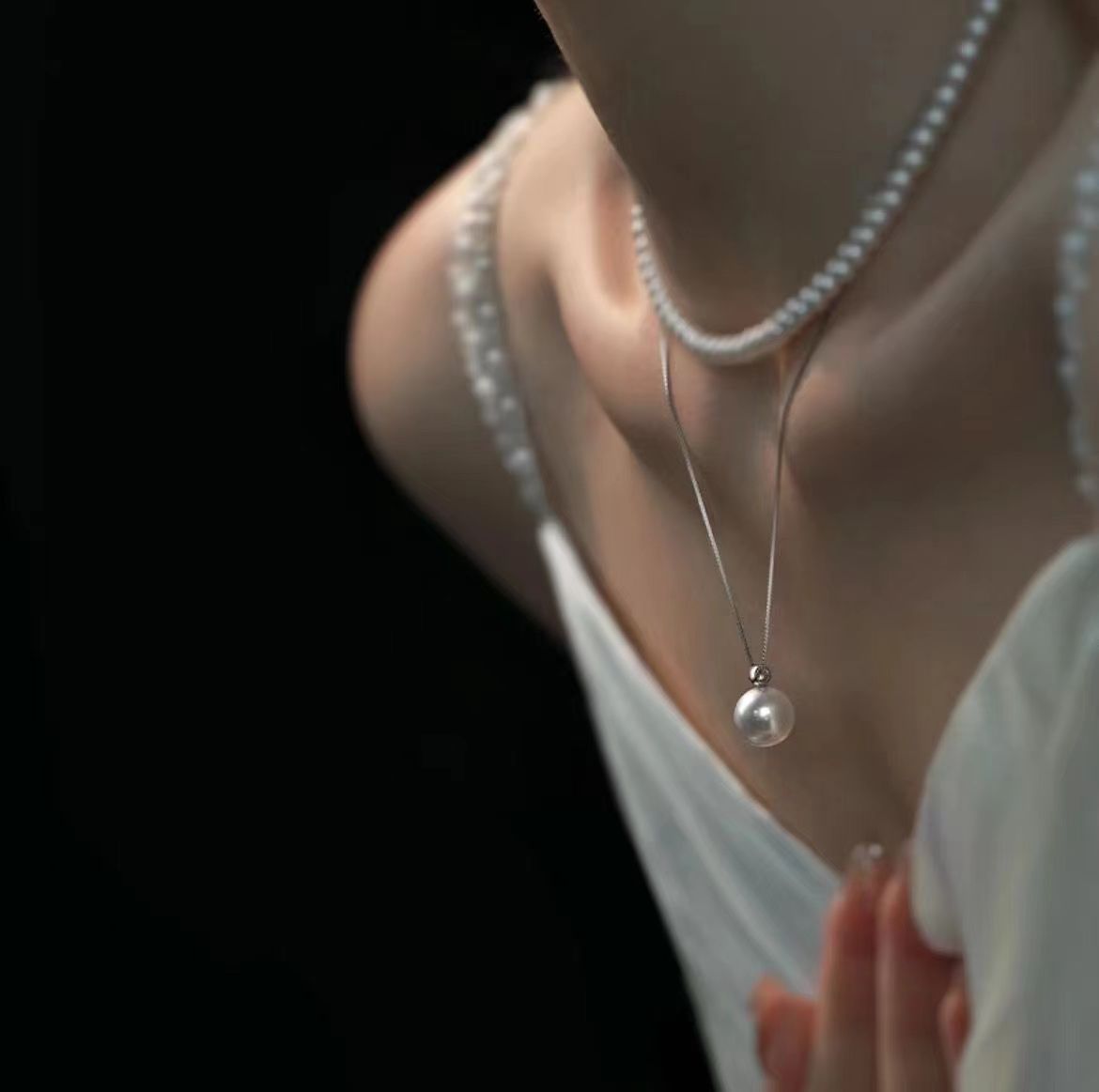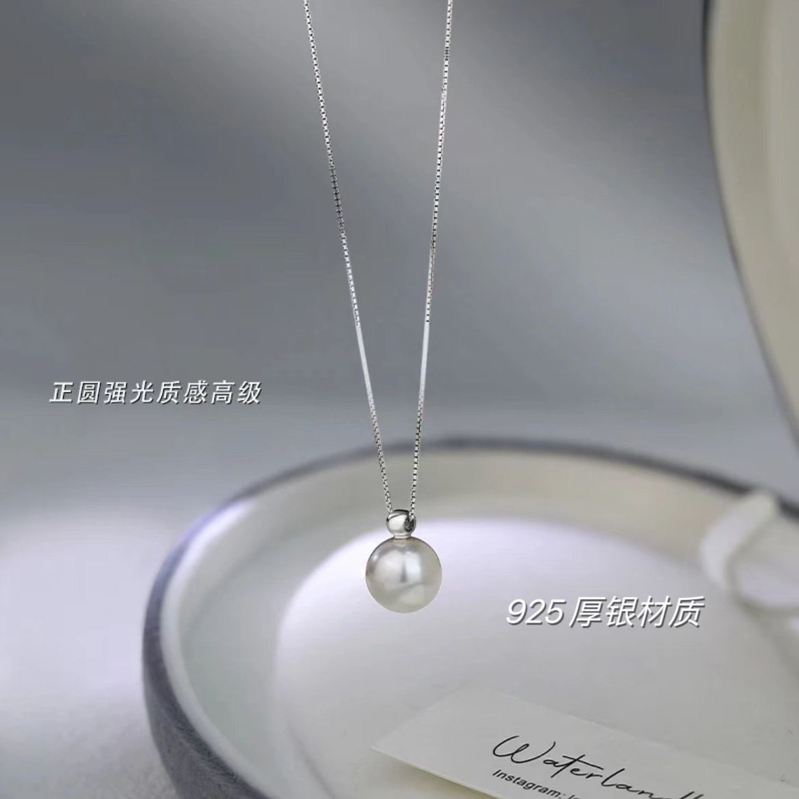S925镀银小灯泡珍珠项链女简约小众ins气质吊坠锁骨链送女友礼物