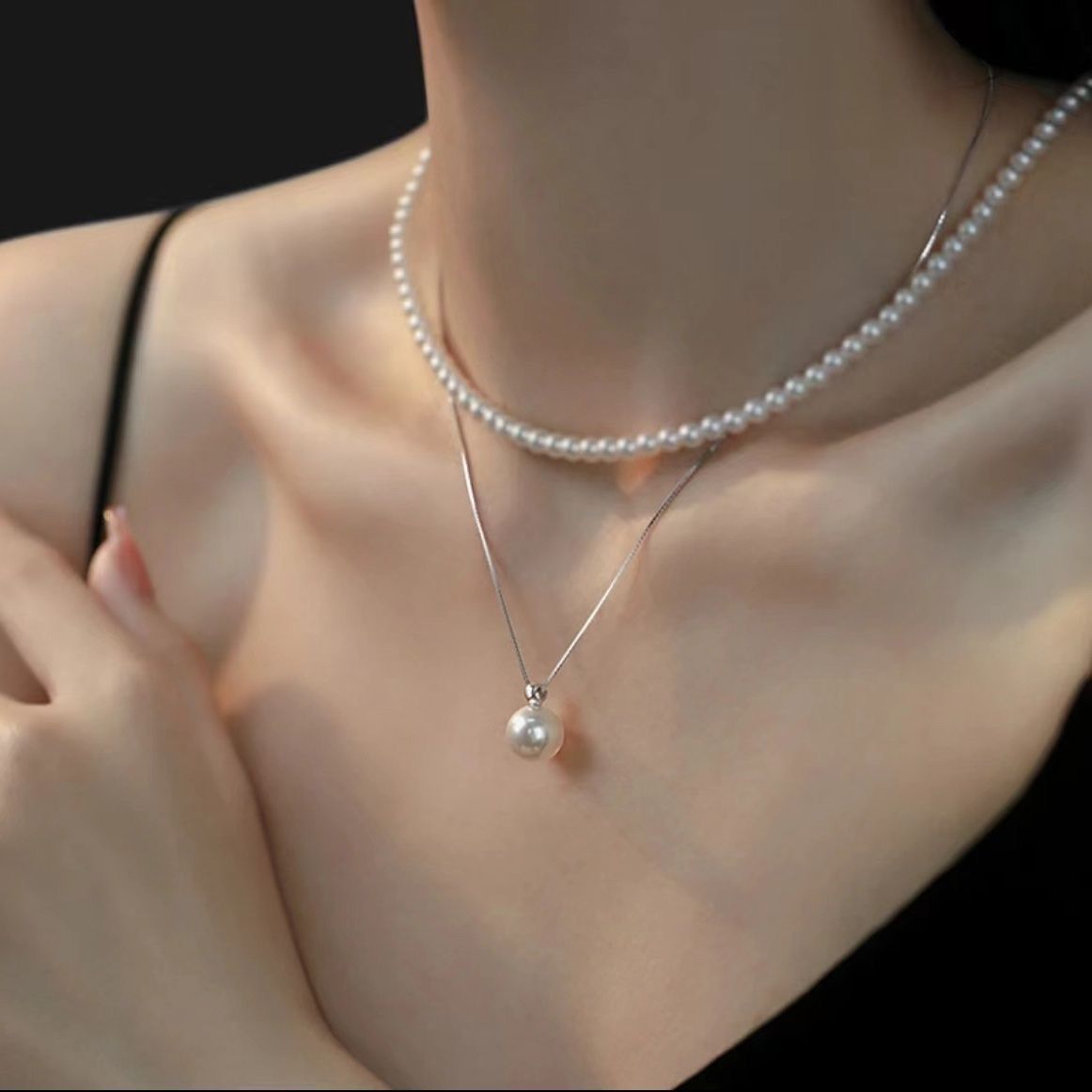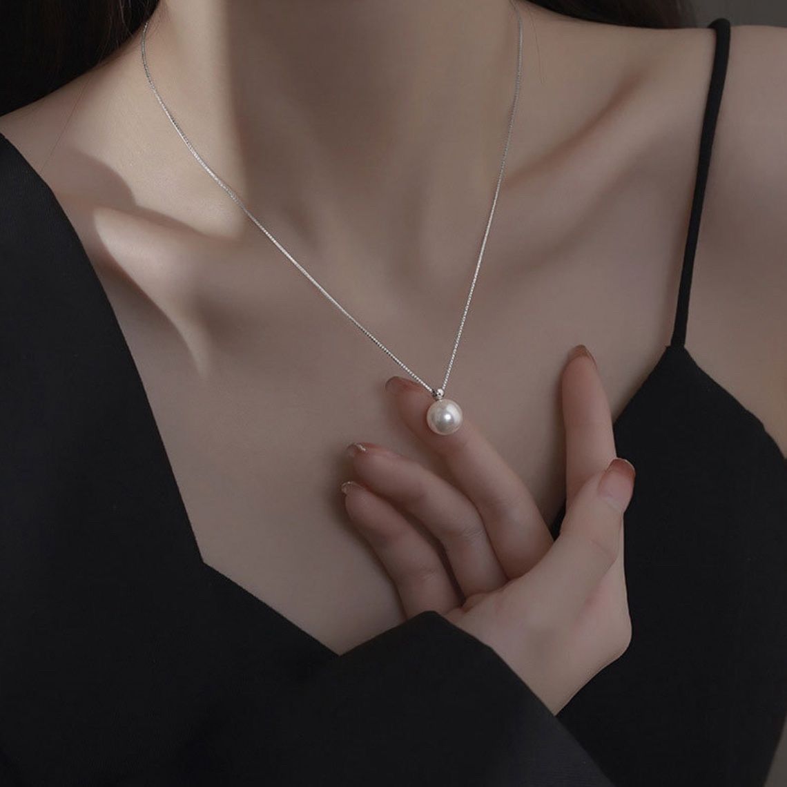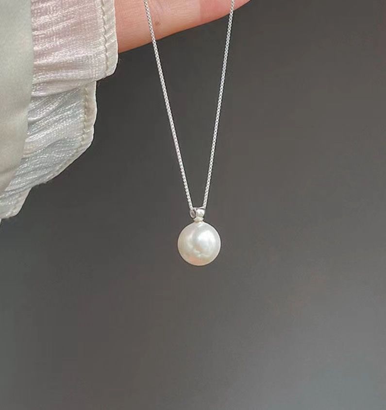 S925镀银小灯泡珍珠项链女简约小众ins气质吊坠锁骨链送女友礼物