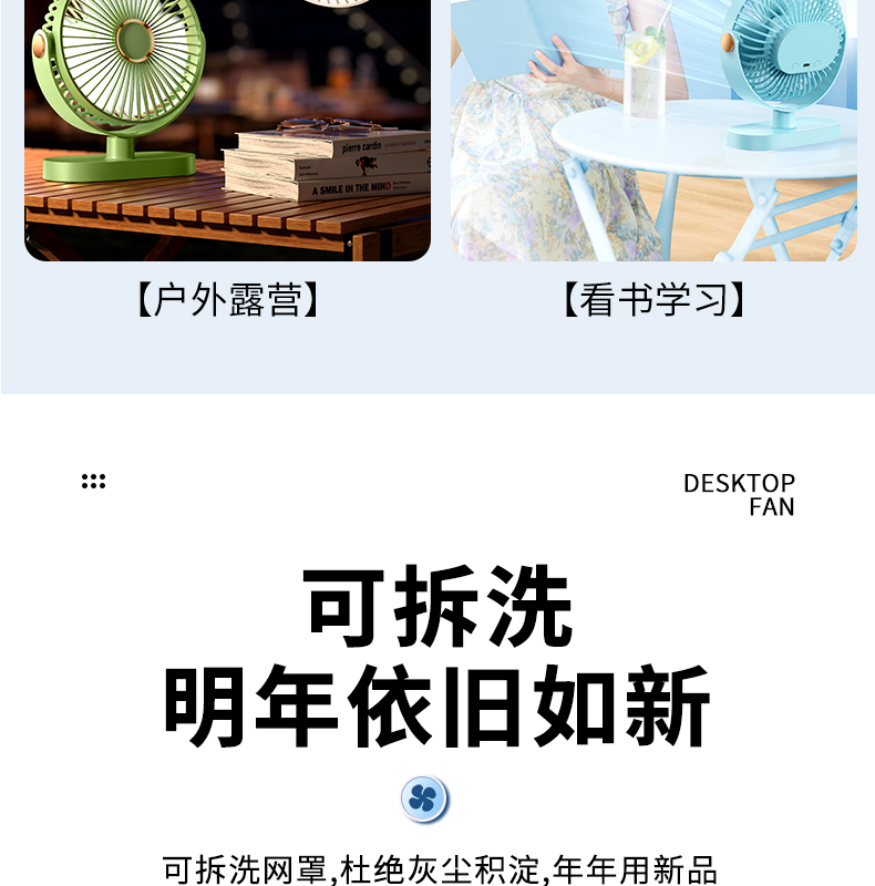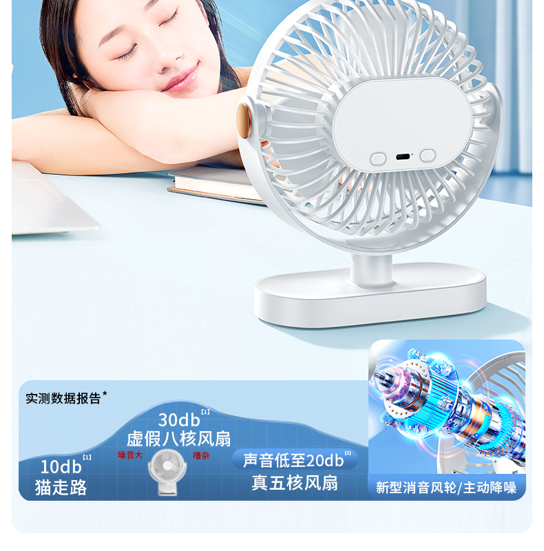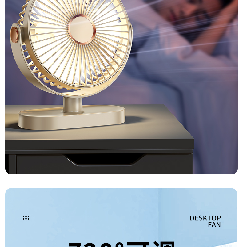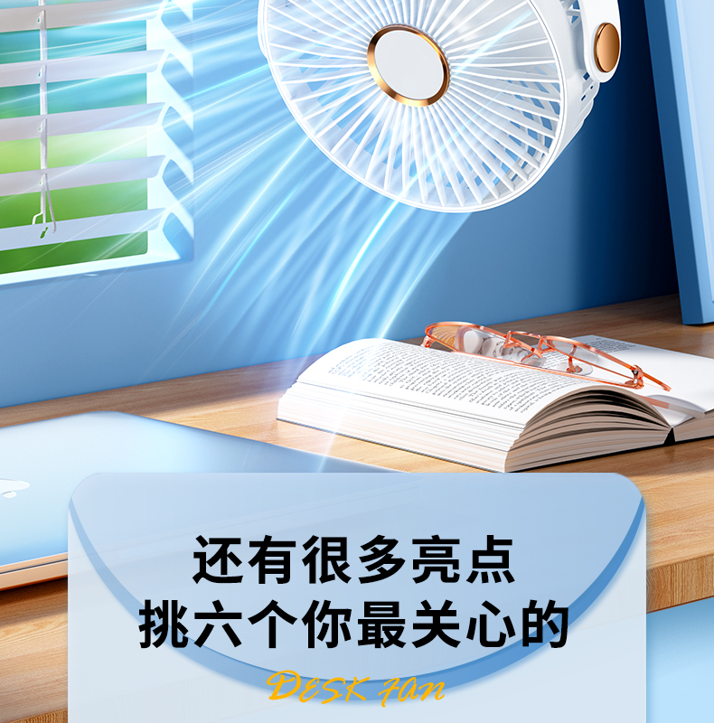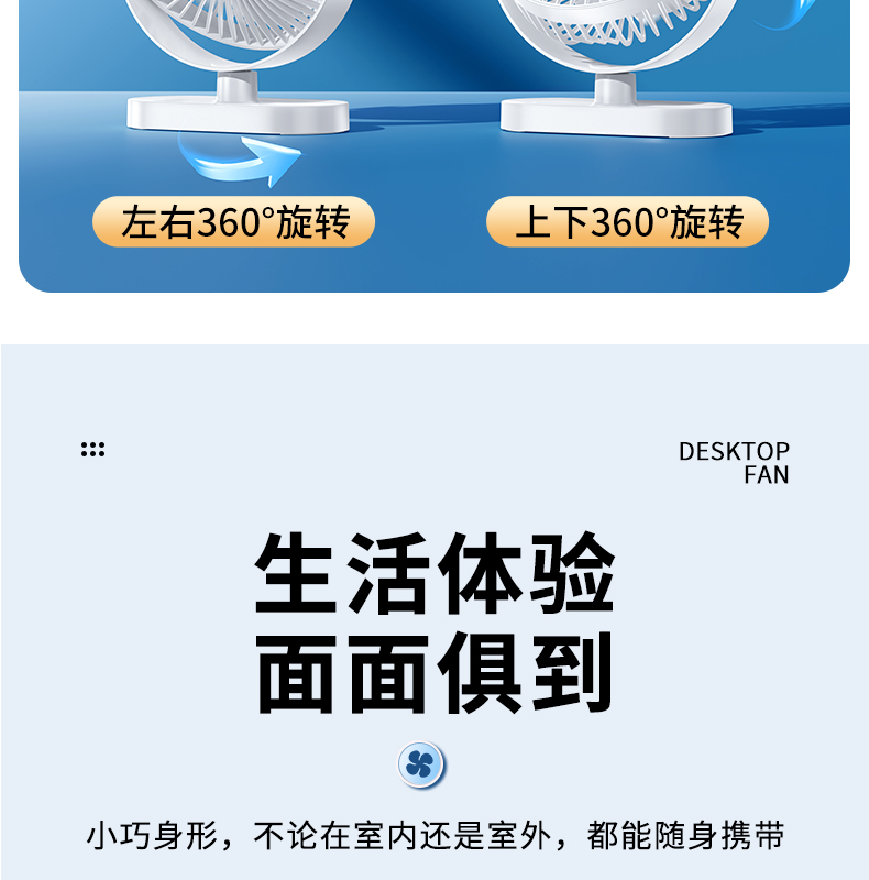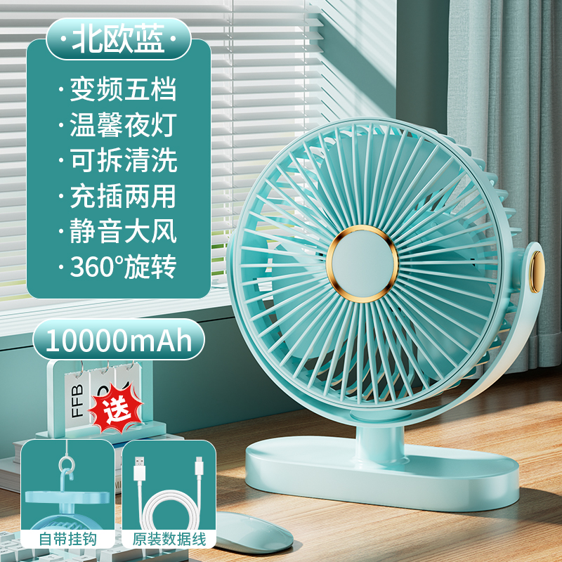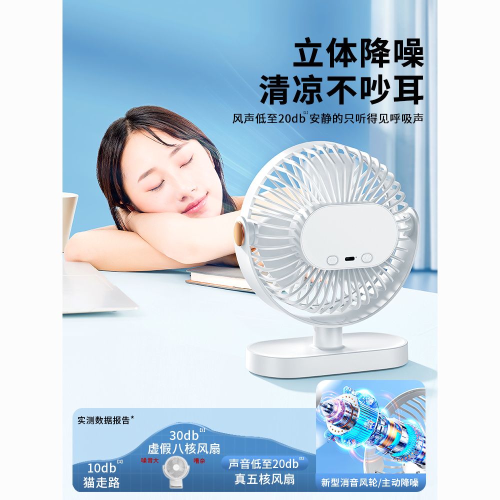 逗映桌面小风扇USB充电式小型便携超静音学生宿舍床头办公室桌上