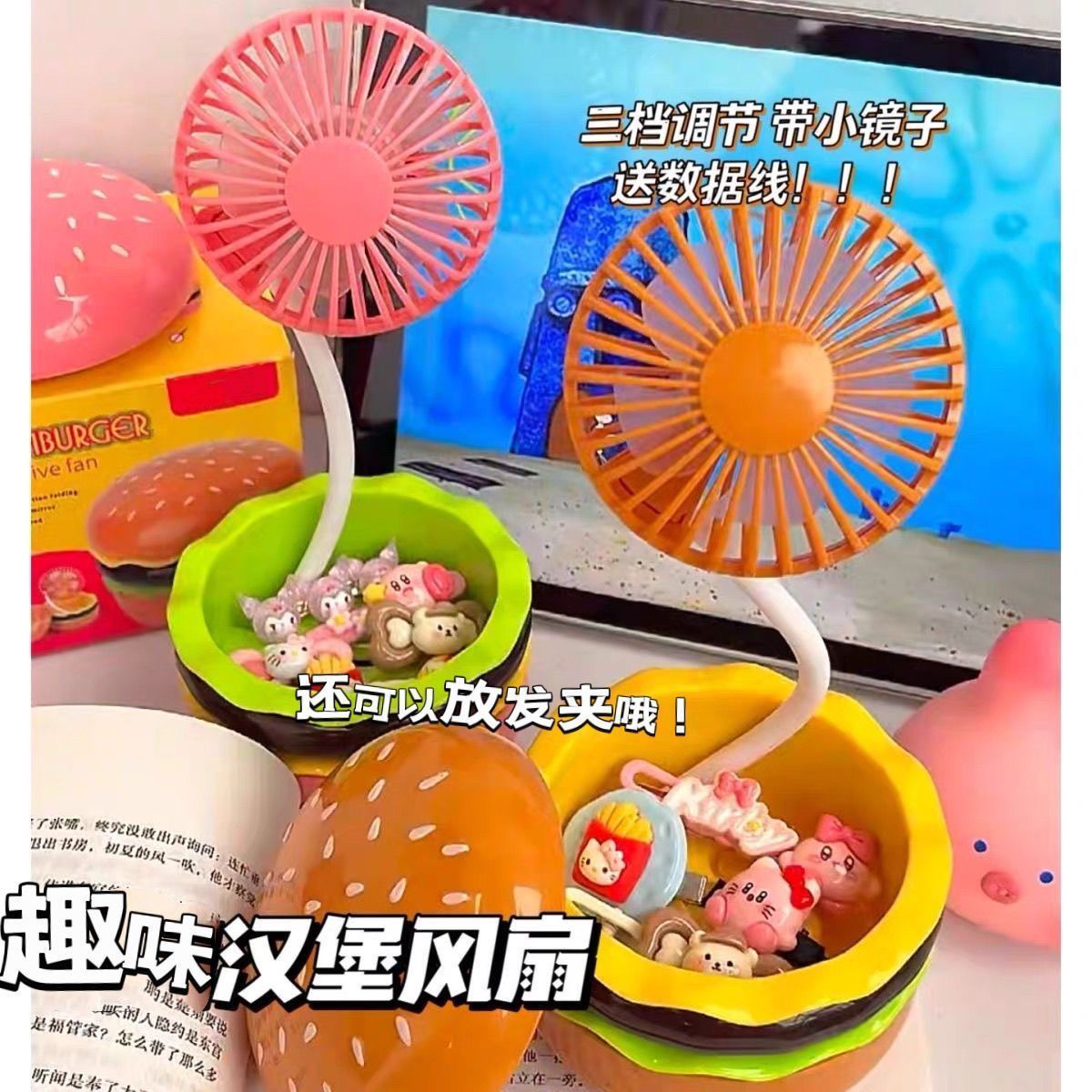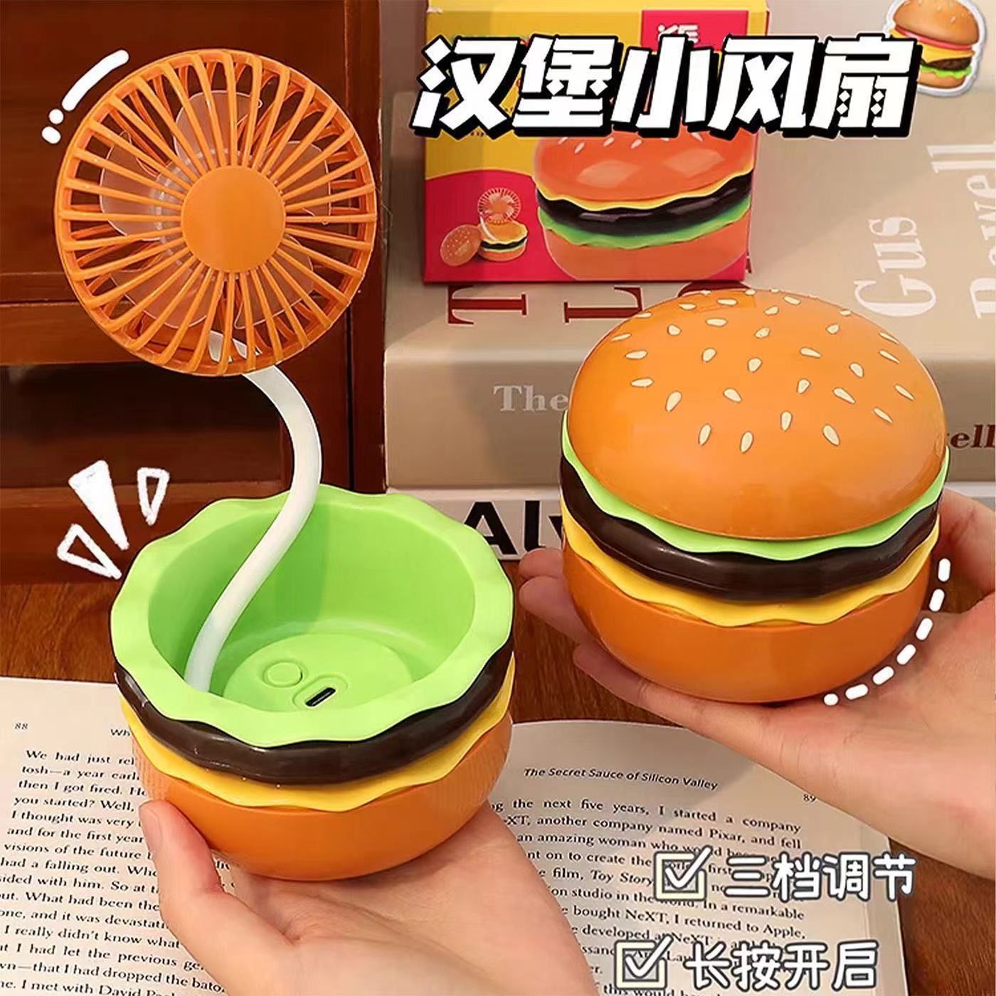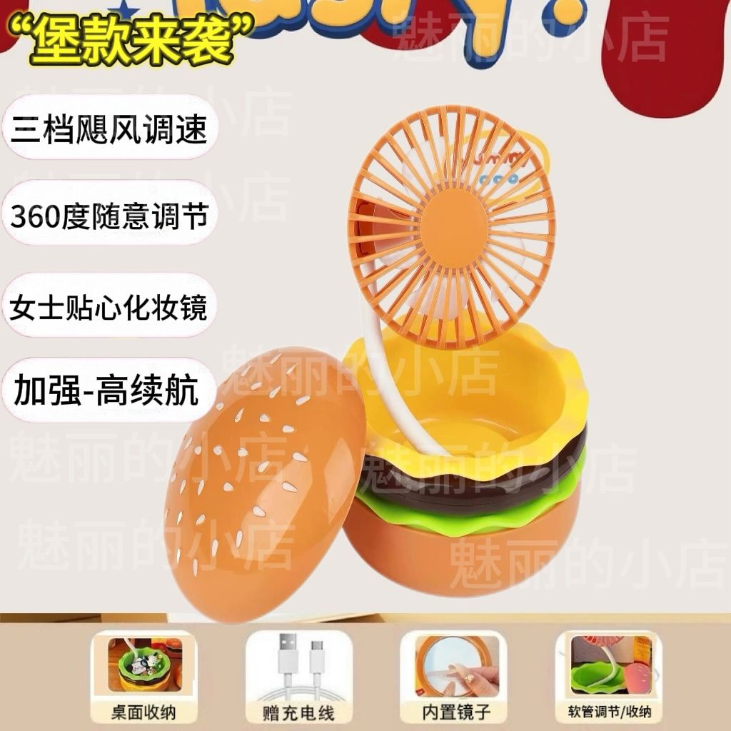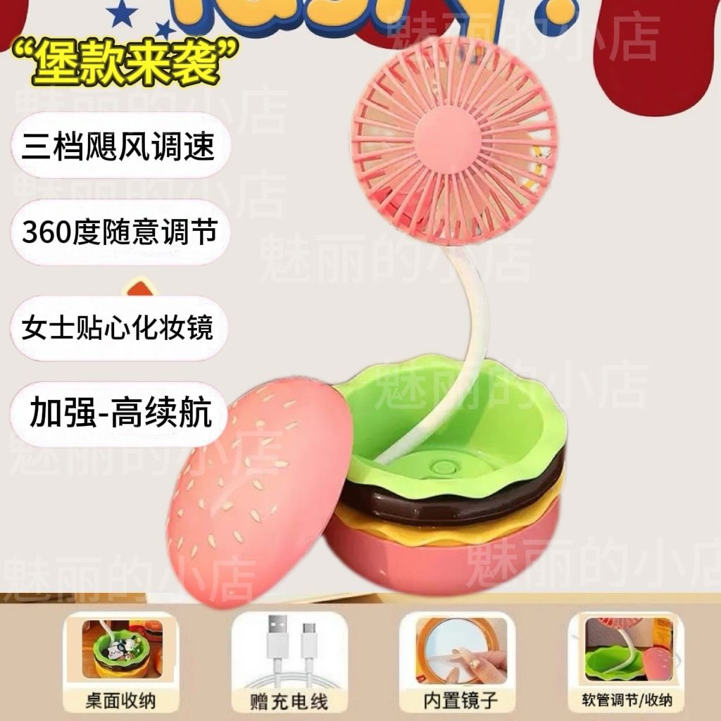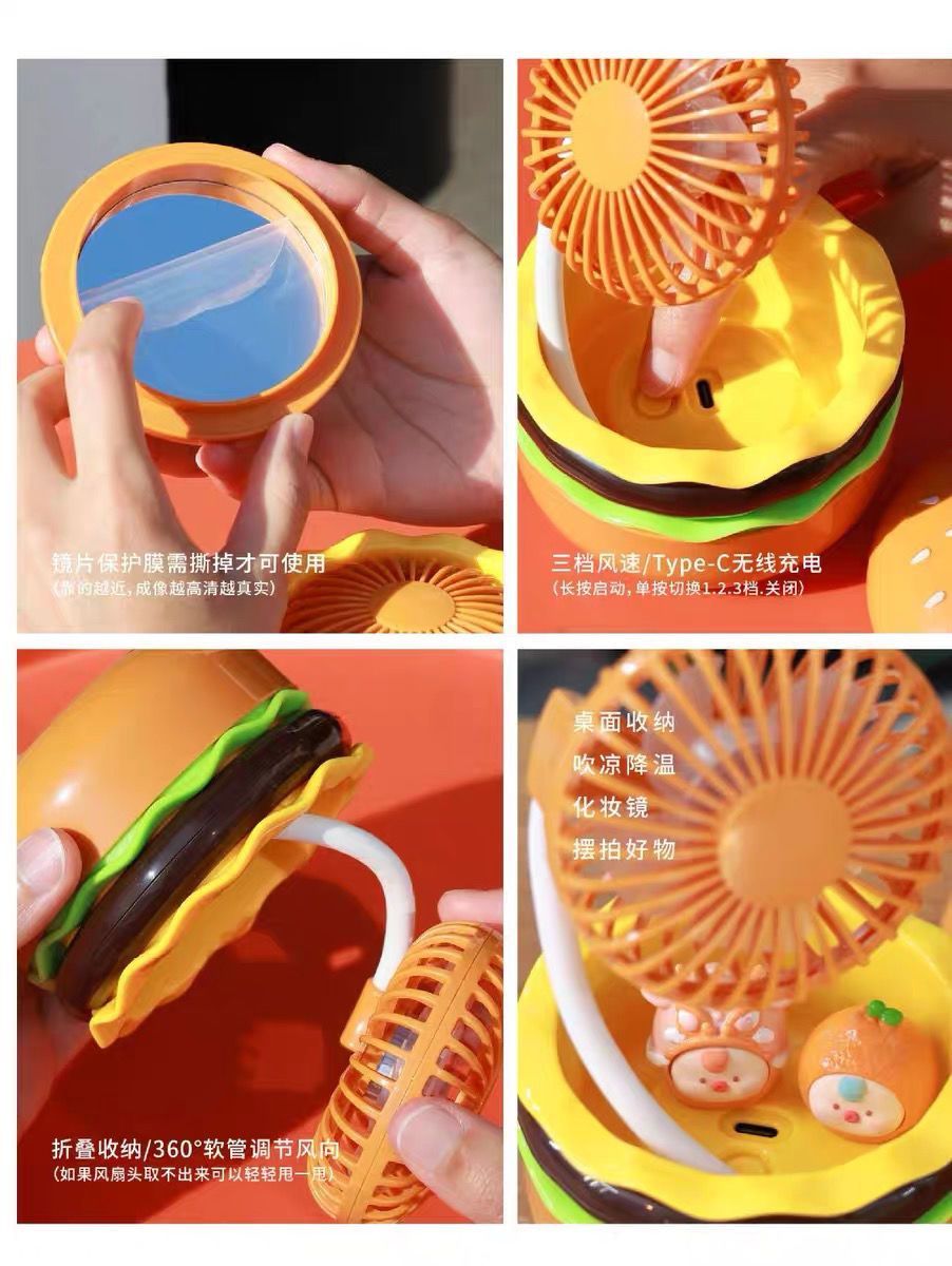 汉堡多功能手持风扇办公桌面便携学生宿舍usb充电小风扇静音送礼