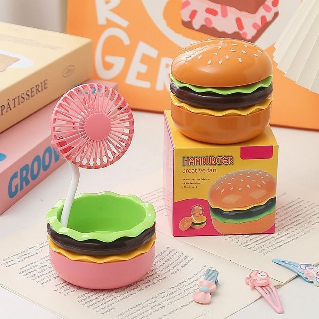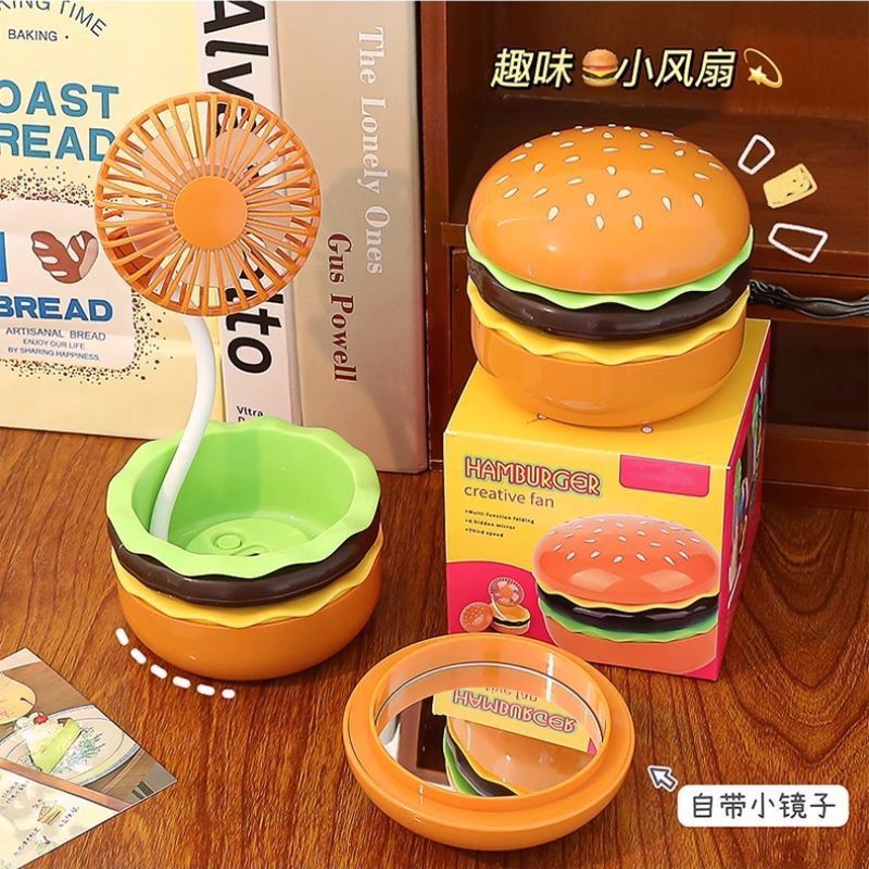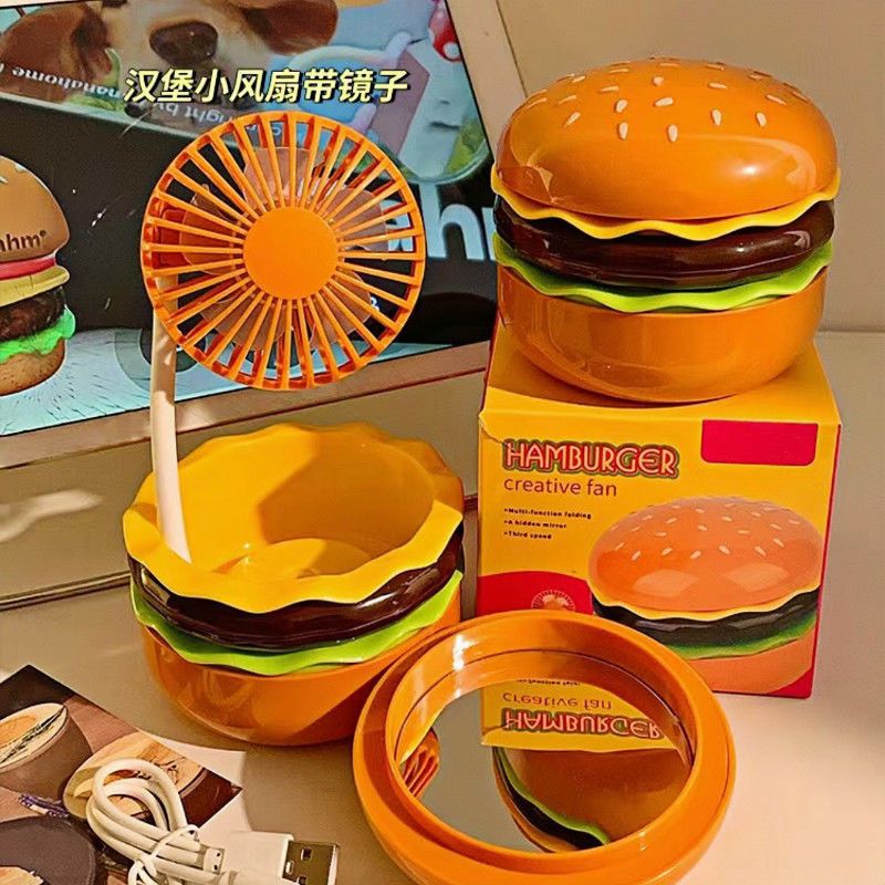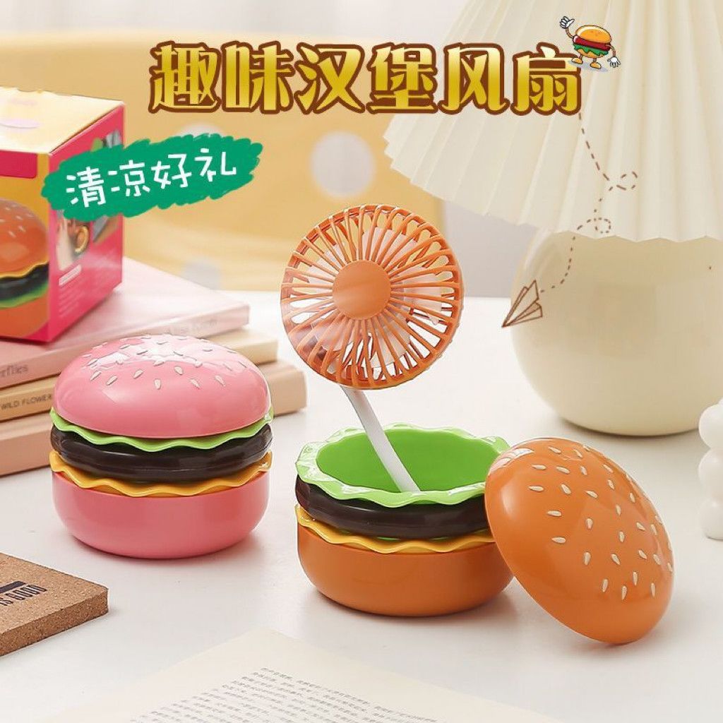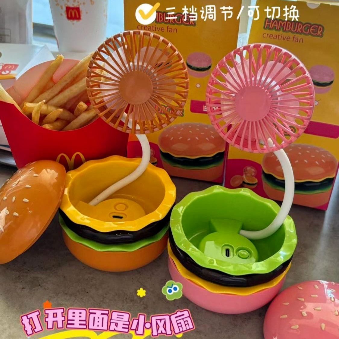 汉堡多功能手持风扇办公桌面便携学生宿舍usb充电小风扇静音送礼