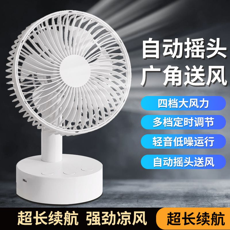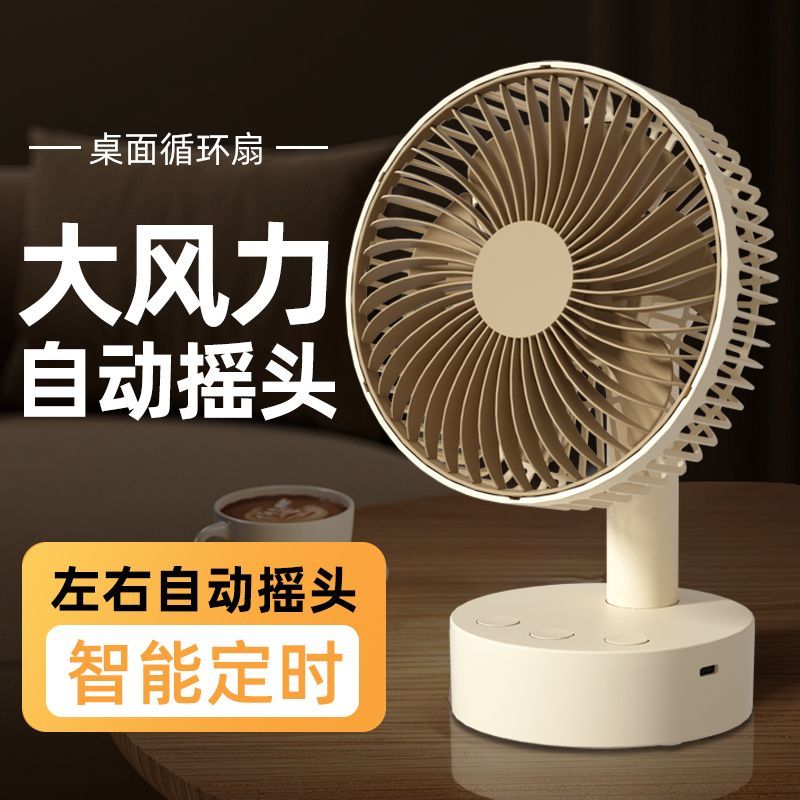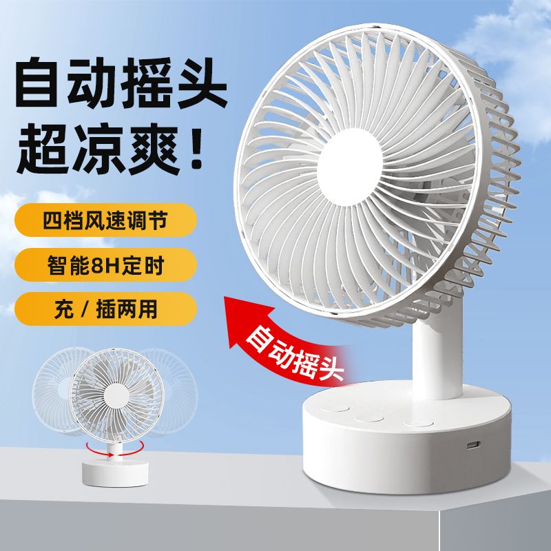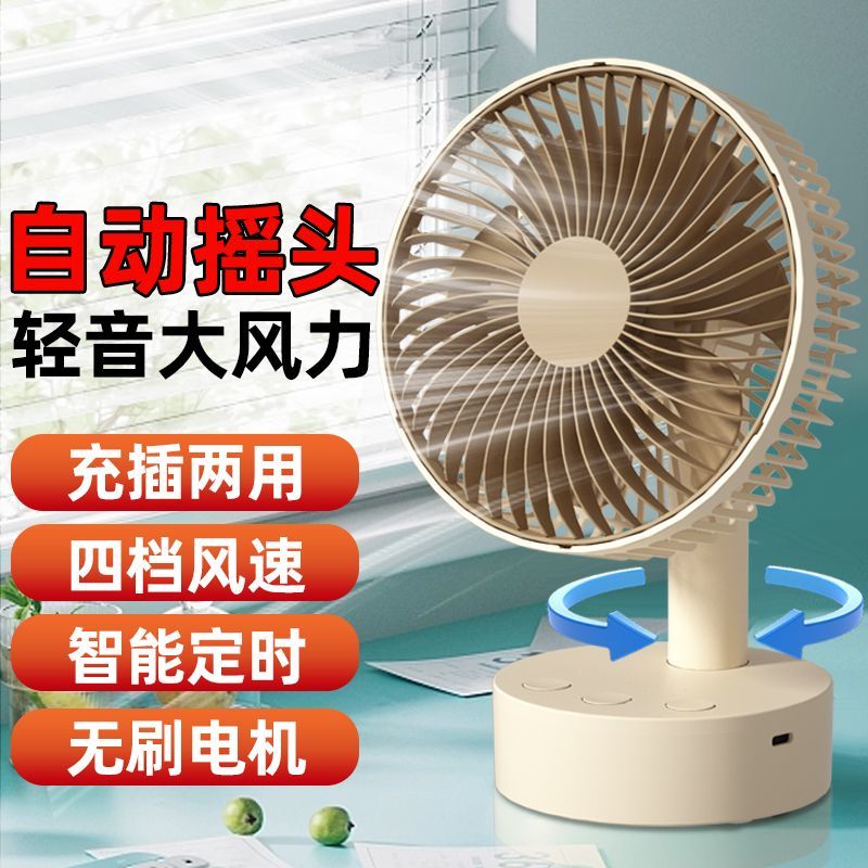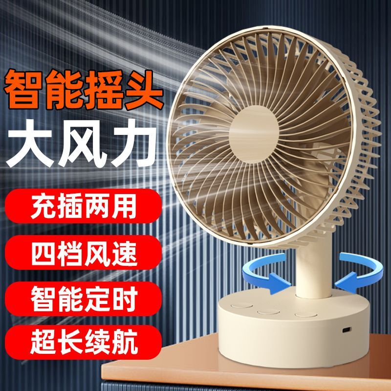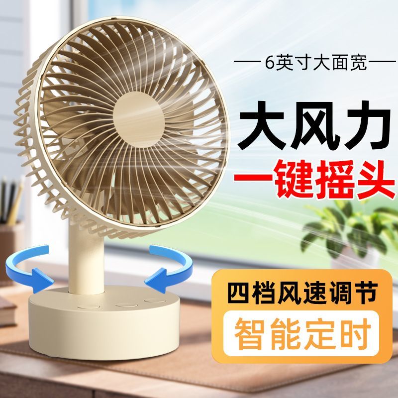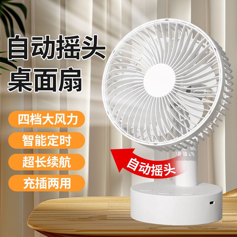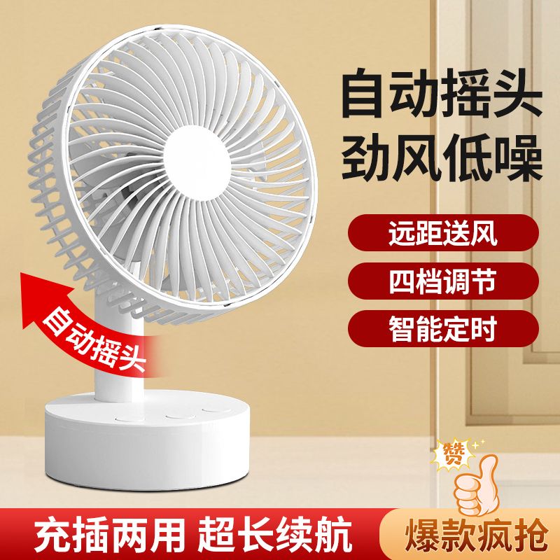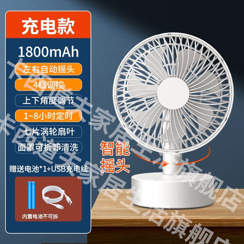 智能摇头风扇家用静音学生宿舍床上充电风扇小型桌面大风力台扇