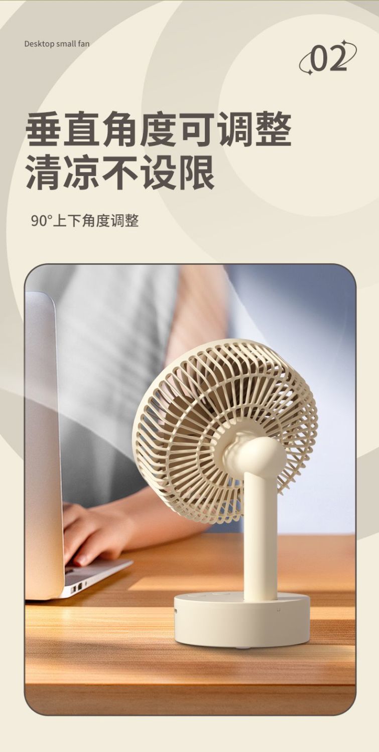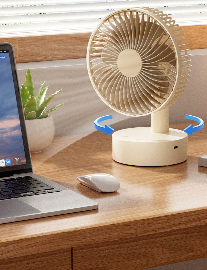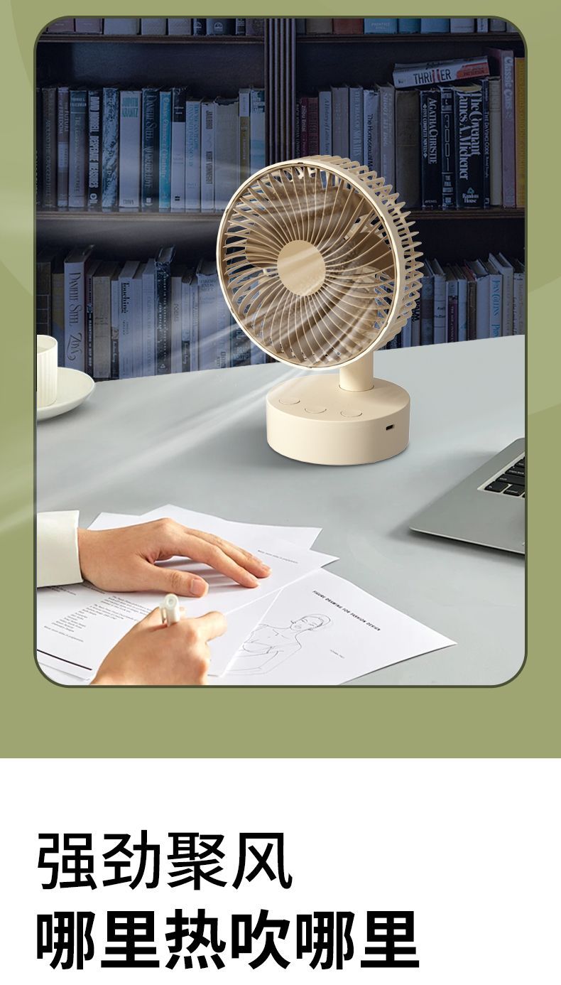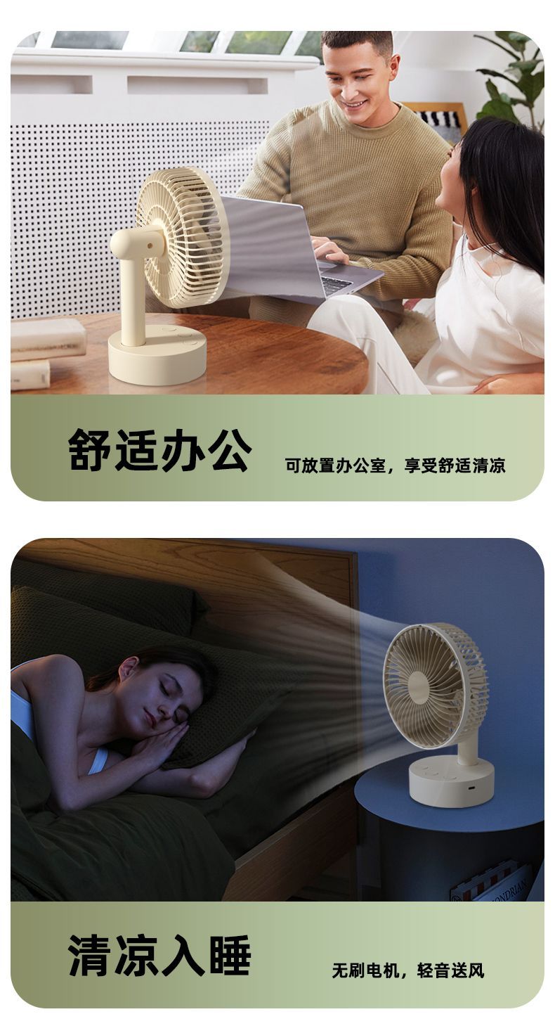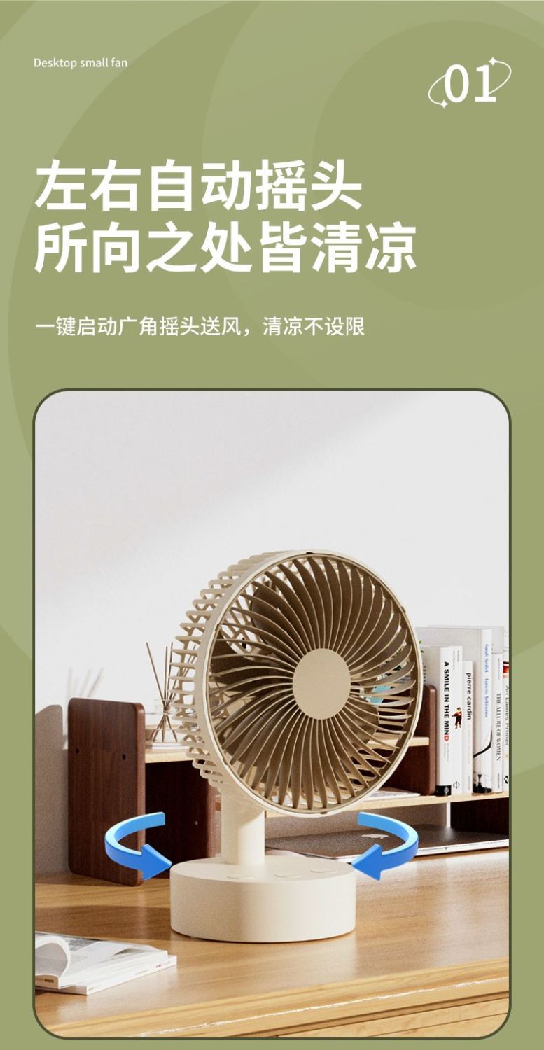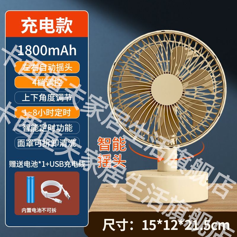 智能摇头风扇家用静音学生宿舍床上充电风扇小型桌面大风力台扇