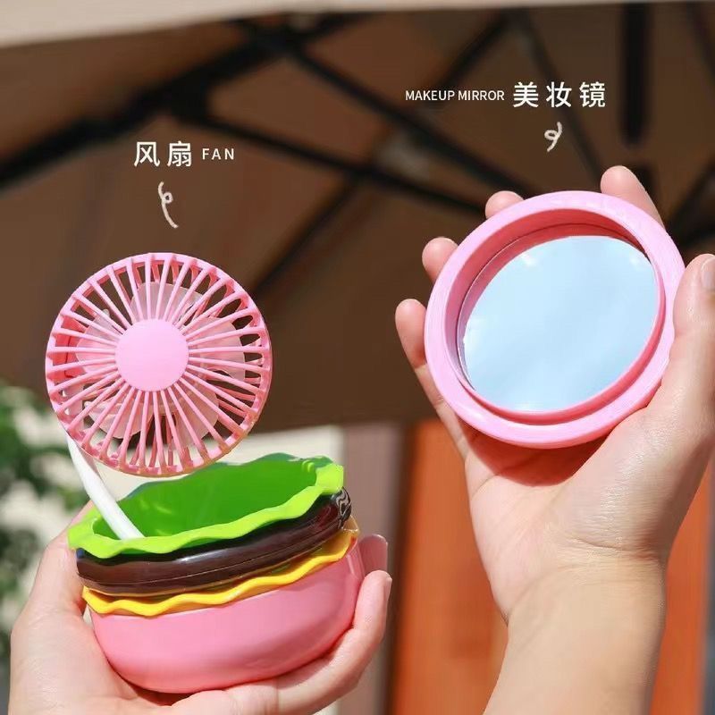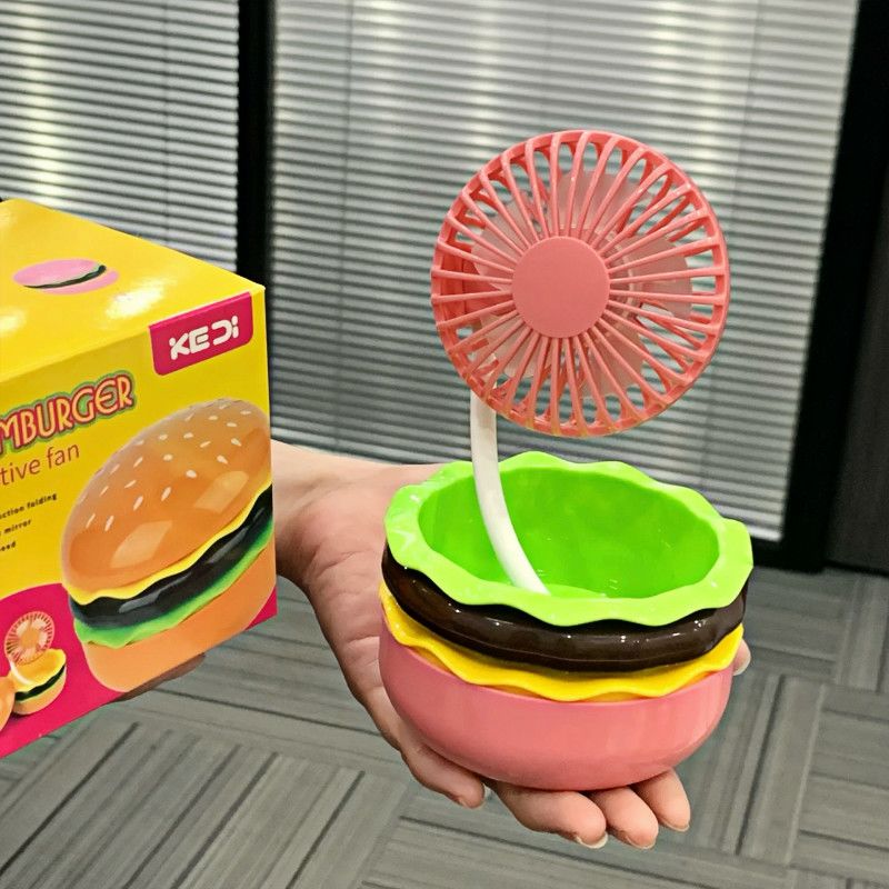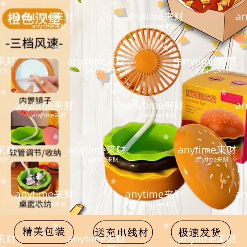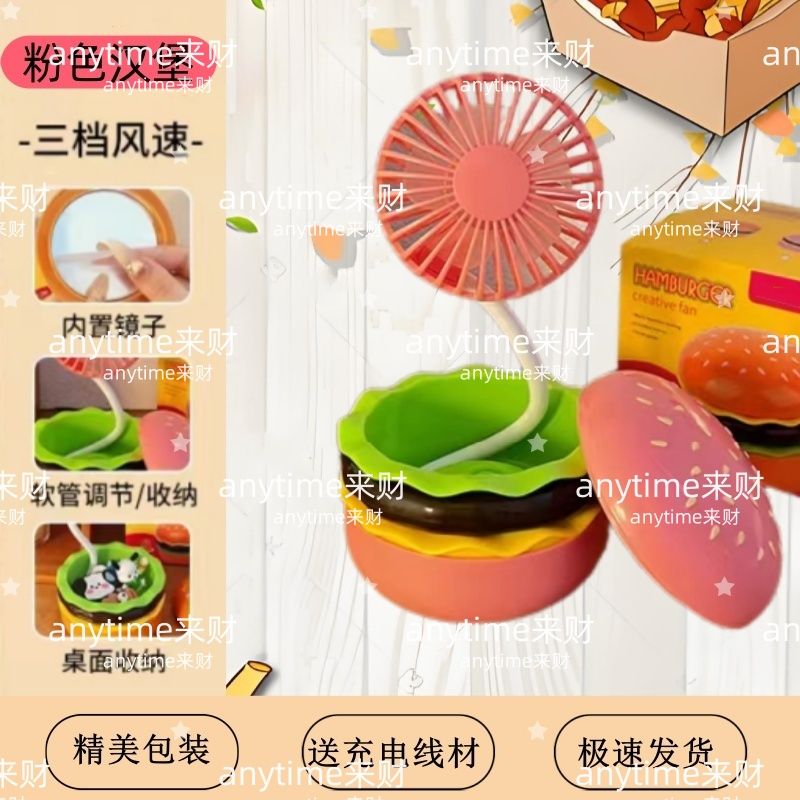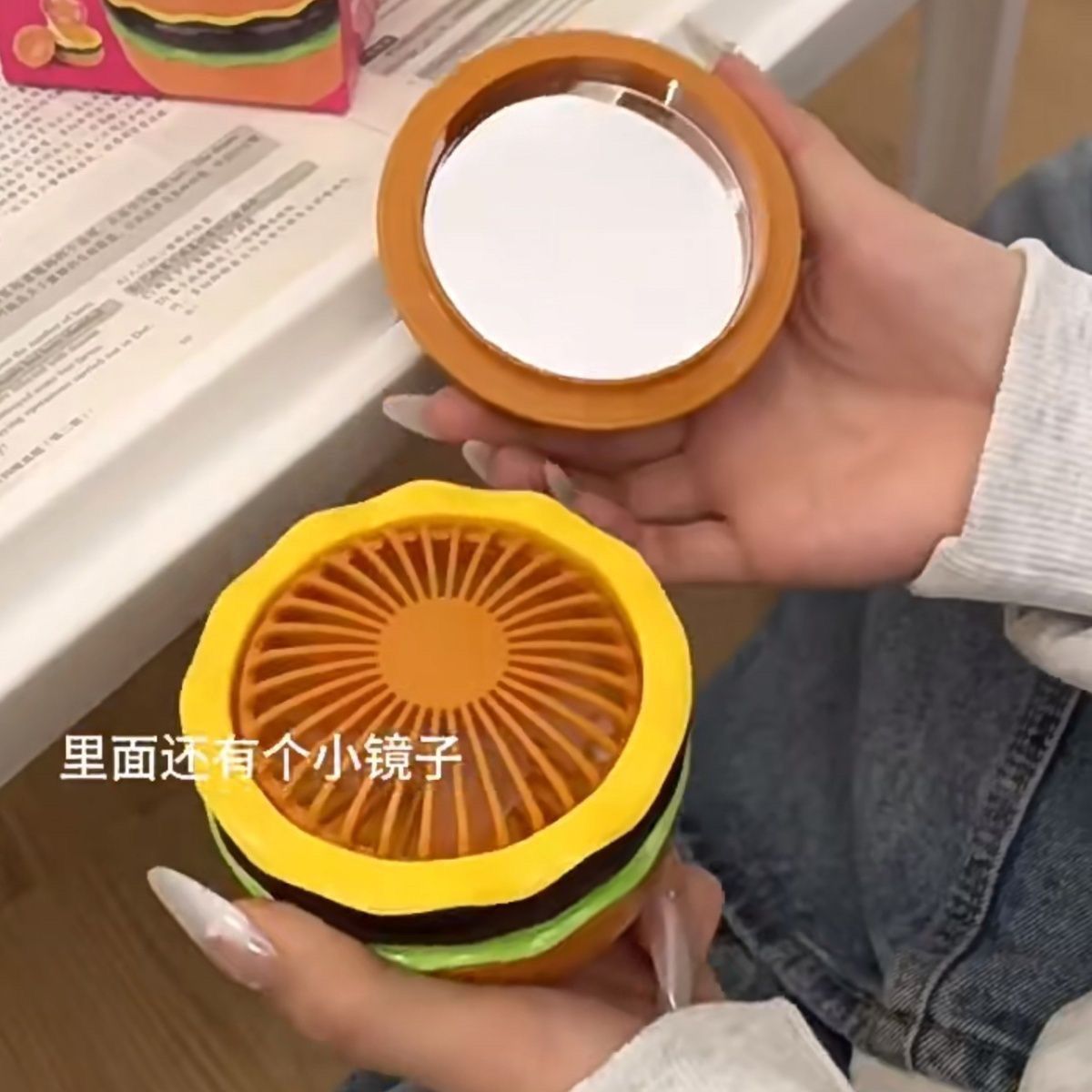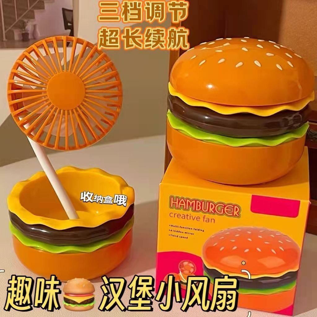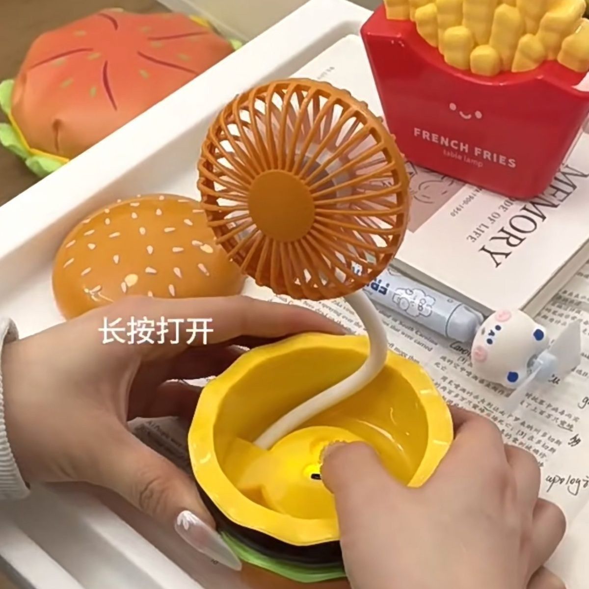 汉堡多功能手持风扇办公桌面便携学生宿舍usb充电小风扇静音送礼