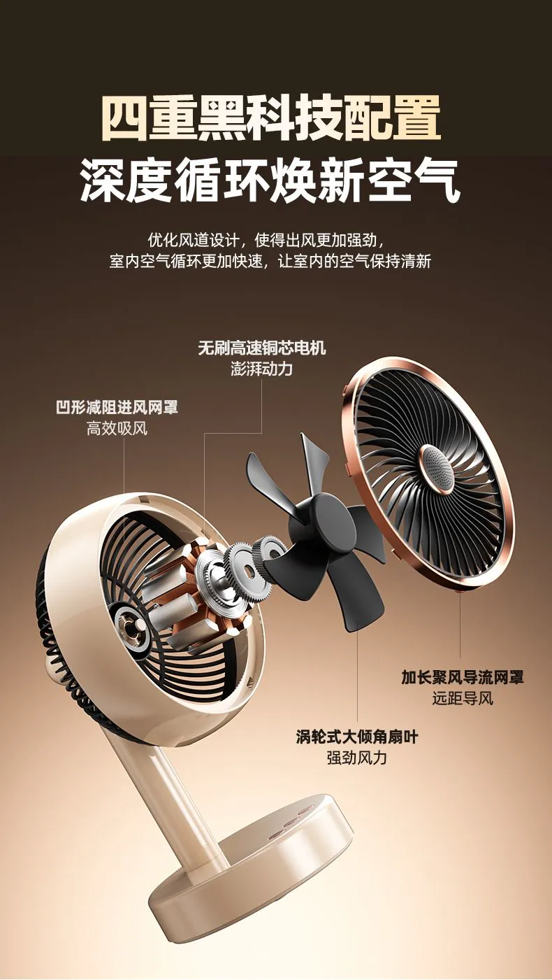 lemana摇头桌面风扇长续航USB充电学生宿舍办公室卧室小型电风扇