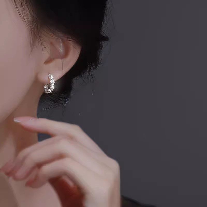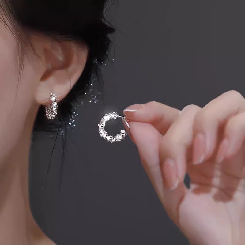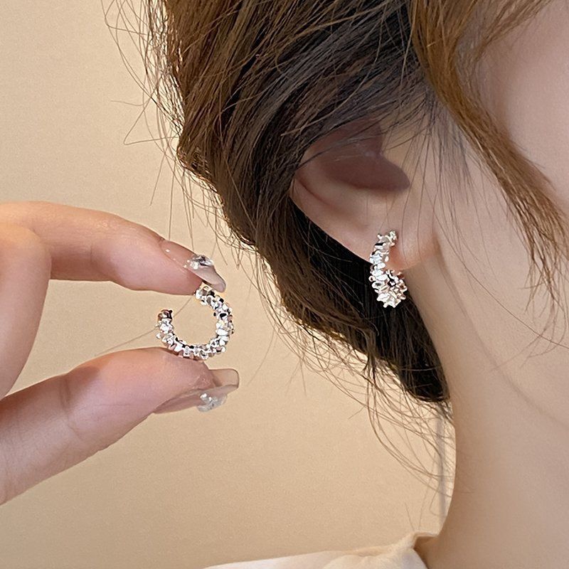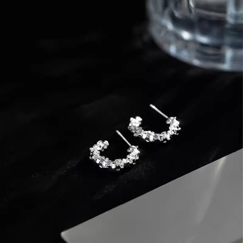 925纯银针碎银子耳环女轻奢小众设计高级感耳钉气质碎银耳饰耳圈
