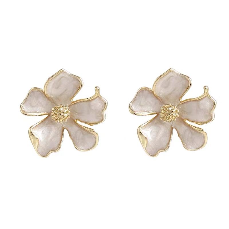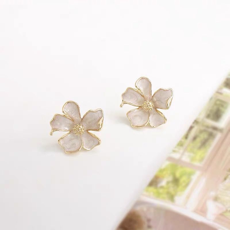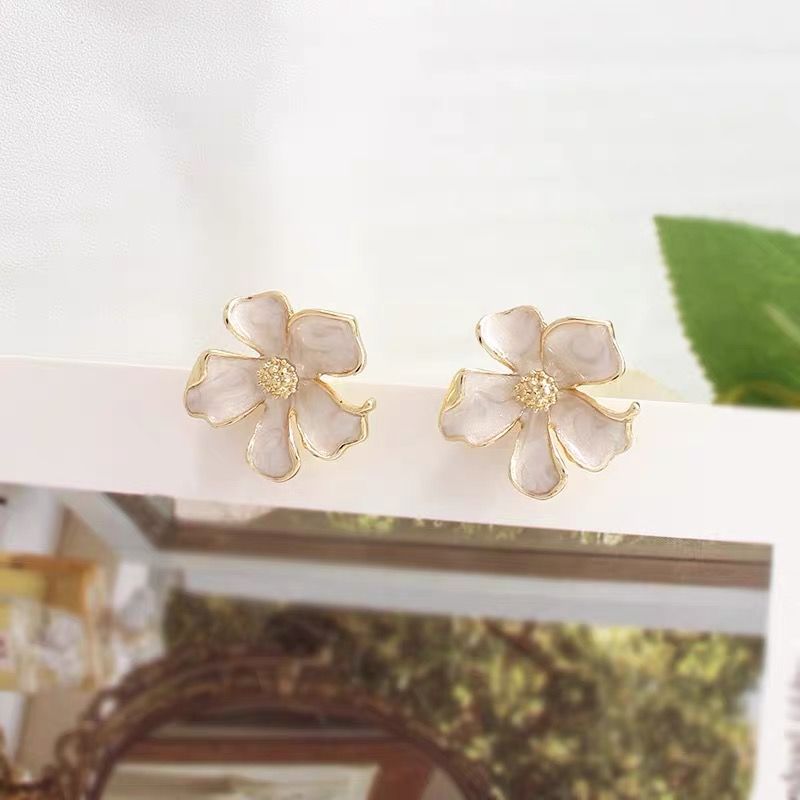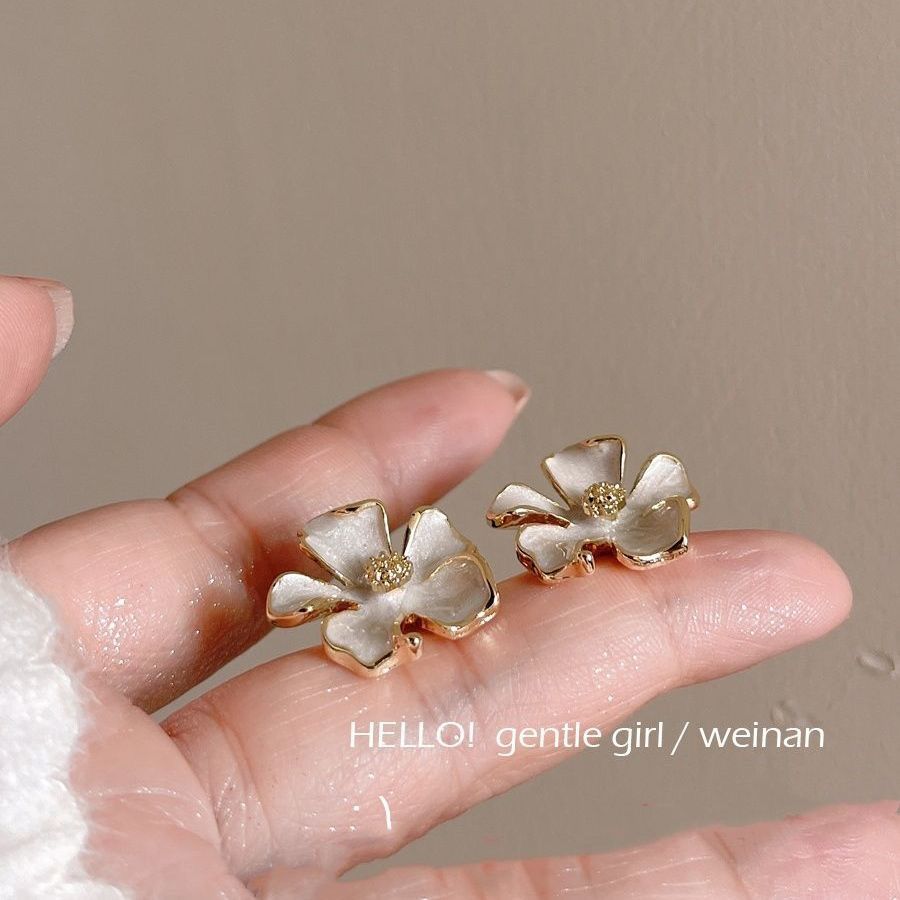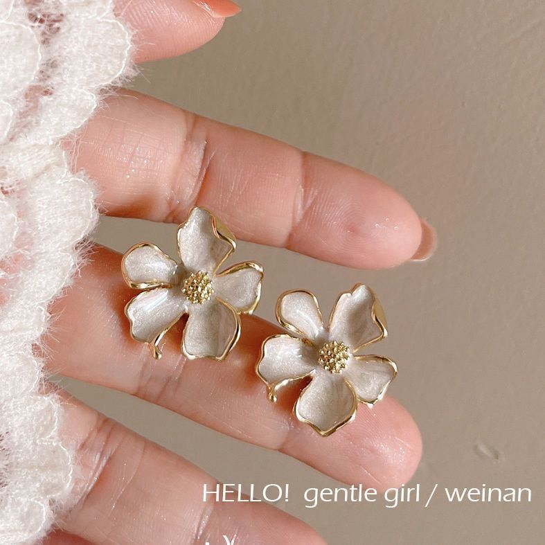 奶白温柔栀子花立体花朵高级法式小香滴釉春天925银钉耳饰轻奢
