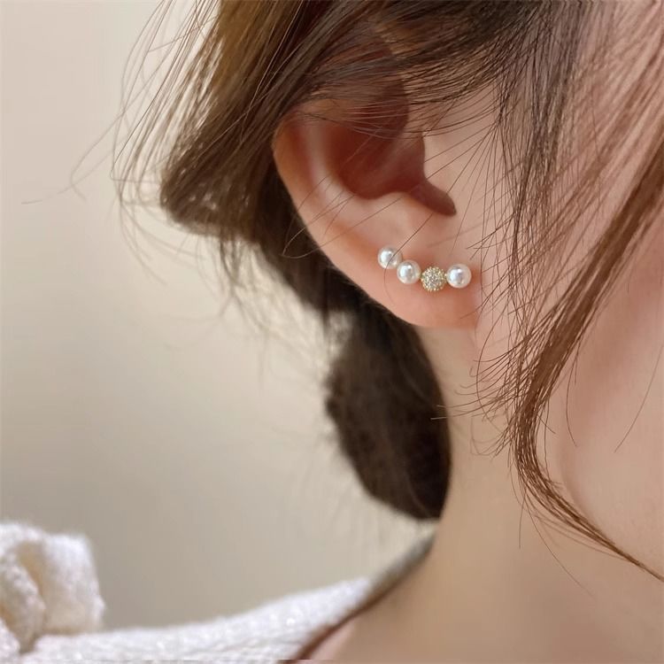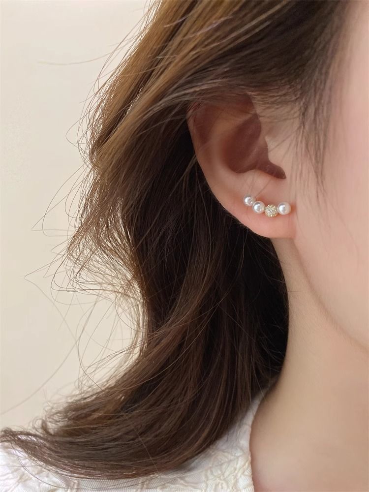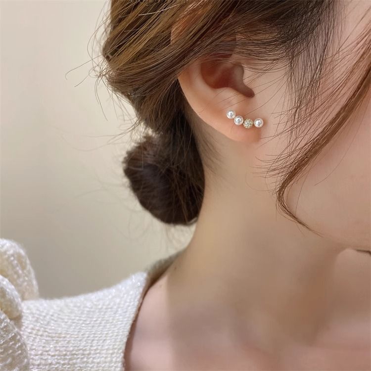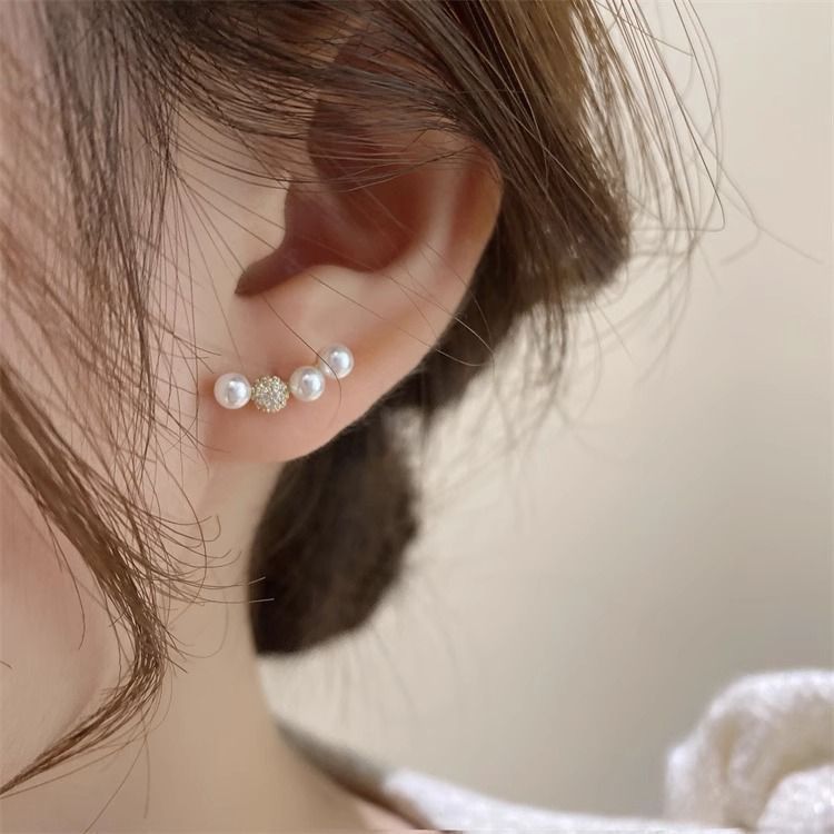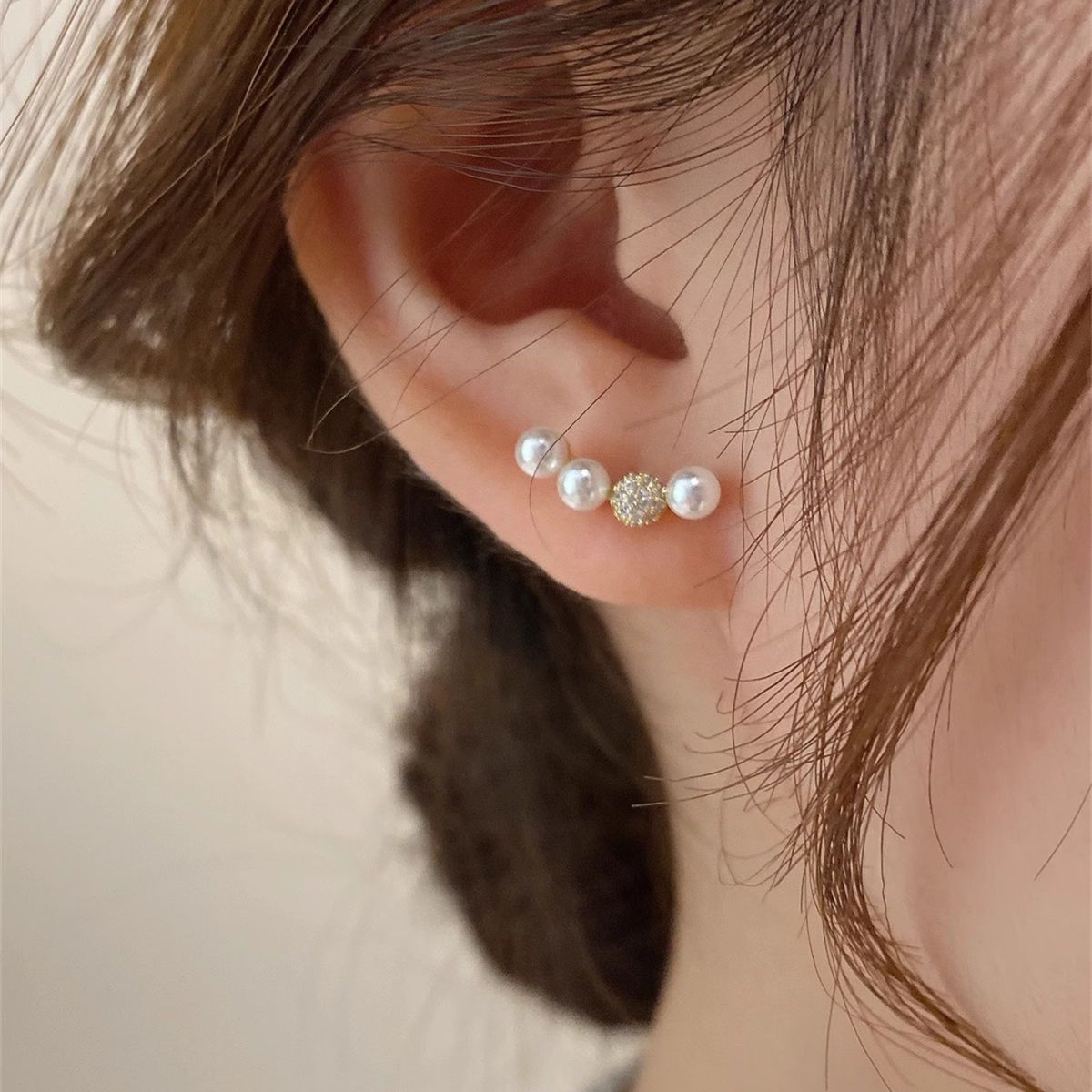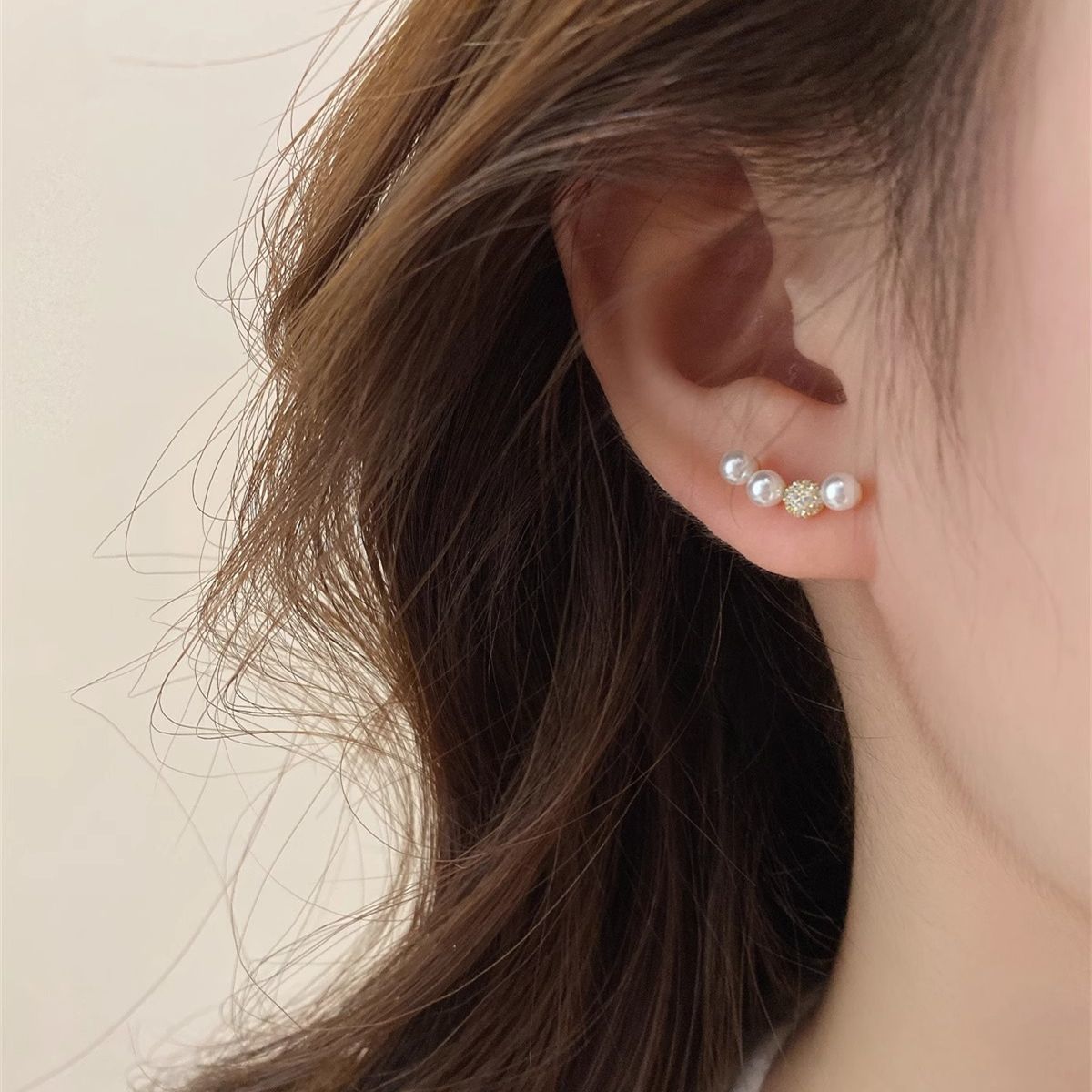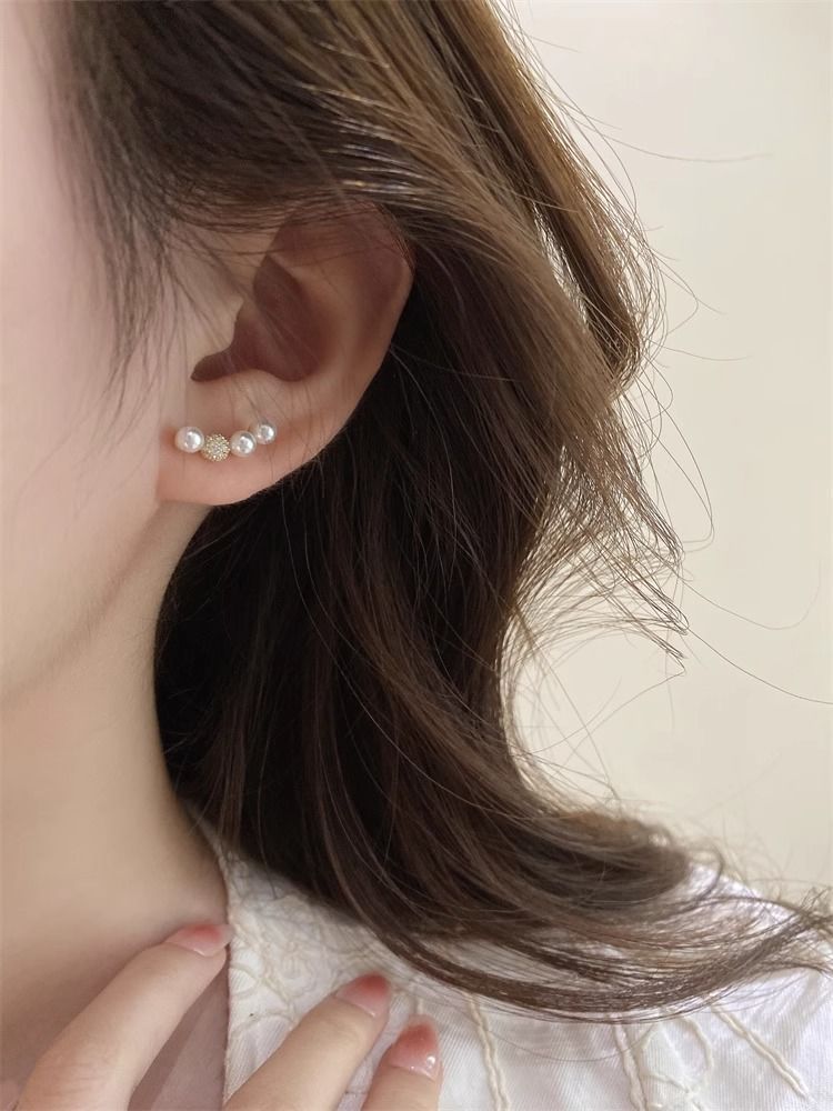 s925银耳钉微笑一字简约养耳洞珍珠耳环女小众设计感睡觉免摘耳饰
