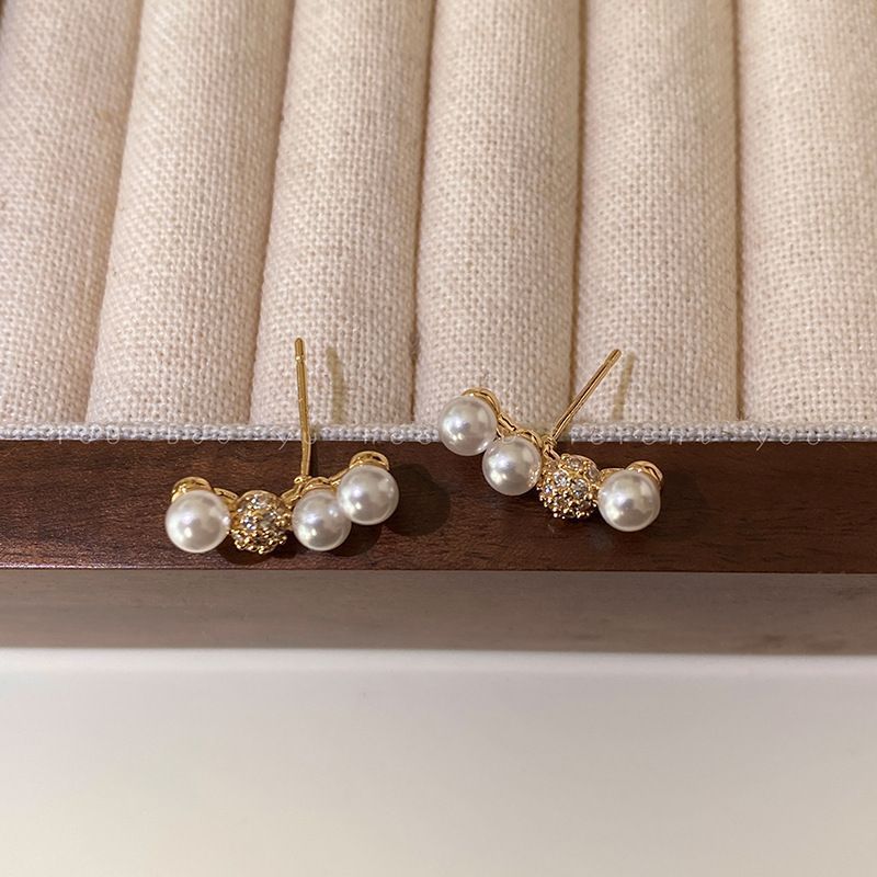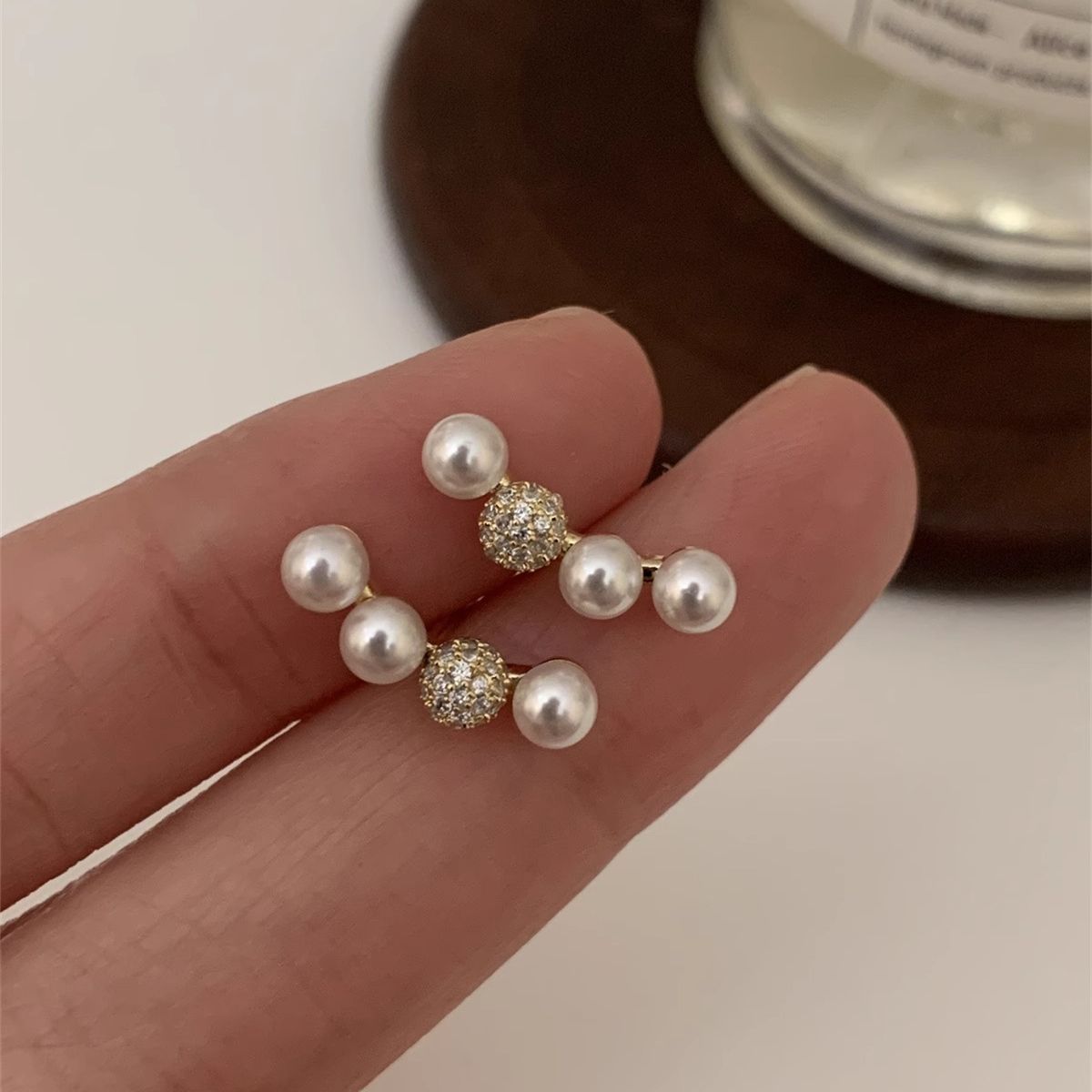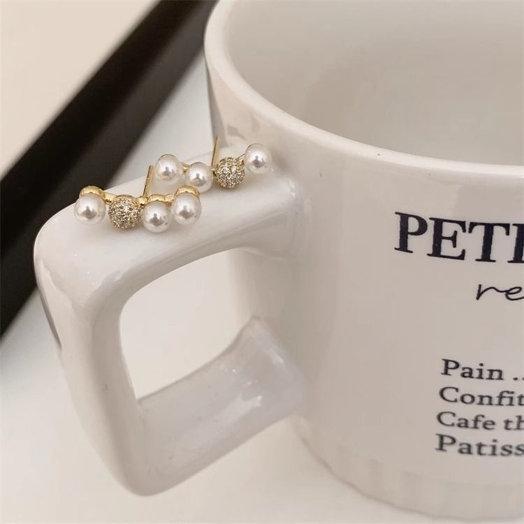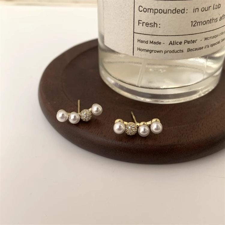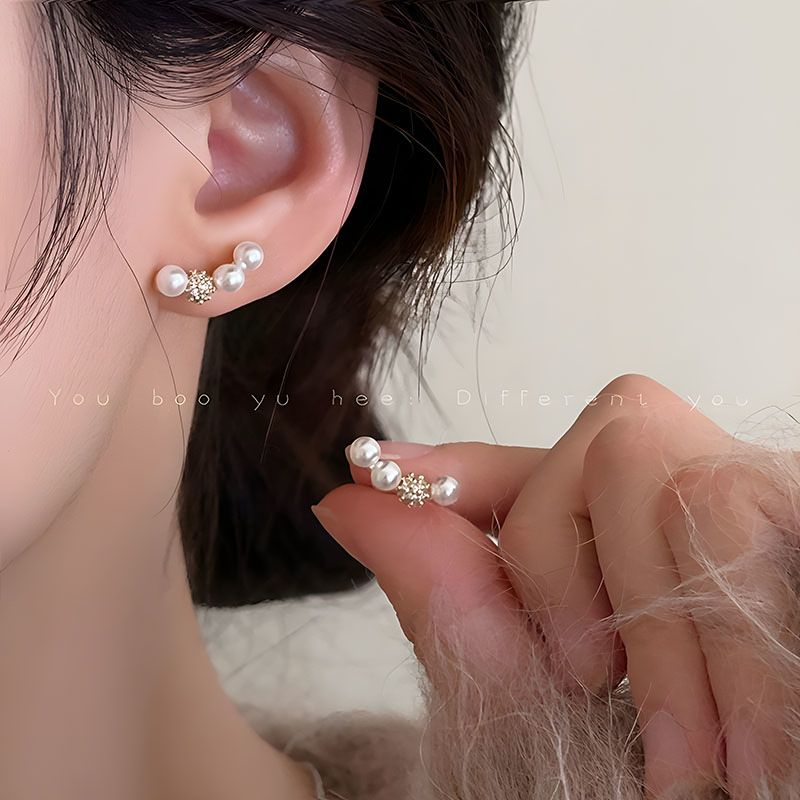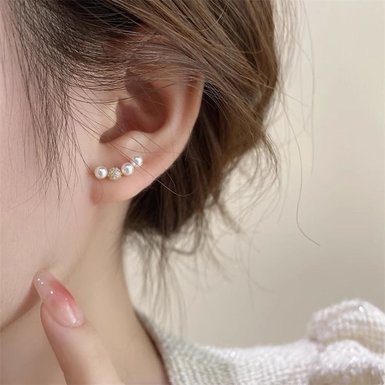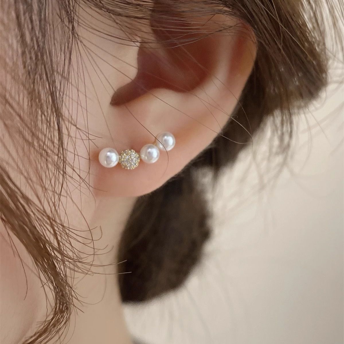 s925银耳钉微笑一字简约养耳洞珍珠耳环女小众设计感睡觉免摘耳饰