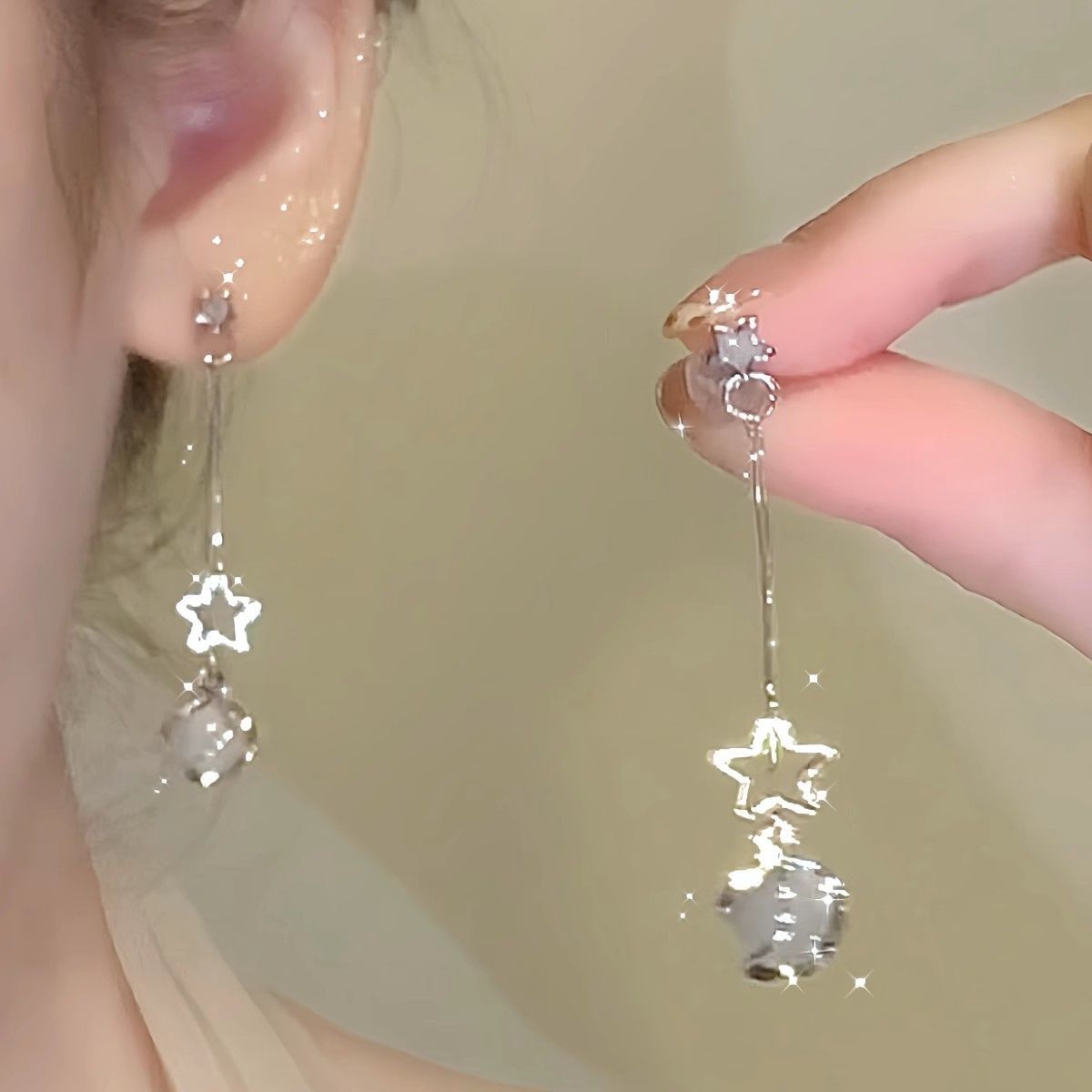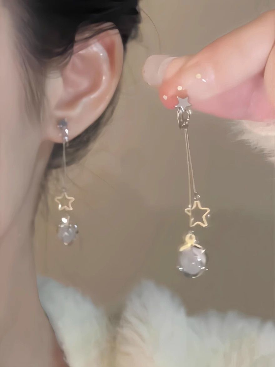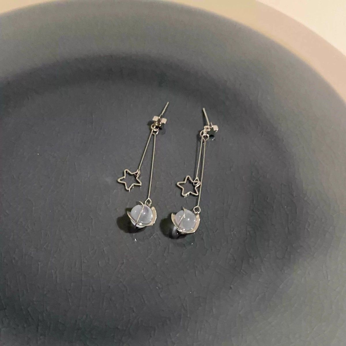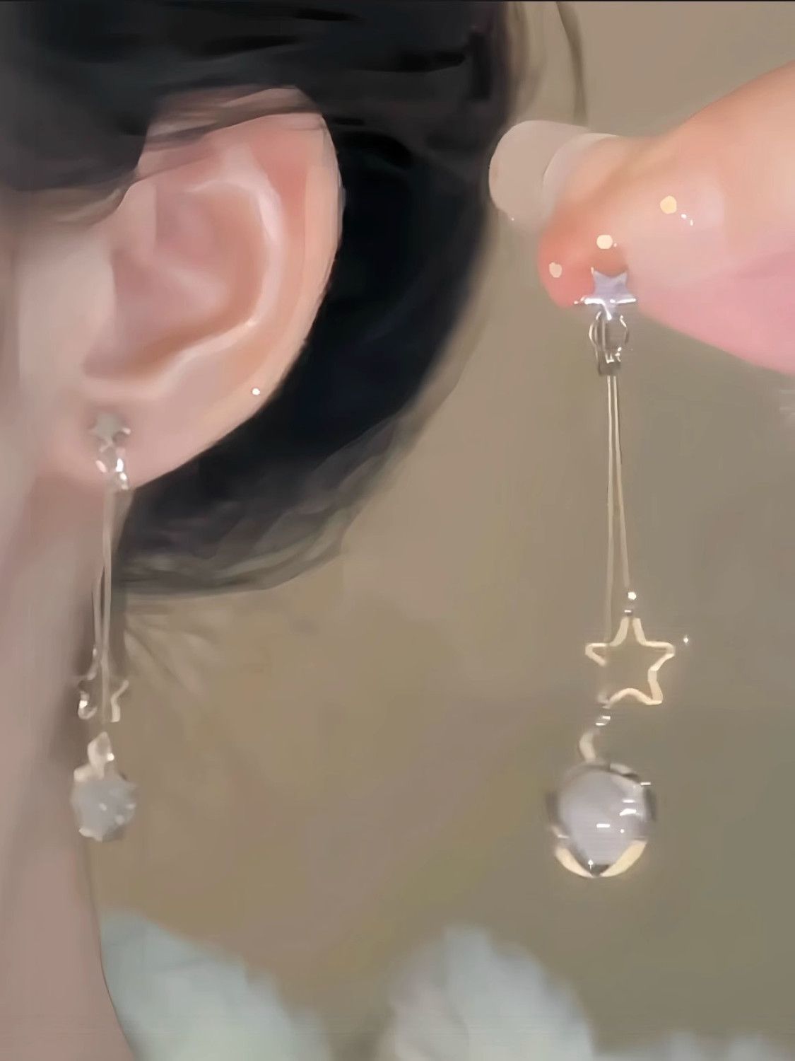 「猫眼星球」清冷感猫眼石星星925银耳环女气质无耳洞耳夹新款