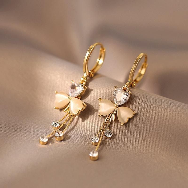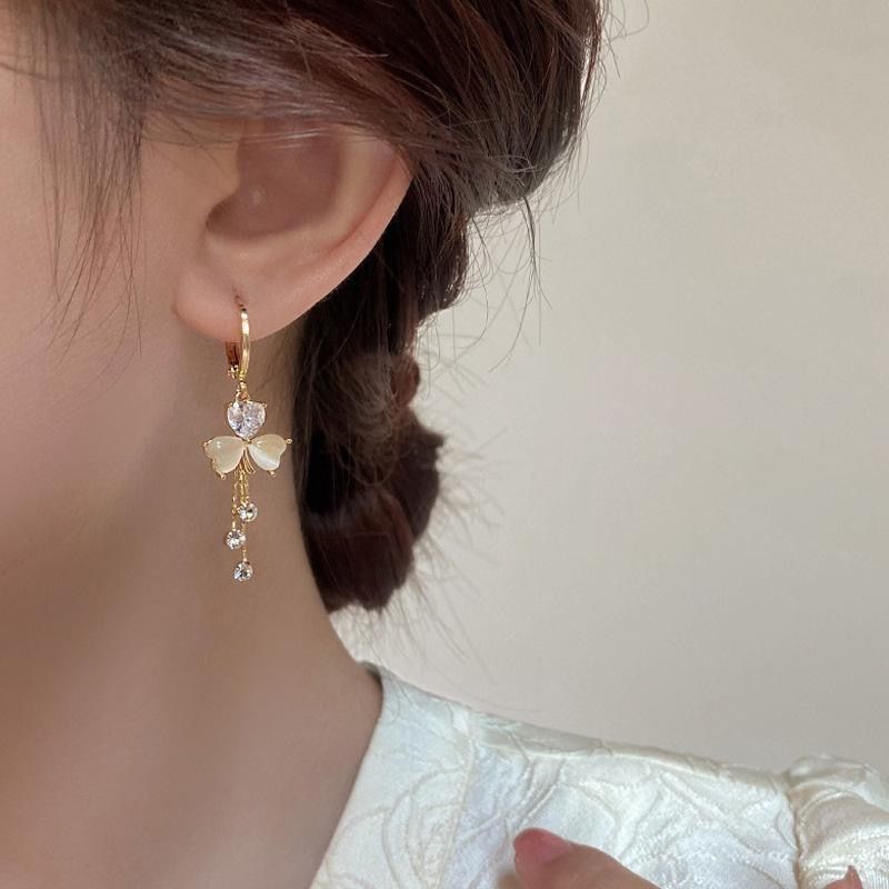 三叶草花朵流苏耳环女轻奢气质高级感耳扣2025新款养耳洞银针耳饰