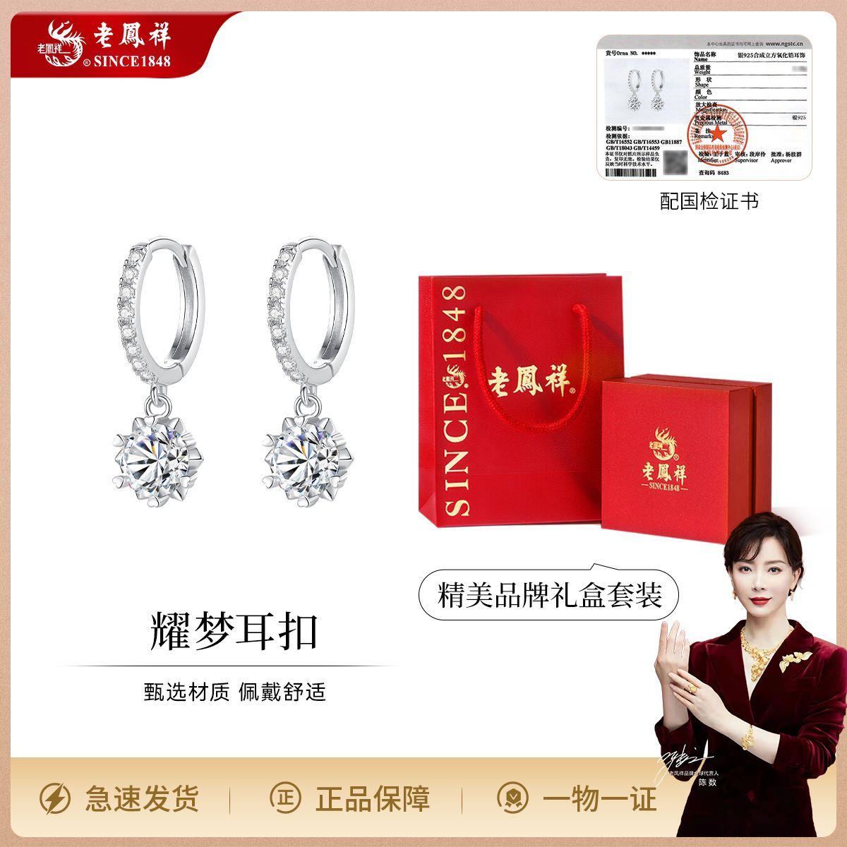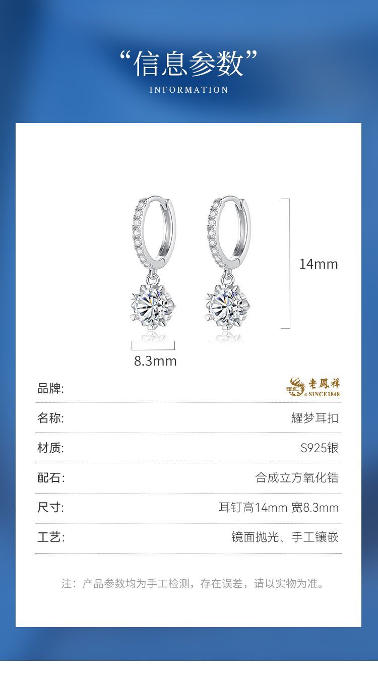 老凤祥纯银耀梦耳扣新款耳环高级精致气质耳饰生日节日礼物送女生