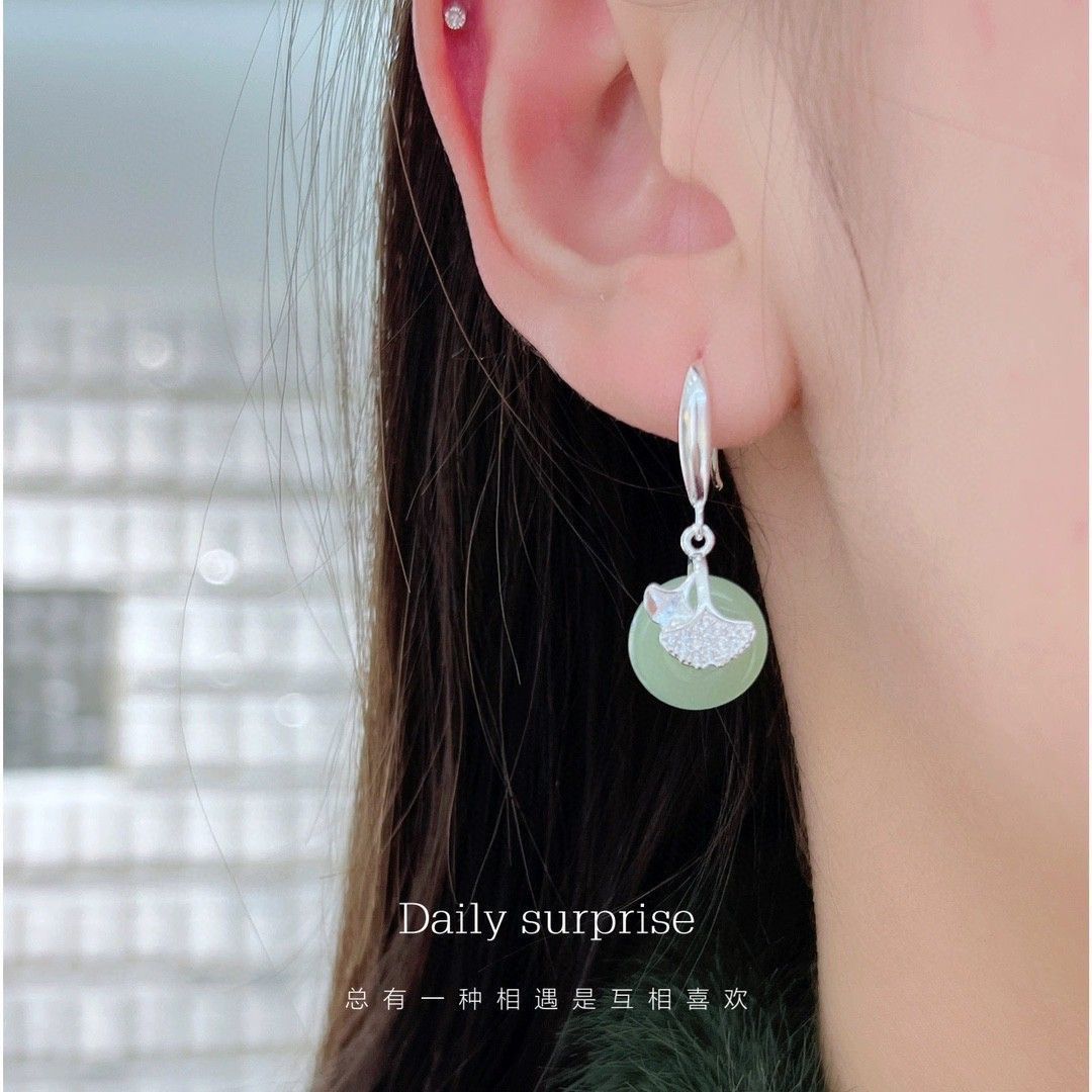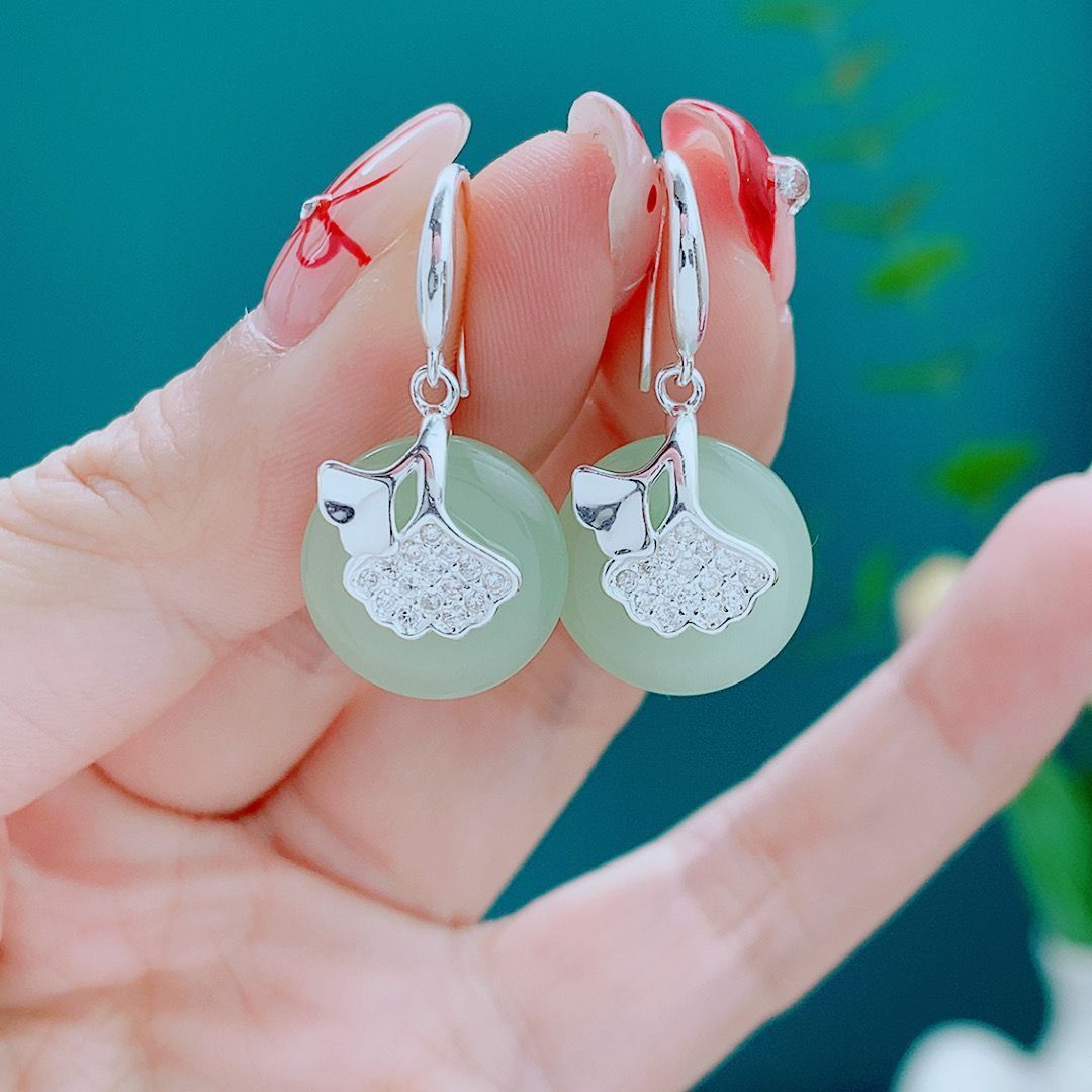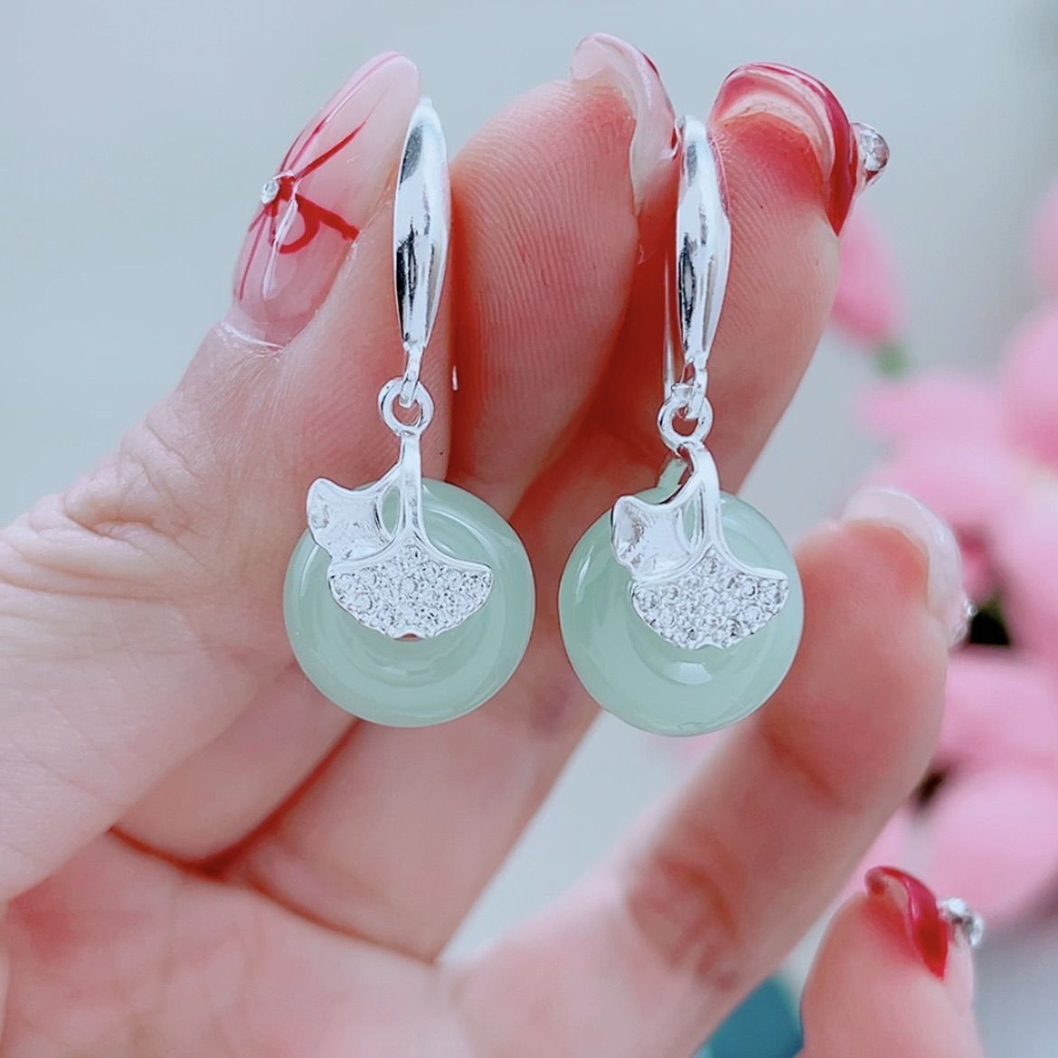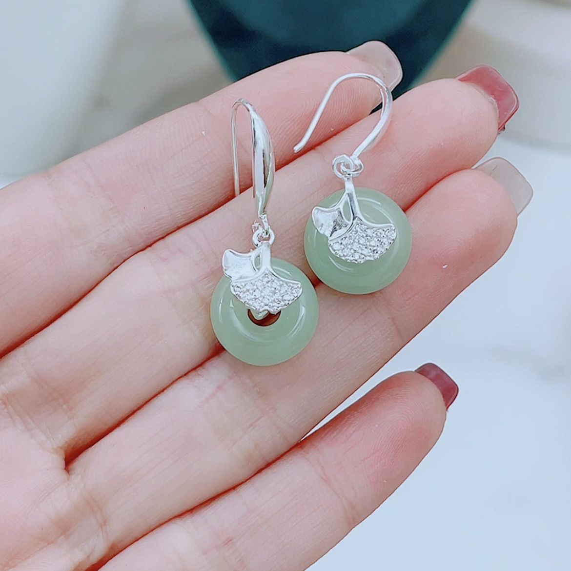 新中式平安扣绿色耳环气质长款设计爆款耳坠复古耳饰轻奢国风