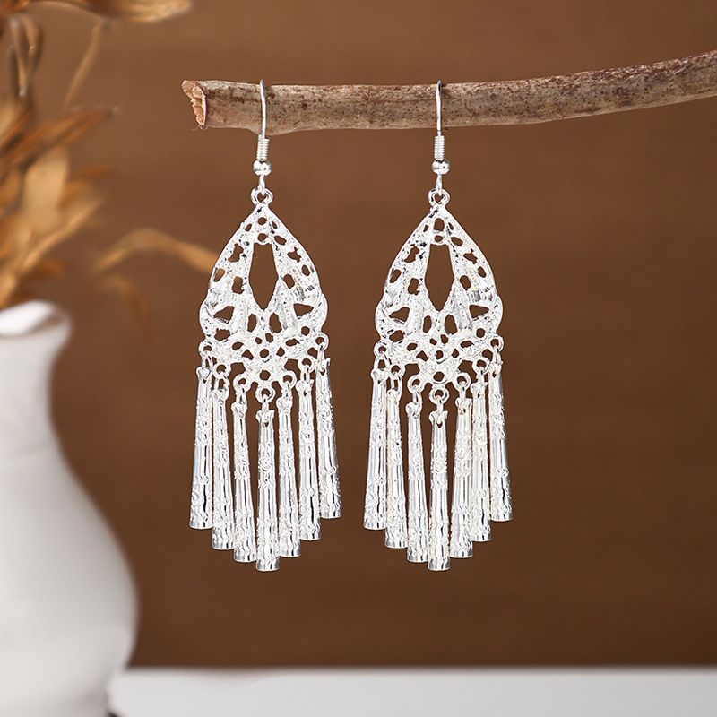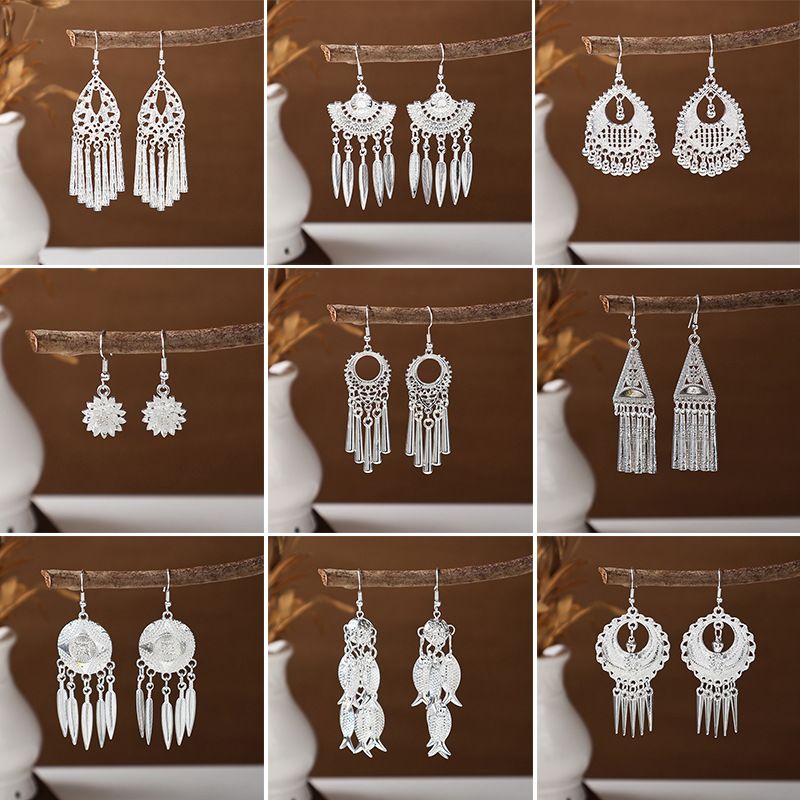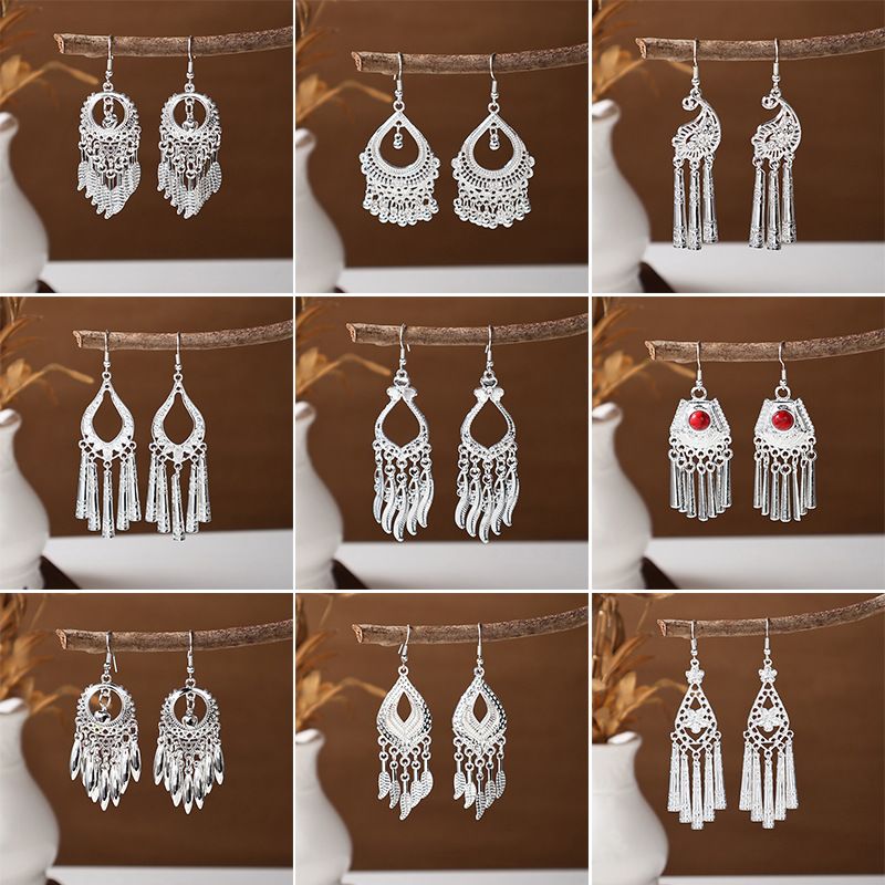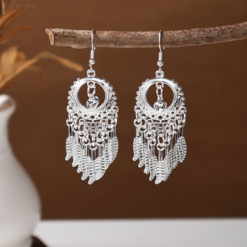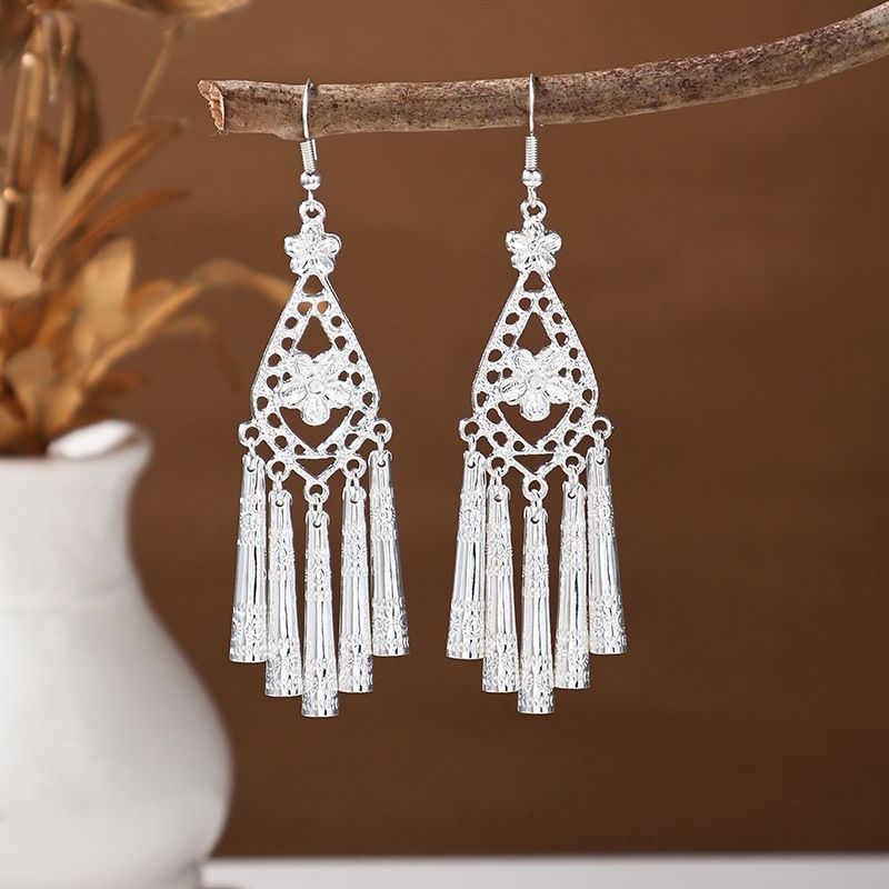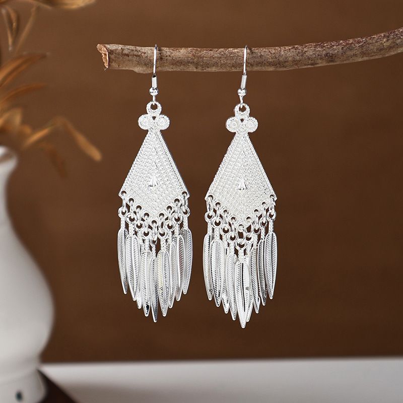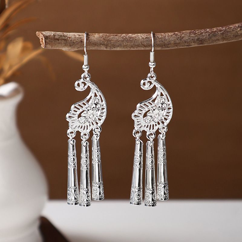 少数民族银色耳饰国潮耳环长款复古流苏耳坠泰式耳饰傣族配饰苗银