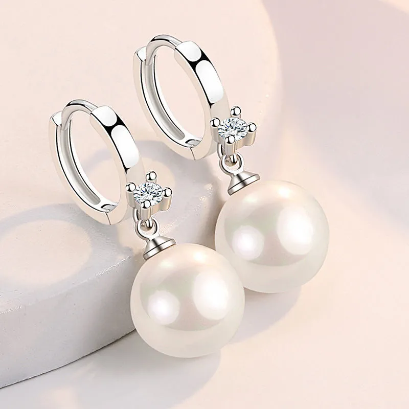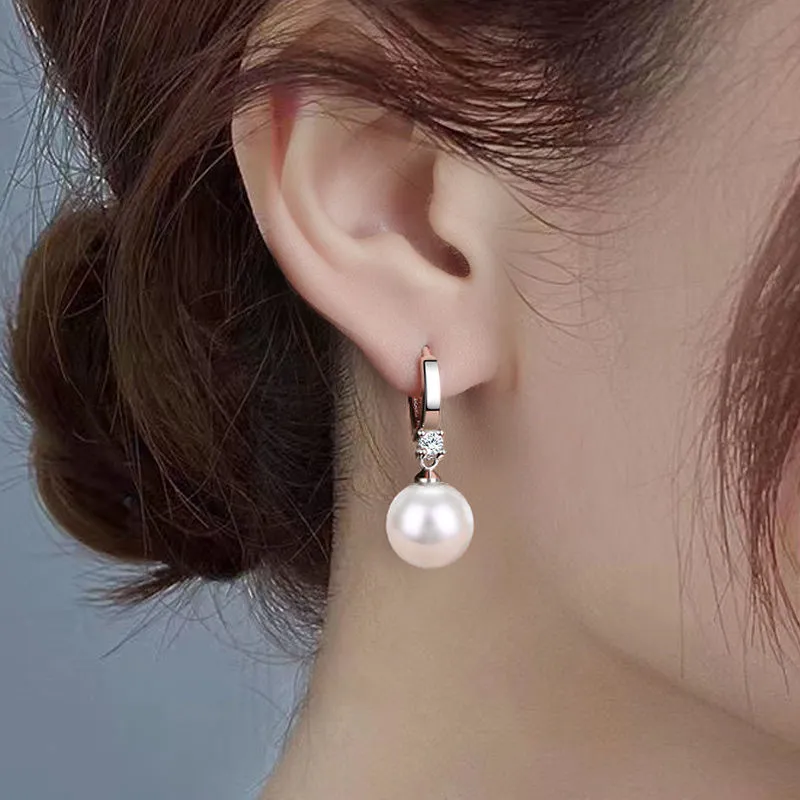 S999纯银珍珠耳环抖音显瘦爆款清新圆形高档小清新防过敏不掉色