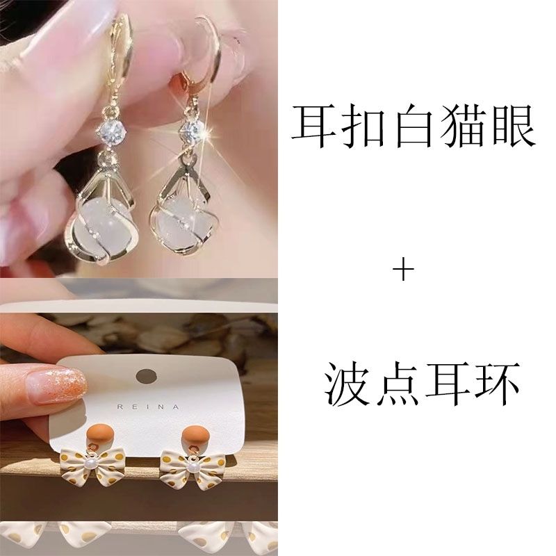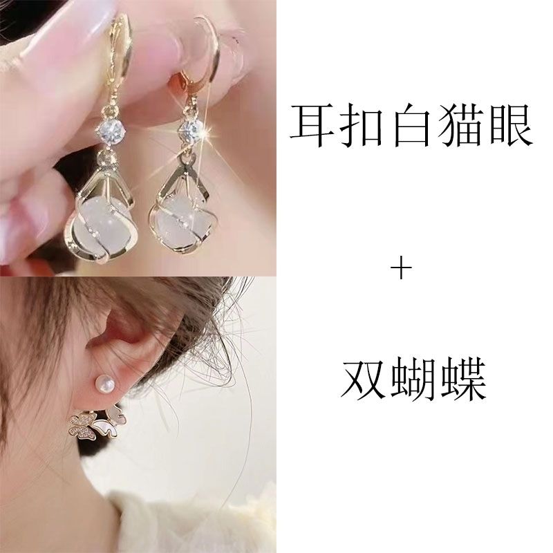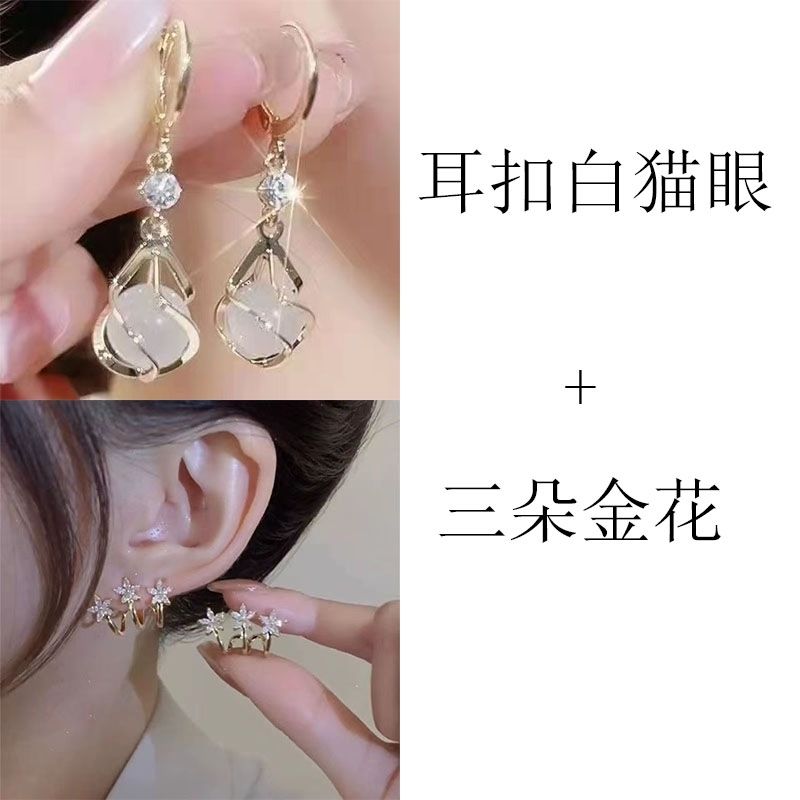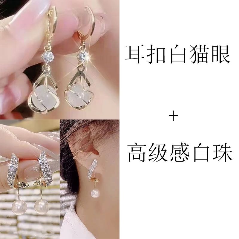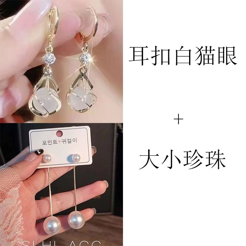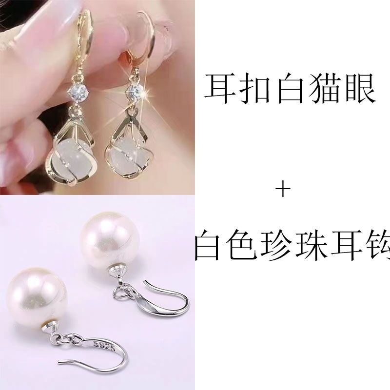 | ear clip white cat eyes + high sense white pearl(耳扣白猫眼+高级感白珠) | USD $3.35 | 999999 piece available |
