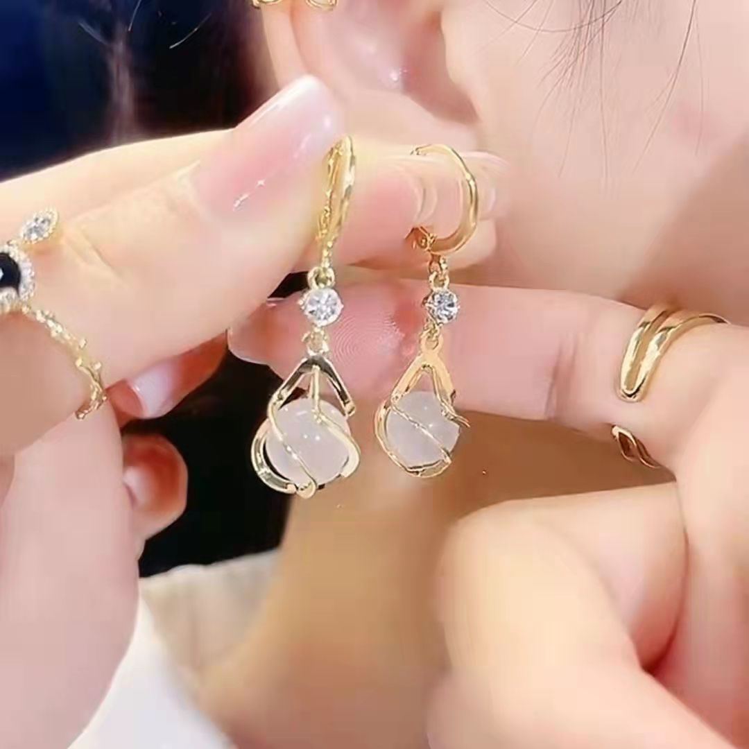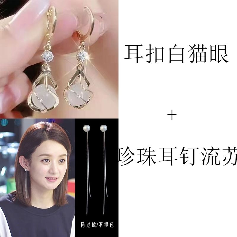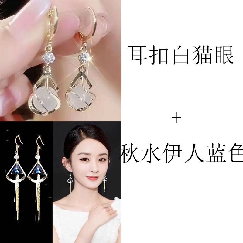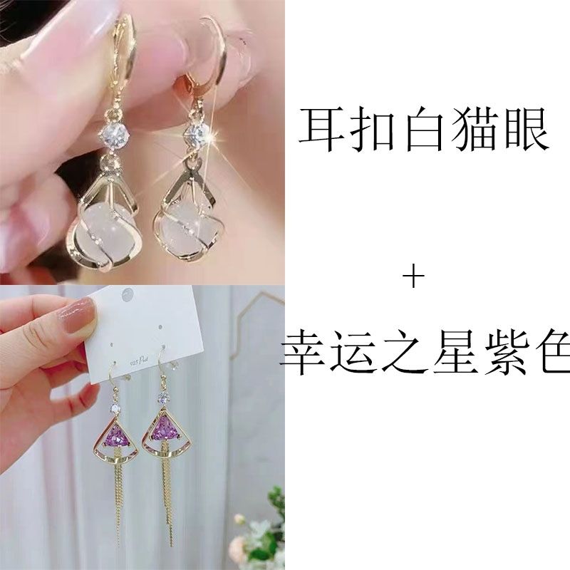 2022年新款潮轻奢猫眼耳环气质小众设计精致耳钉高级感流苏耳饰品