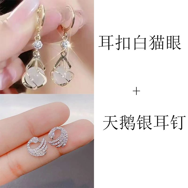 | ear clip white cat eyes + swan stud earrings silver(耳扣白猫眼+天鹅耳钉银色) | USD $3.16 | 999999 piece available |