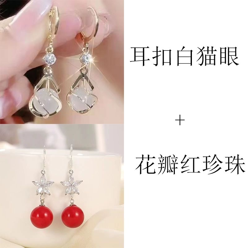 | ear clip white cat eyes + petals red pearl(耳扣白猫眼+花瓣红珍珠) | USD $3.35 | 999999 piece available |