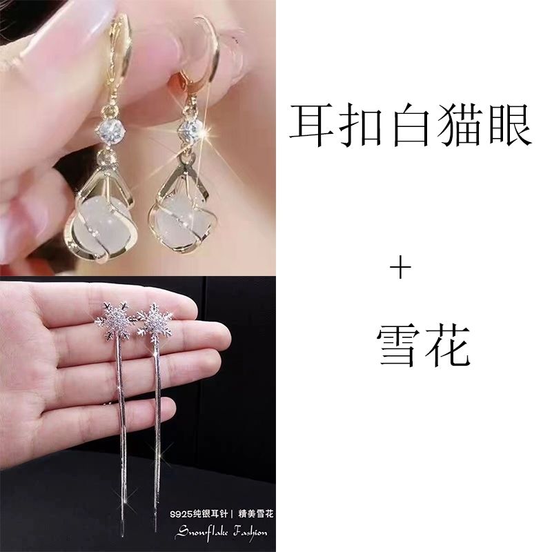 | ear clip white cat eyes + snowflake ear hook tassel(耳扣白猫眼+雪花耳钩流苏) | USD $3.35 | 999999 piece available |