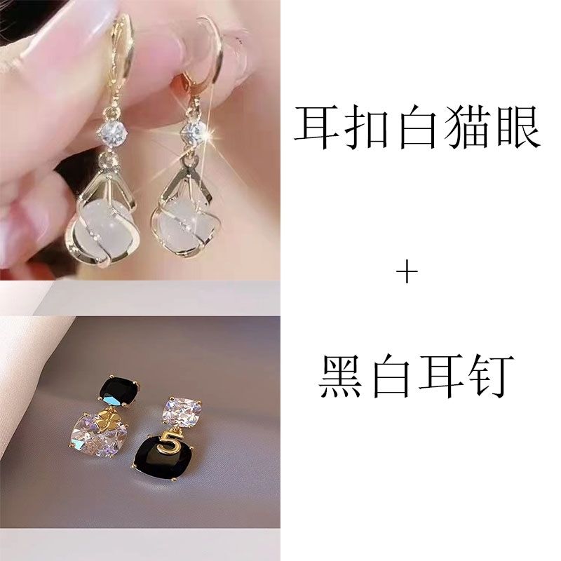 | ear clip white cat eyes + black and white ear studs(耳扣白猫眼+黑白耳钉) | USD $3.35 | 999999 piece available |