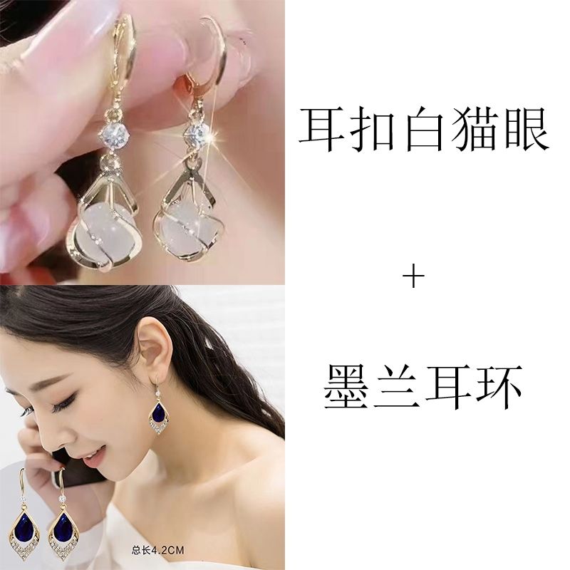 | ear clip white cat eye + blue black earrings(耳扣白猫眼+墨兰耳环) | USD $3.29 | 999999 piece available |