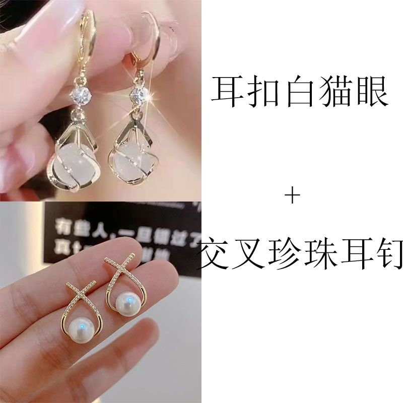 | ear clip white cat eye + cross pearl stud earrings(耳扣白猫眼+交叉珍珠耳钉) | USD $3.11 | 999999 piece available |