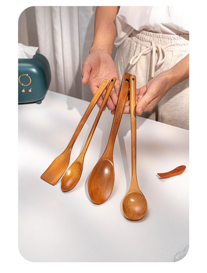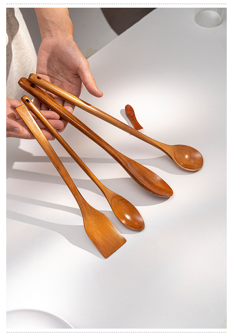 日式长柄木勺搅拌料理加长烹饪勺子辅食木质奶锅翻炒木头隔热汤勺