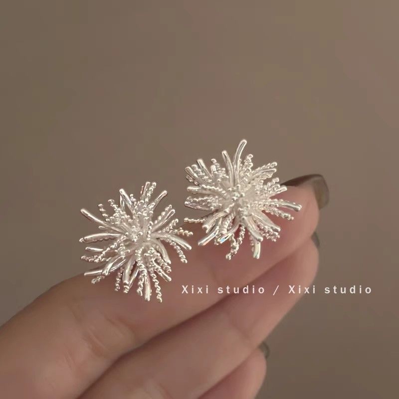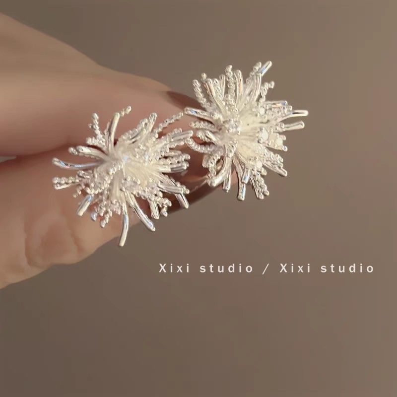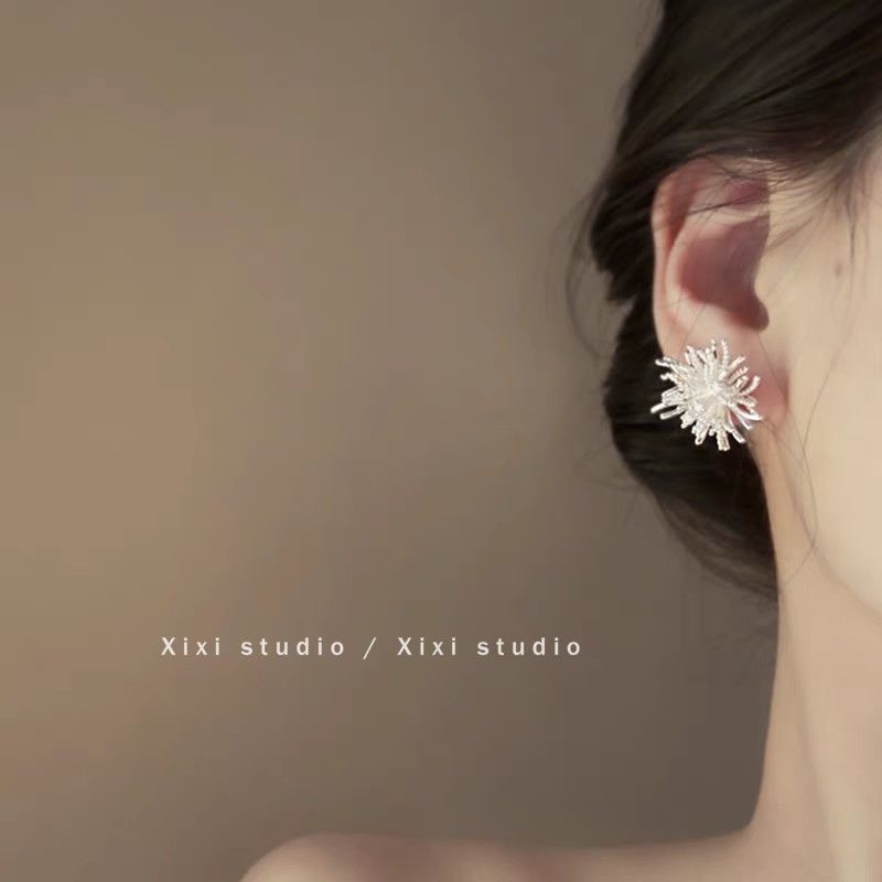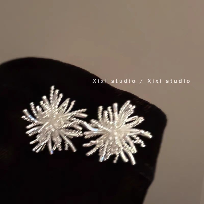 烟火线条!锆石金属蒲公英耳钉!小众精致耳环个性耳饰女2025新款