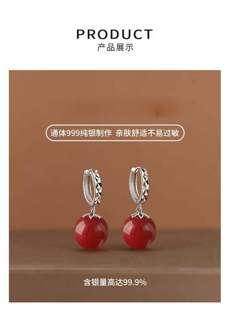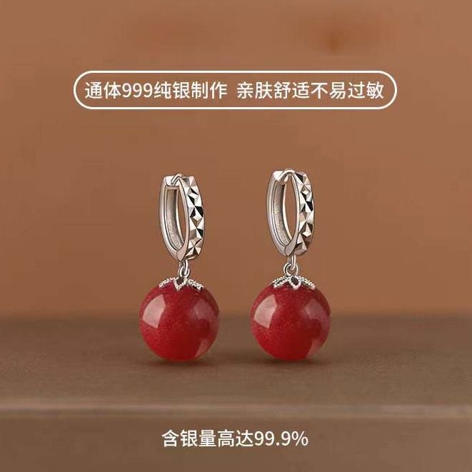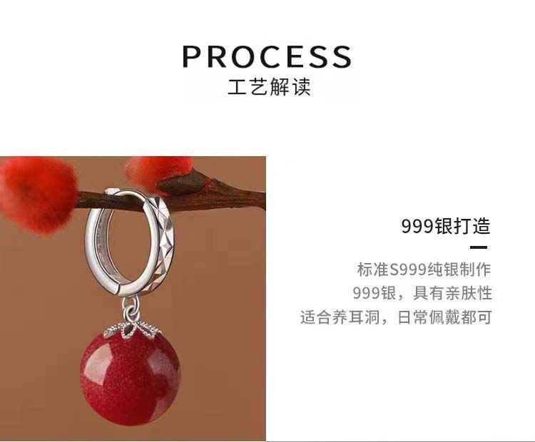 【配证书】999纯银朱砂满天星耳环耳饰2025新款爆款耳坠节日礼物