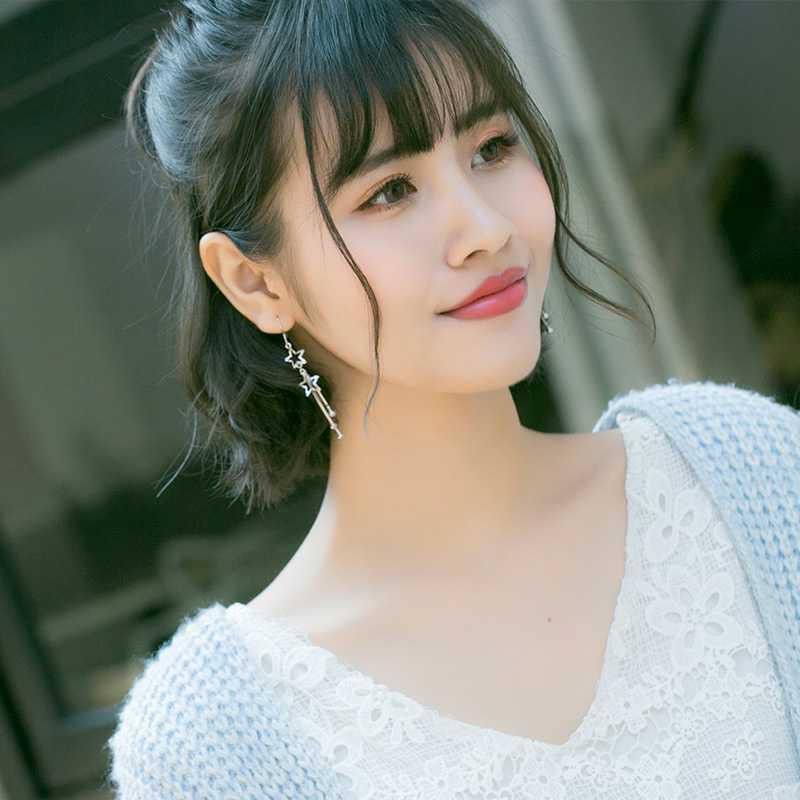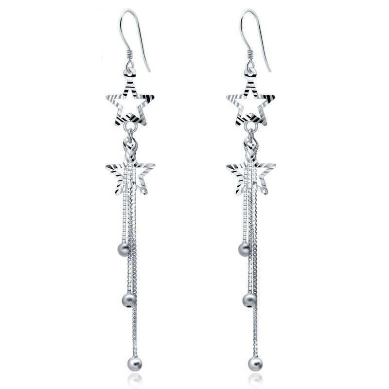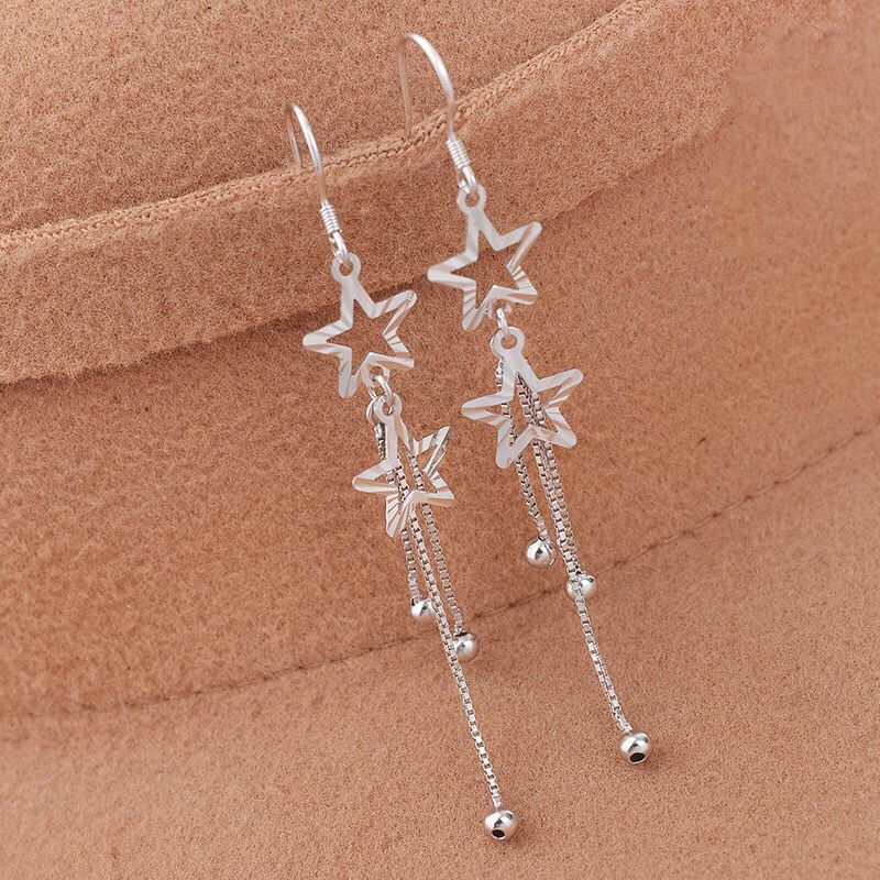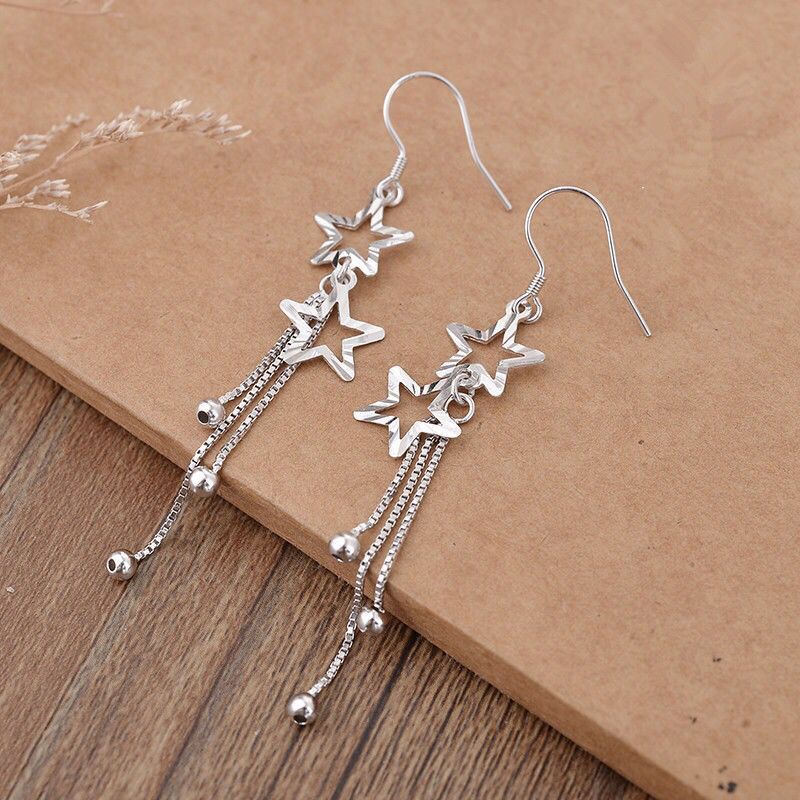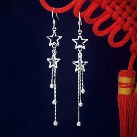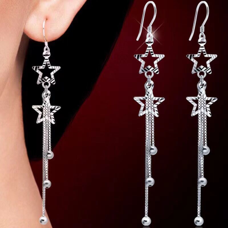 香港正品千足银9999纯银耳环女五角星车花足银长款流苏小光珠耳坠
