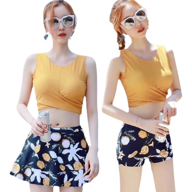 2025新款分体女韩版ins风泳衣女士三件显瘦大小胸聚拢遮肚套泳装