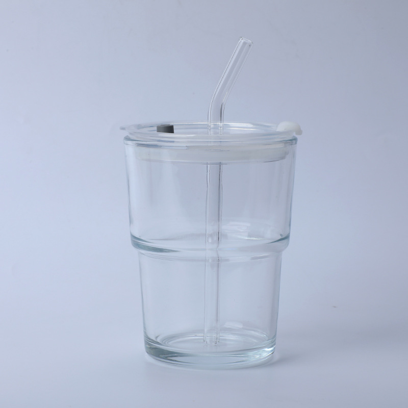 竹节杯创意水杯家用玻璃杯办公室隔热吸管杯子ins风大容量咖啡杯