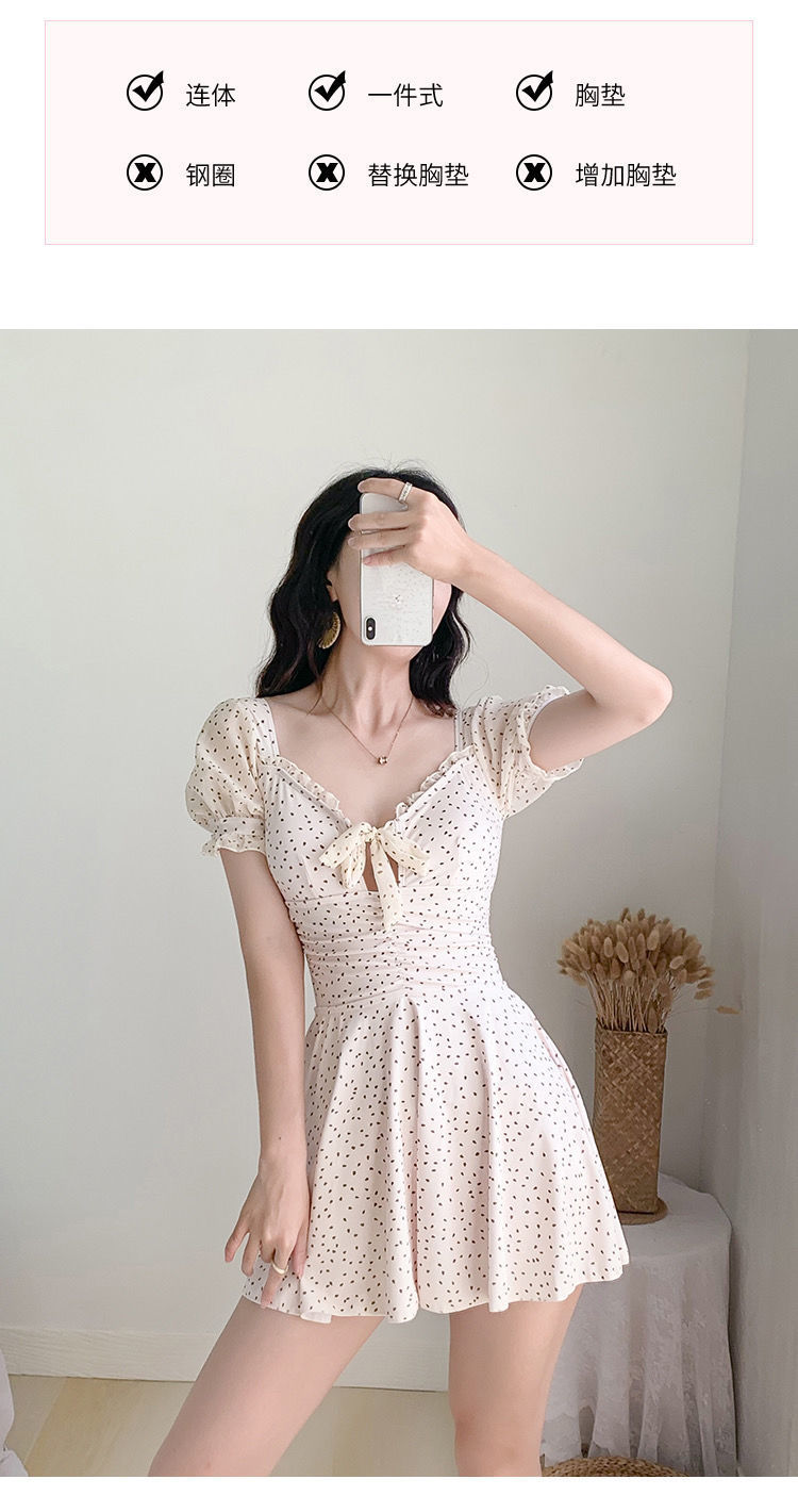 韩国ins风连体裙式显瘦遮肚小胸聚拢波点少女小清新温泉游泳衣女