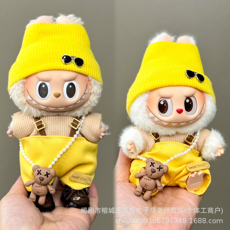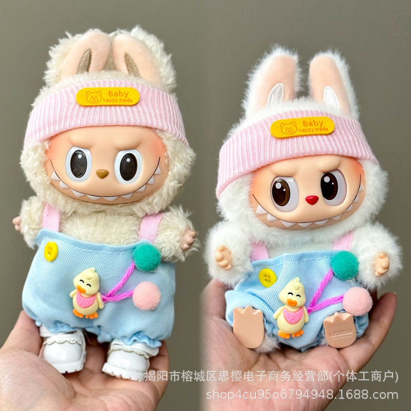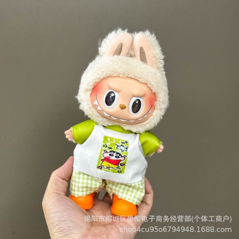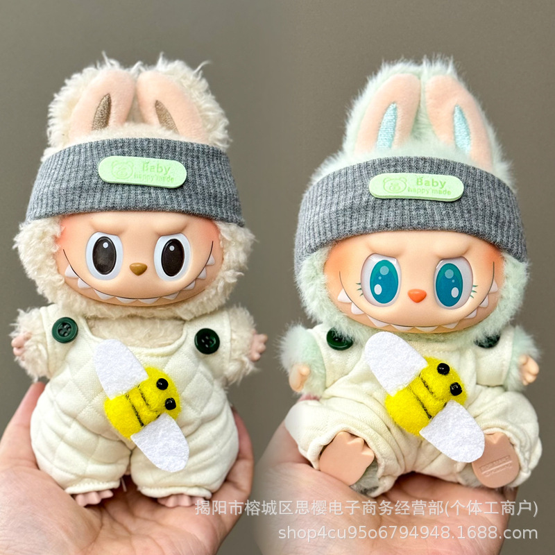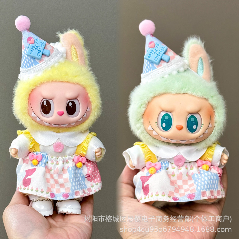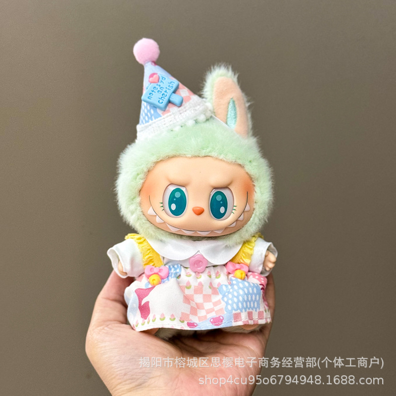 批发labubu拉布布娃衣服17cm盲盒挂件一二代搪胶公仔着替娃衣套装