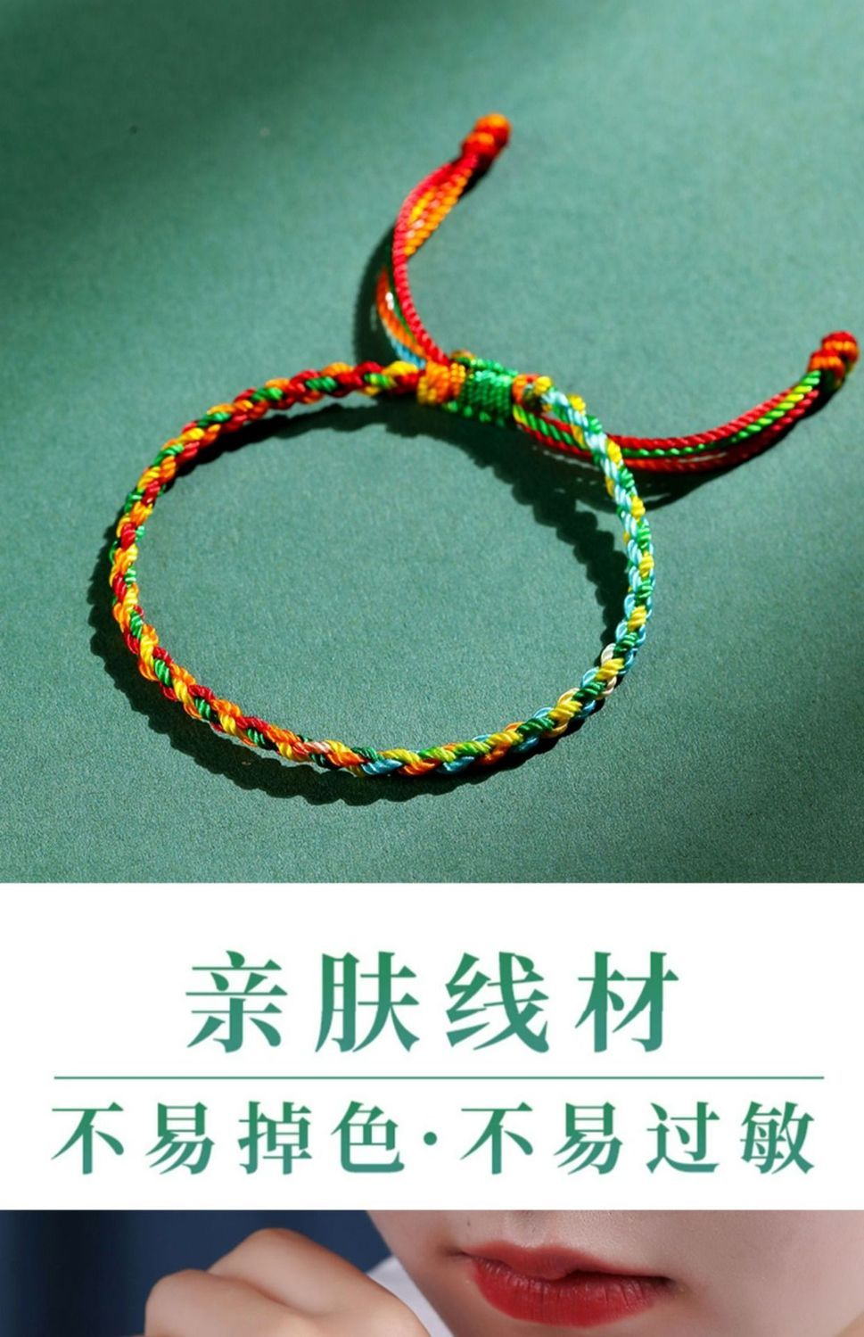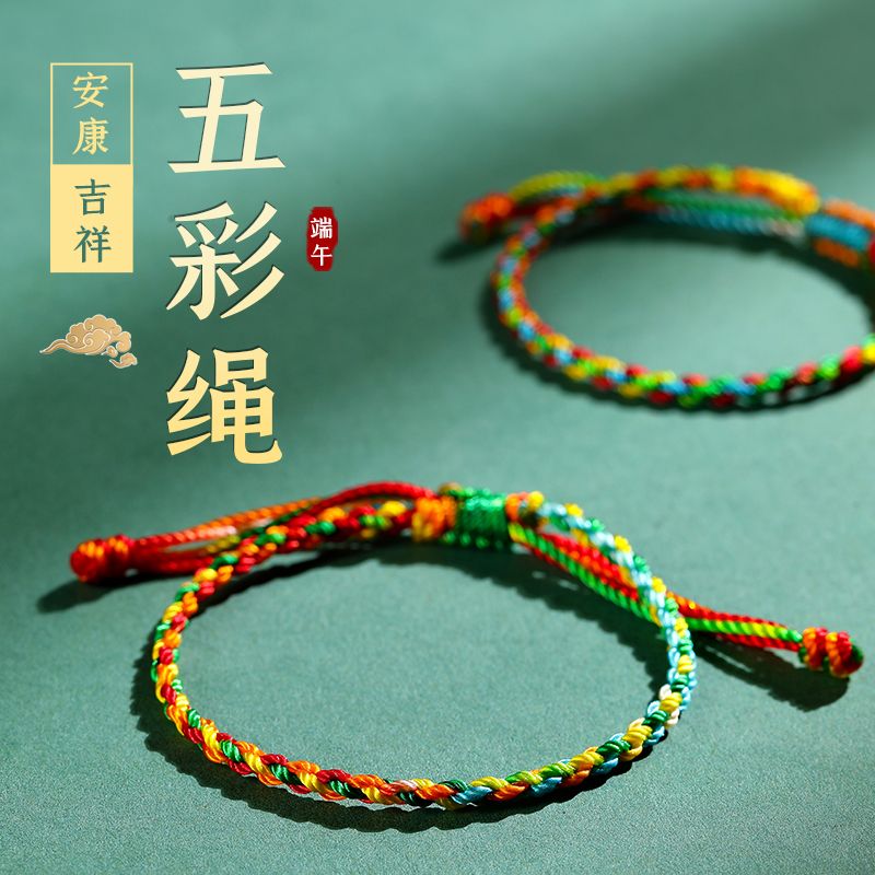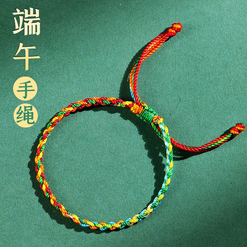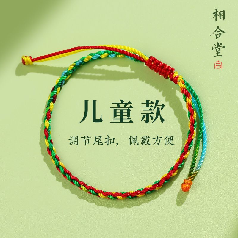 纯手工编织精品【端午节五彩绳】四股可调节手绳儿童宝宝成人手链