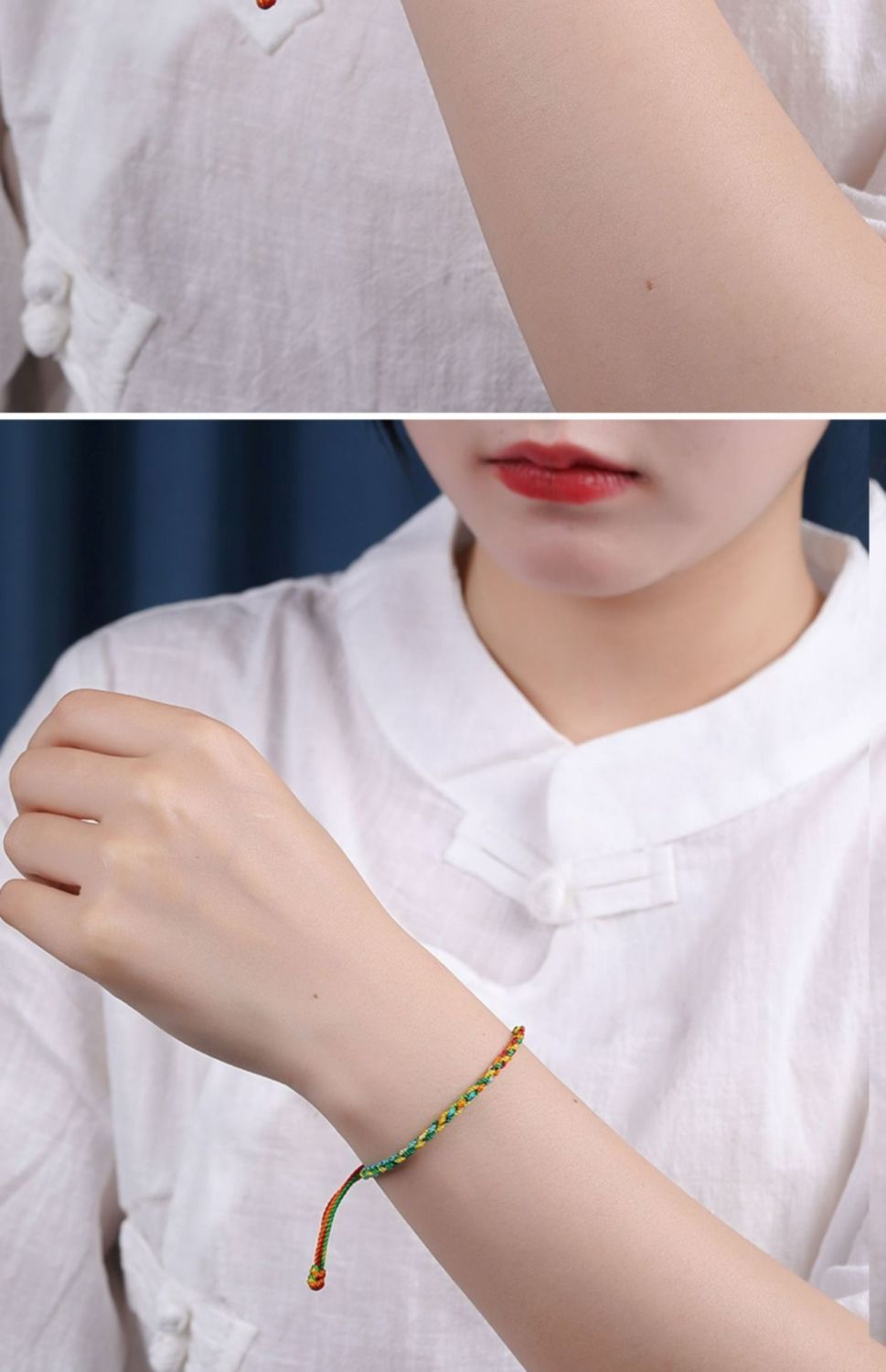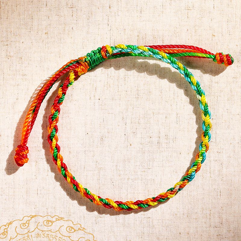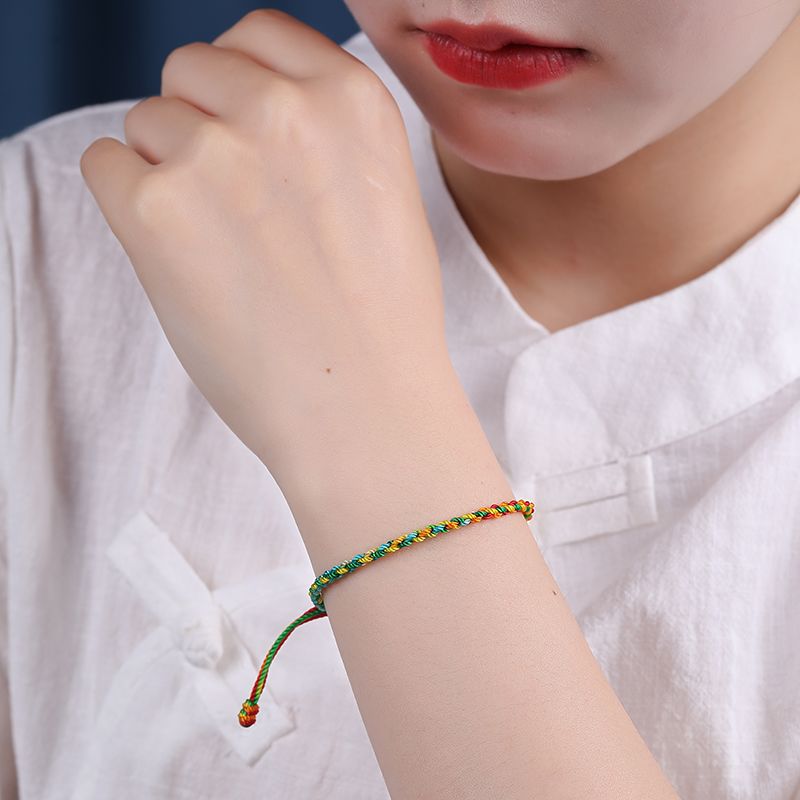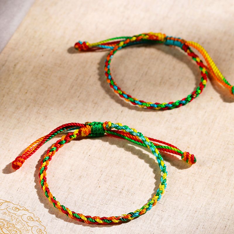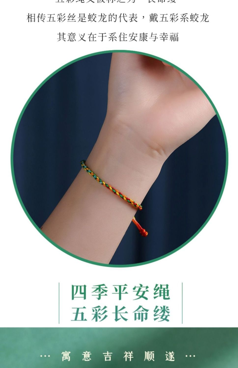 纯手工编织精品【端午节五彩绳】四股可调节手绳儿童宝宝成人手链